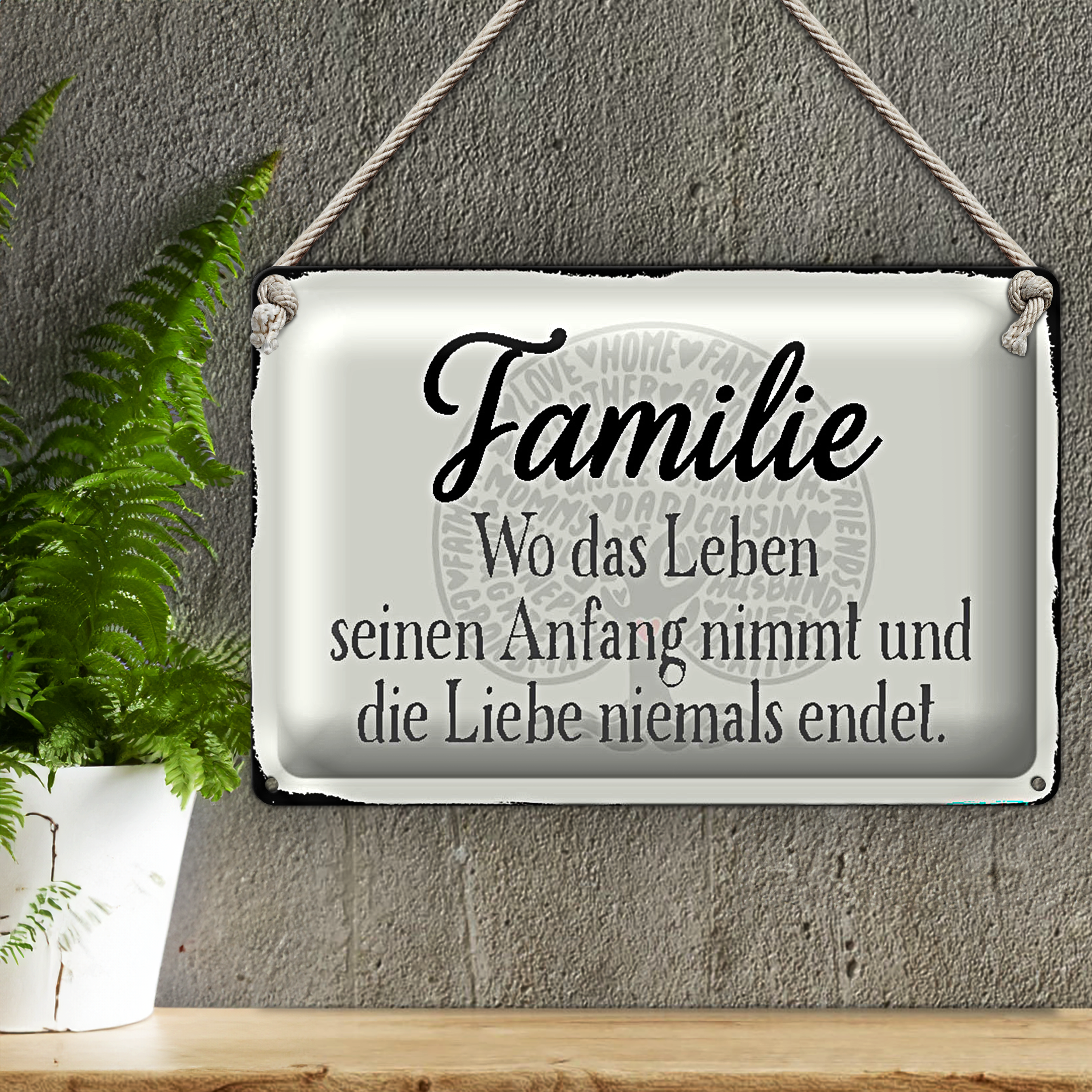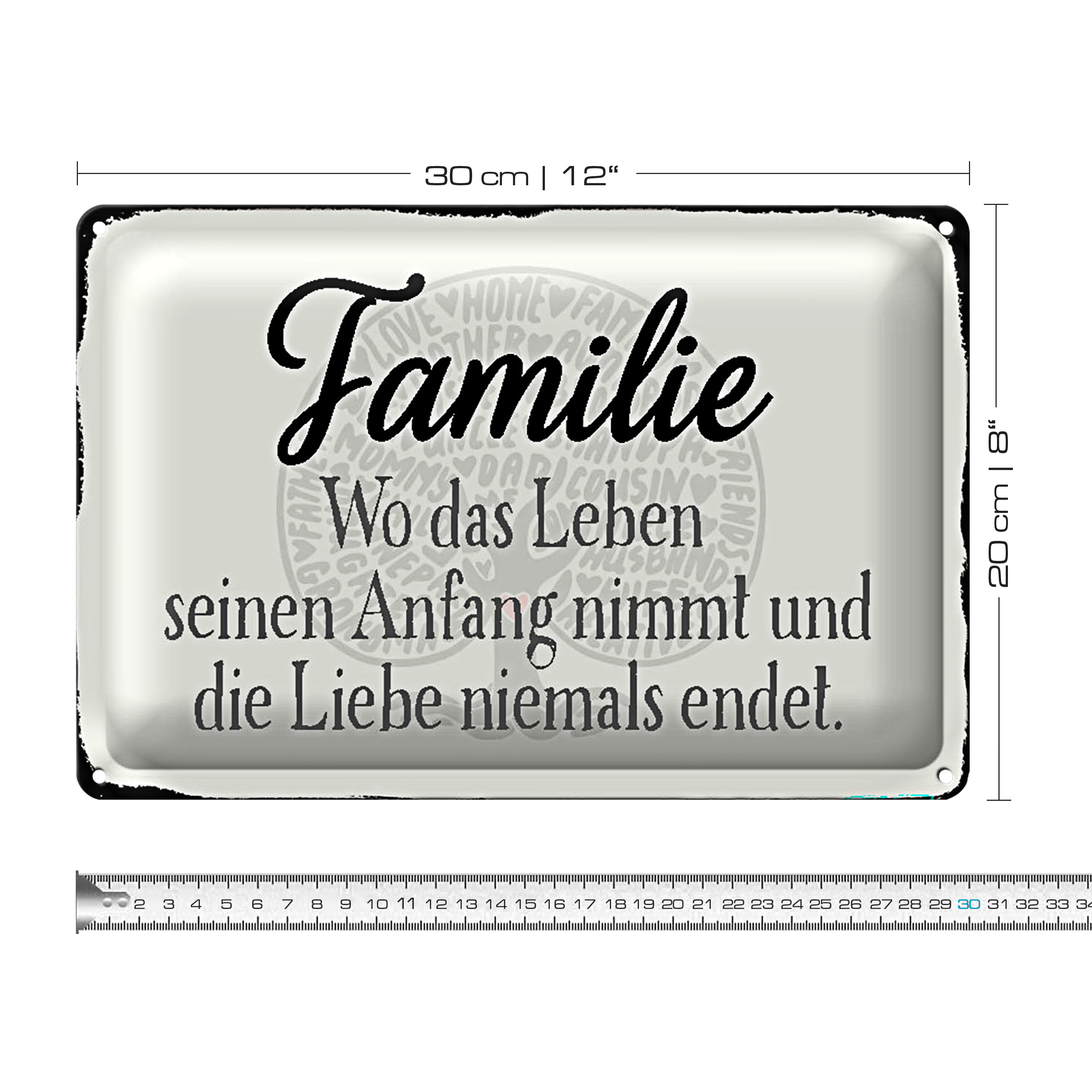 Blechschild Spruch 30x20cm Familie wo Leben Anfang nimmt
