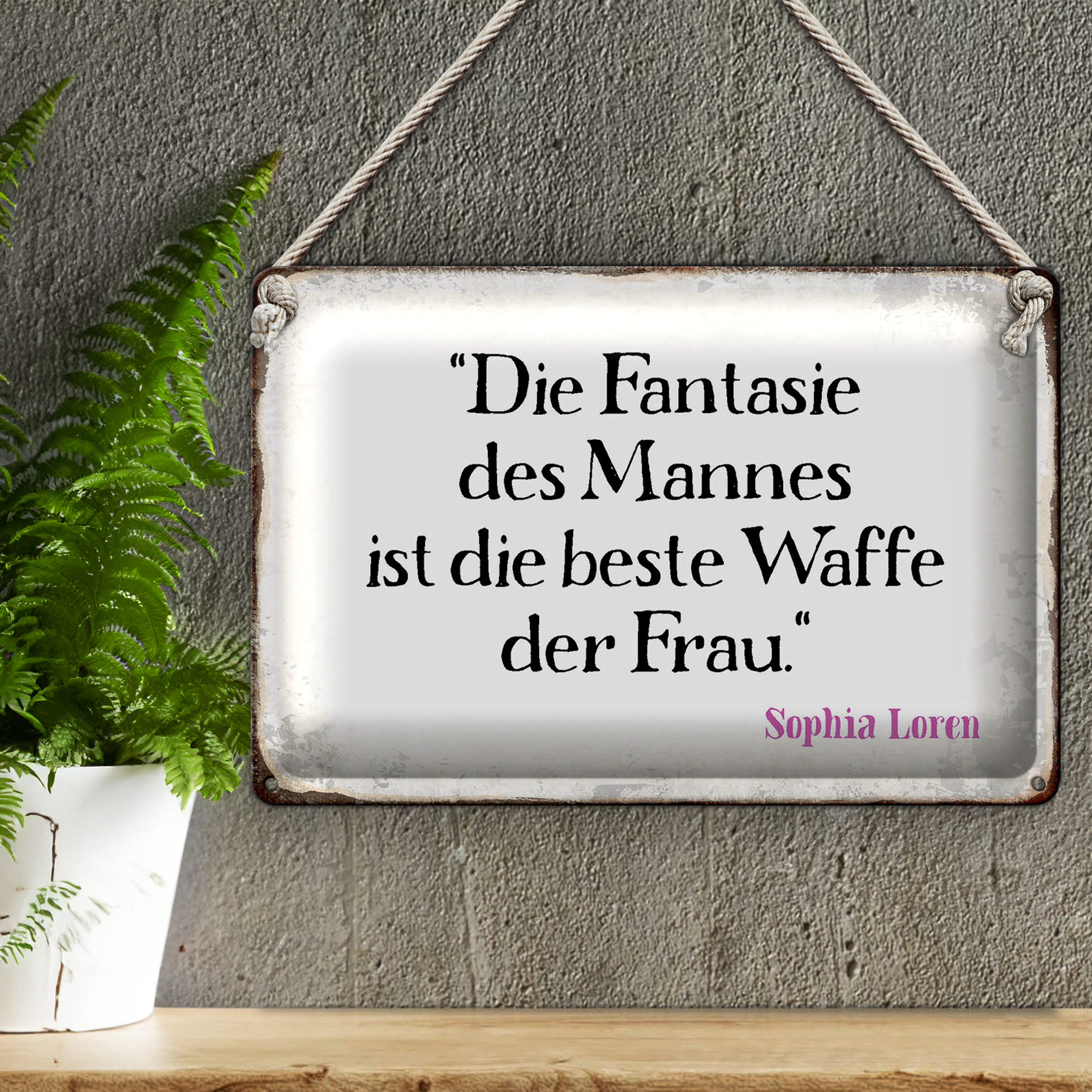 Blechschild Spruch 30x20cm Fantasie des Mannes beste Waffe