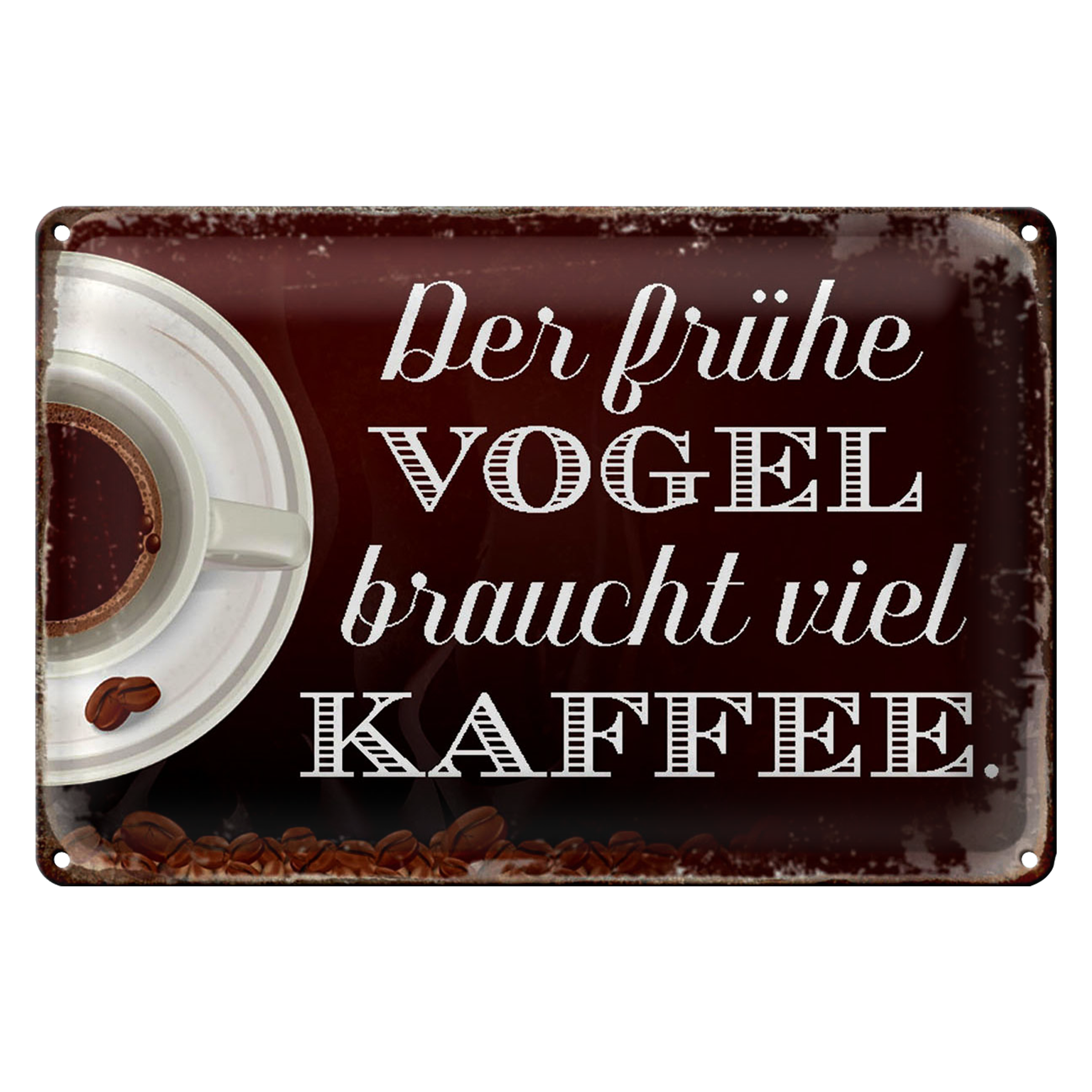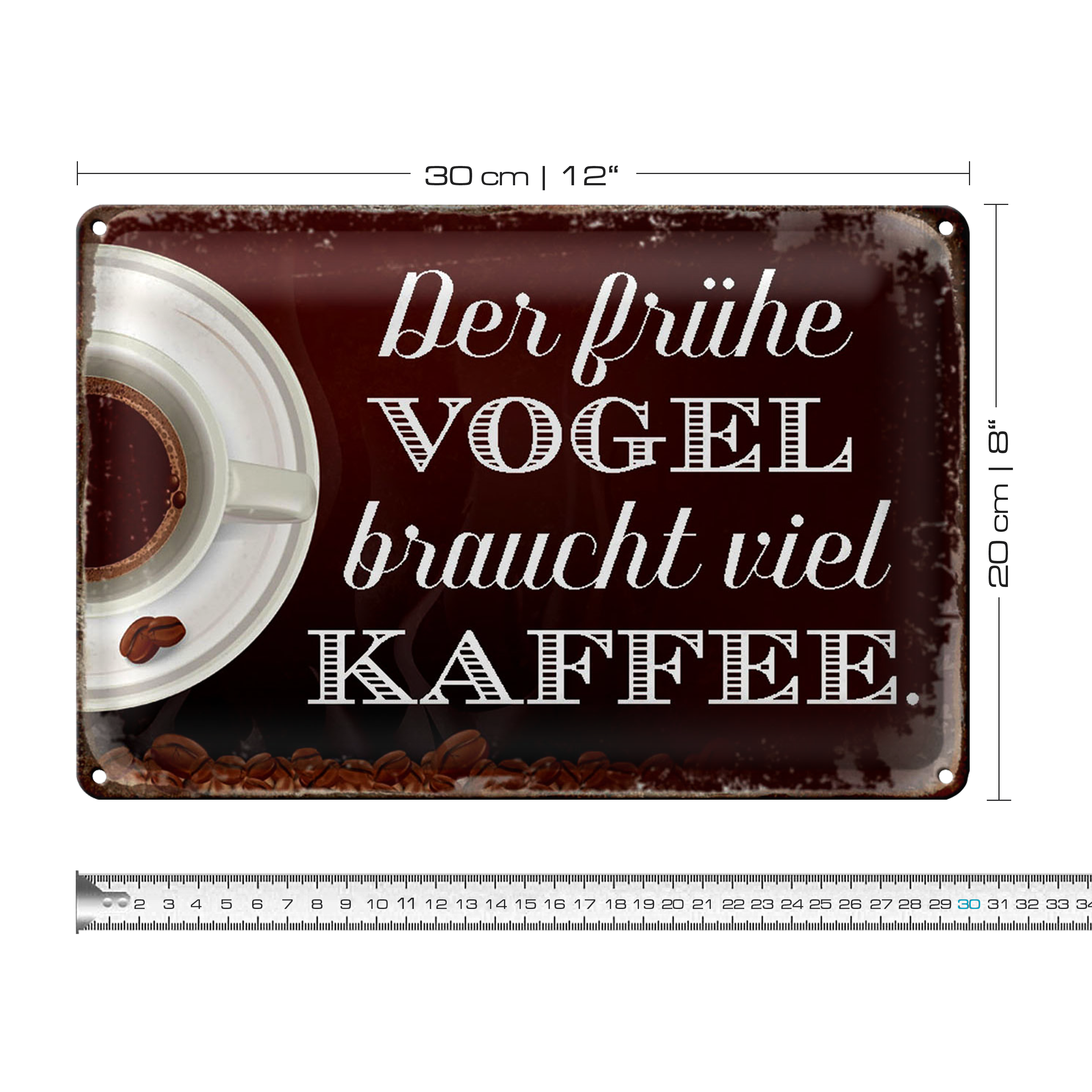 Blechschild Spruch 30x20cm früher Vogel braucht viel Kaffee