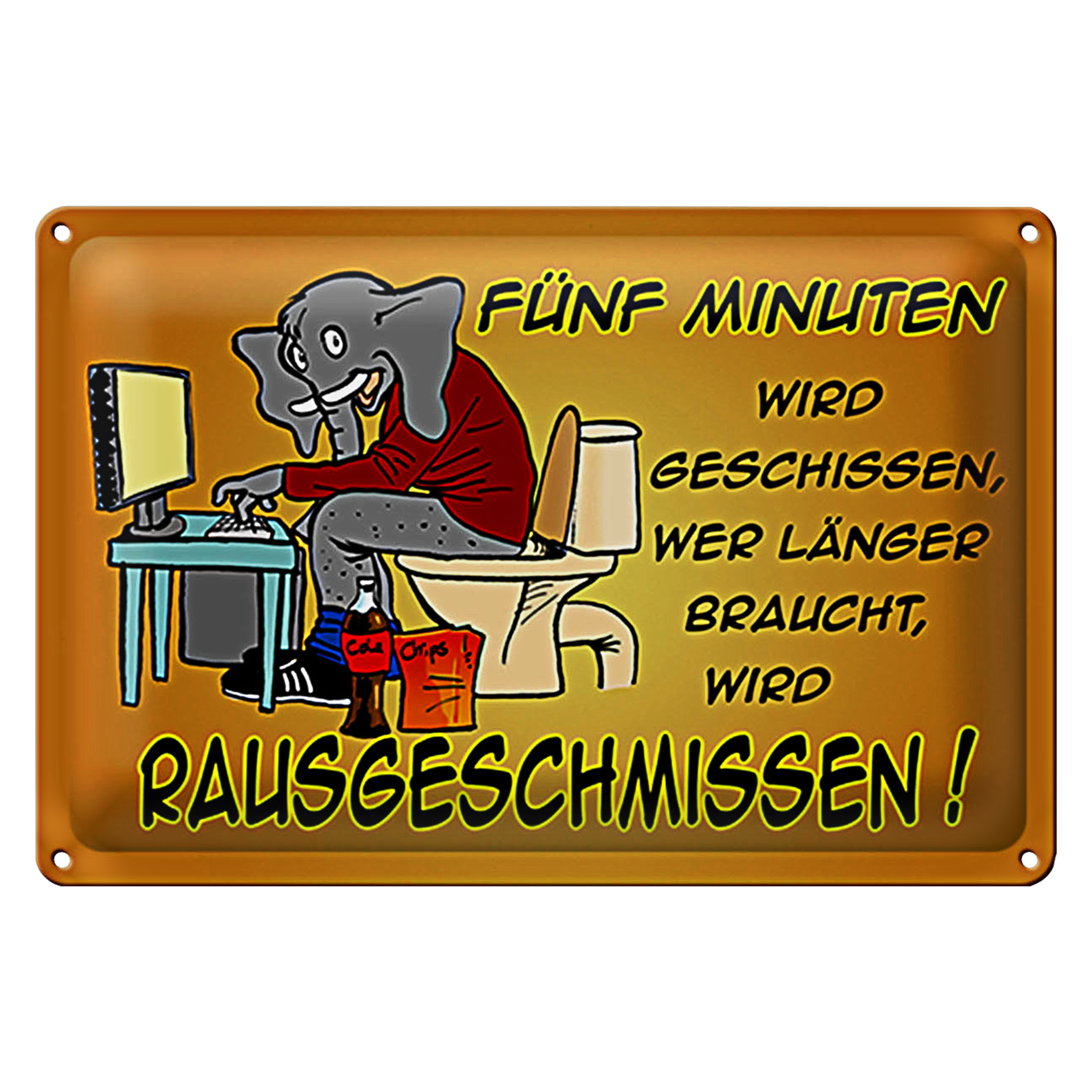Blechschild Spruch 30x20cm fünf Minuten wird geschissen Elefant