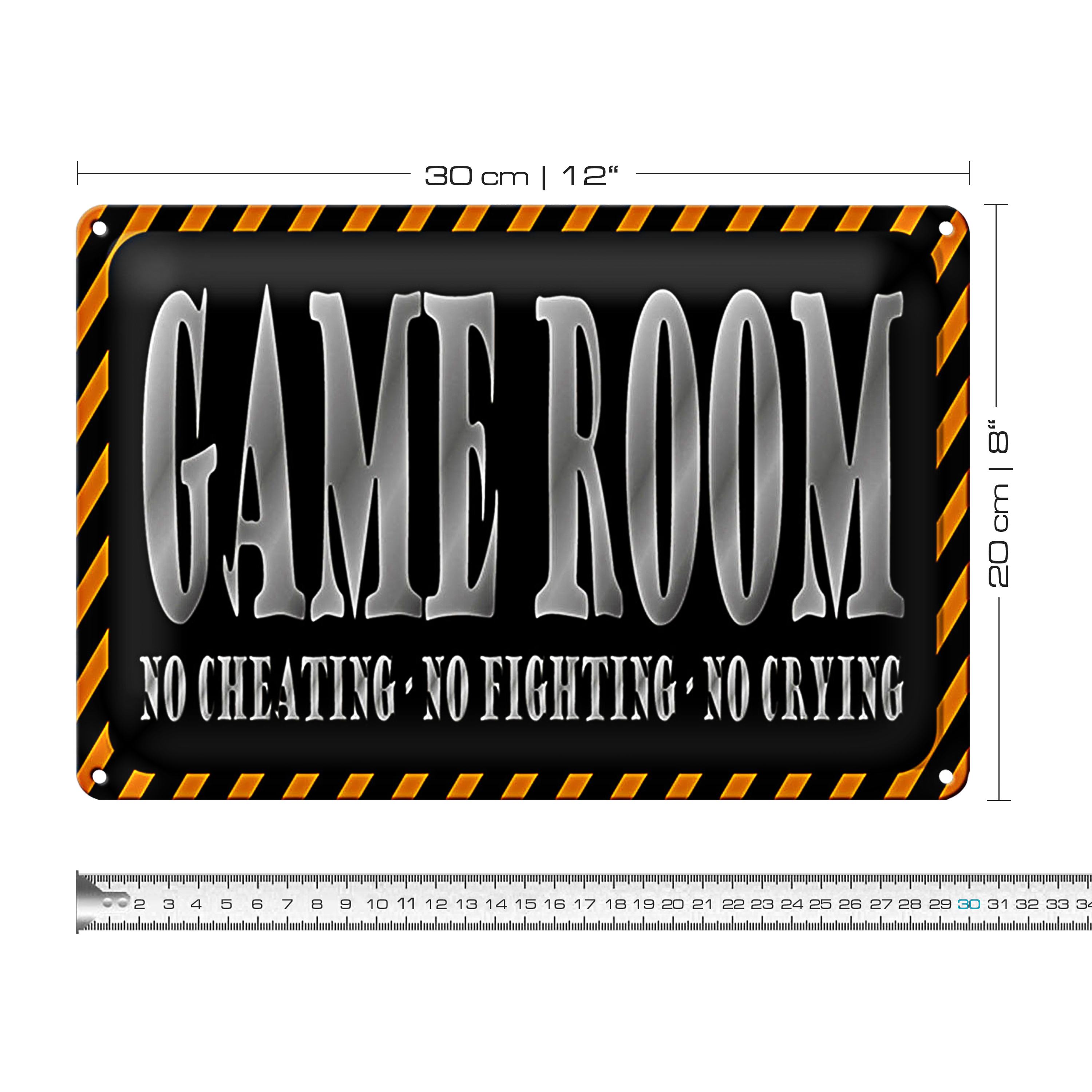 Blechschild Spruch 30x20cm Game Room no cheating no crying