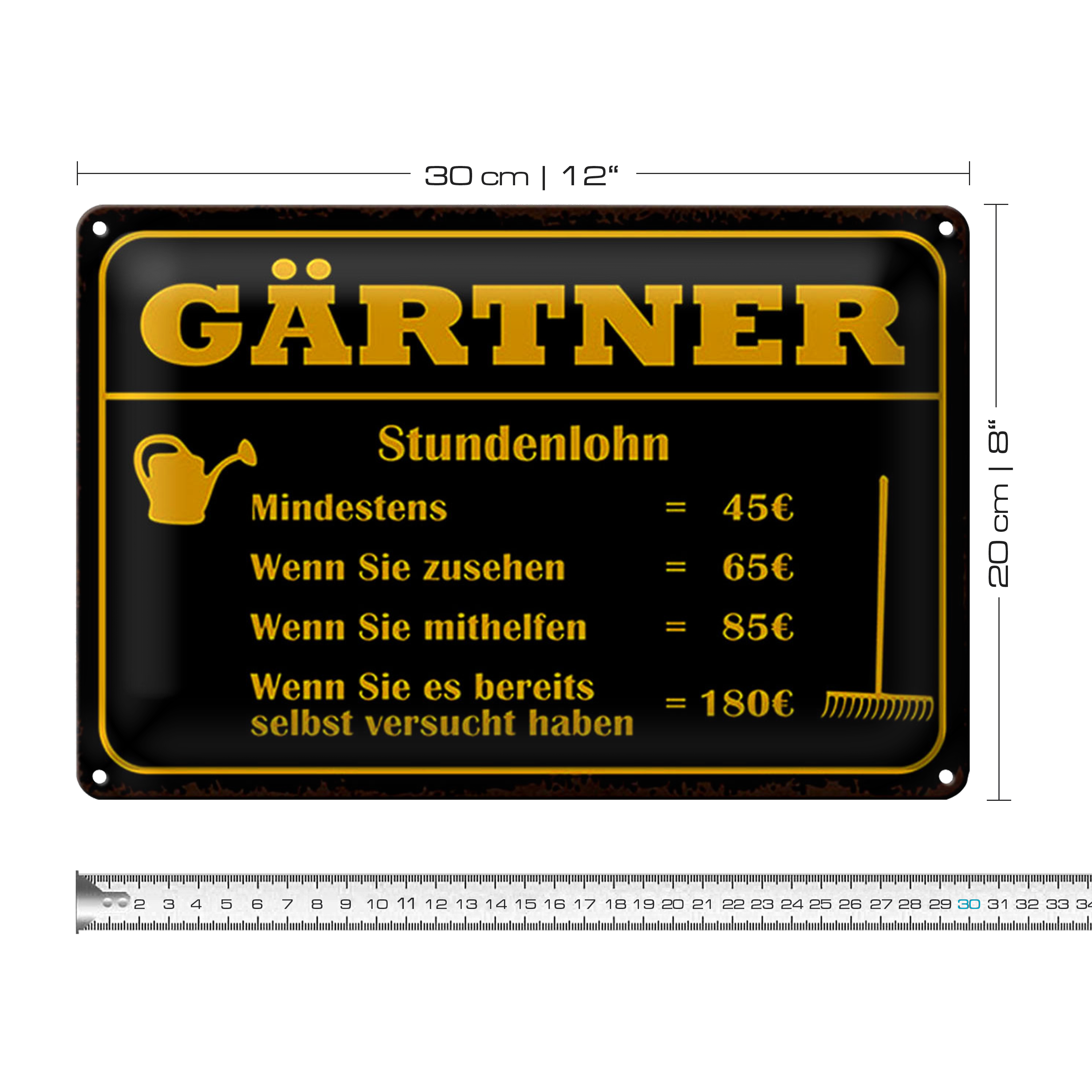 Blechschild Spruch 30x20cm Gärtner Stundenlohn mindestens