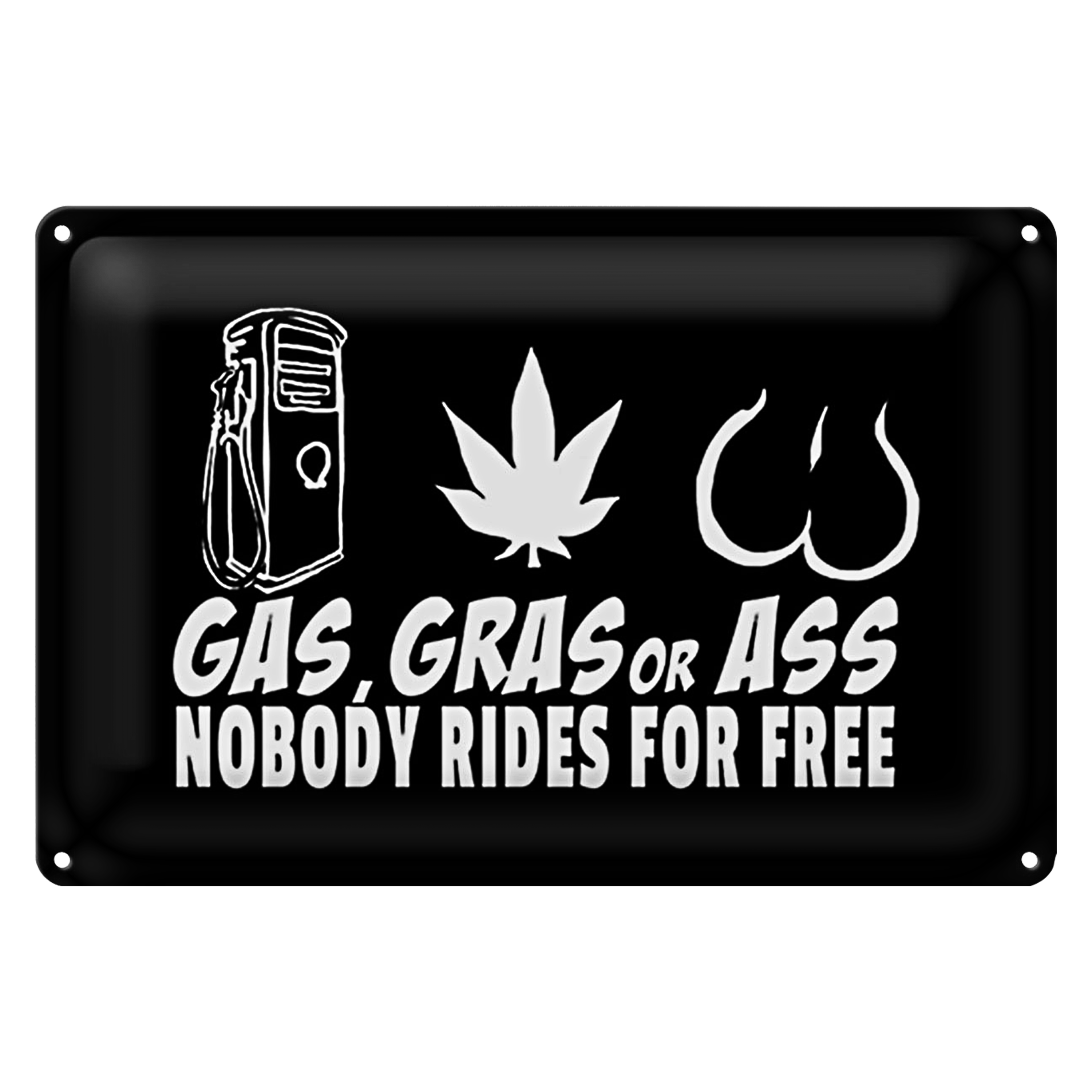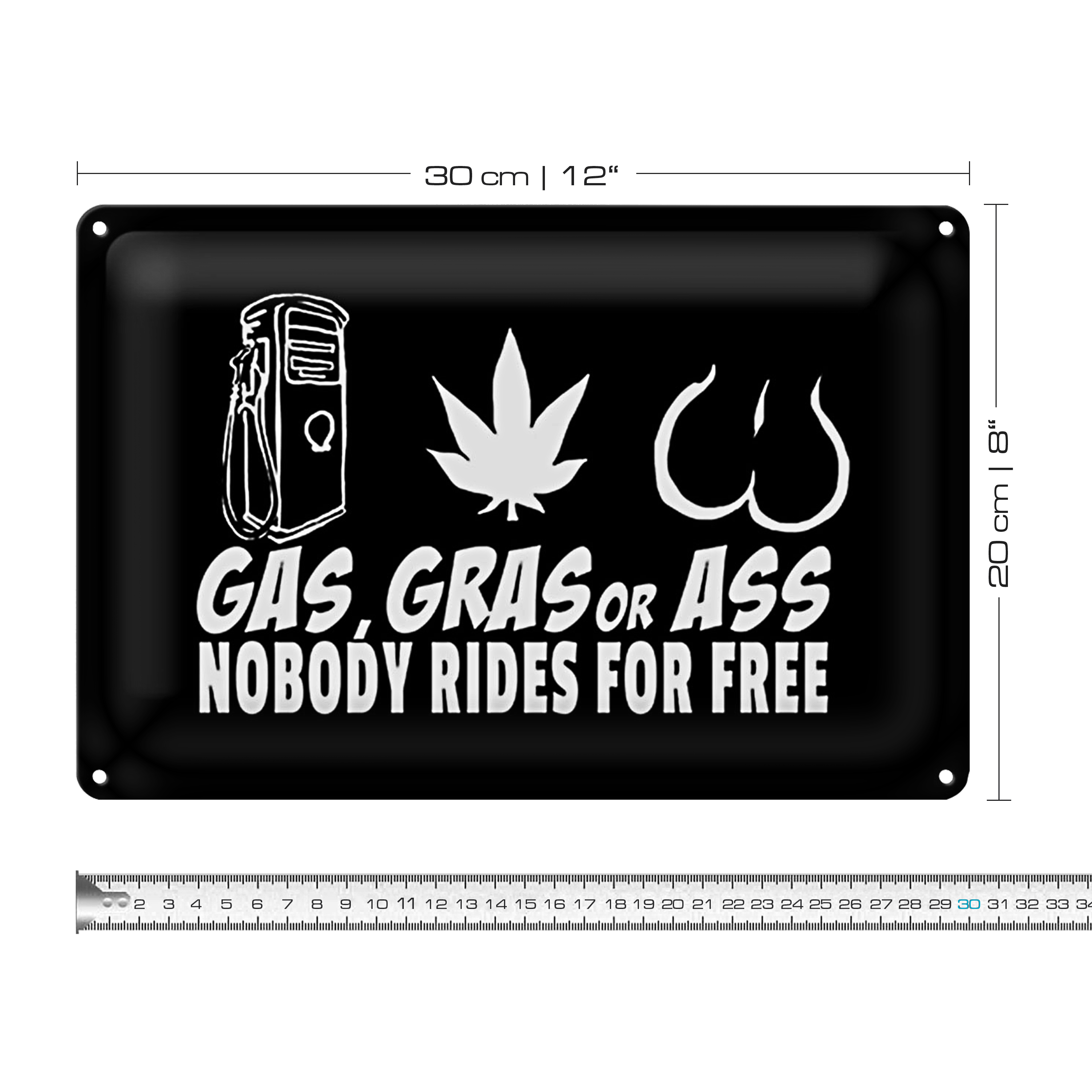Blechschild Spruch 30x20cm Gas gras ass nobody rides for free