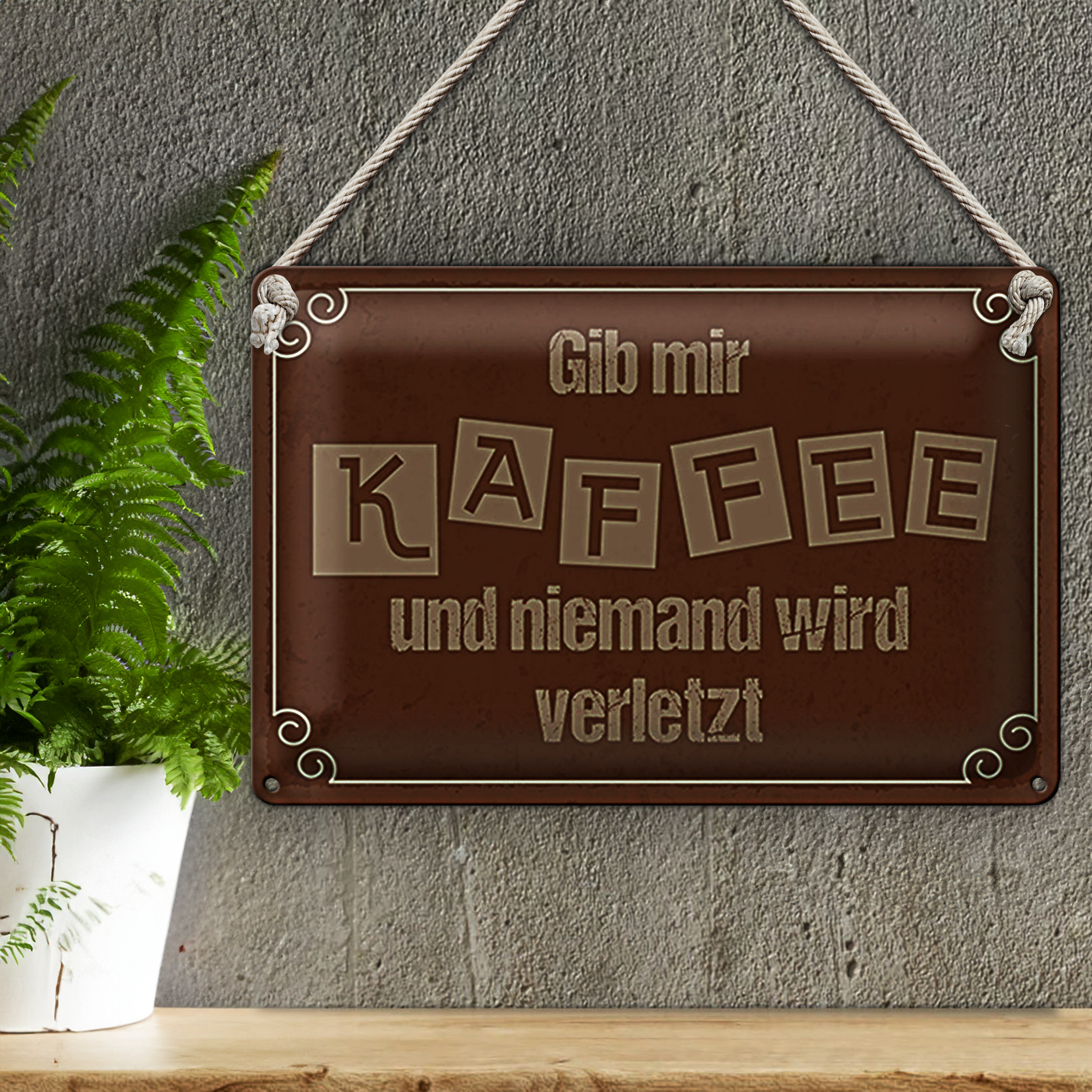 Blechschild Spruch 30x20cm Gib mir Kaffee niemand verletzt