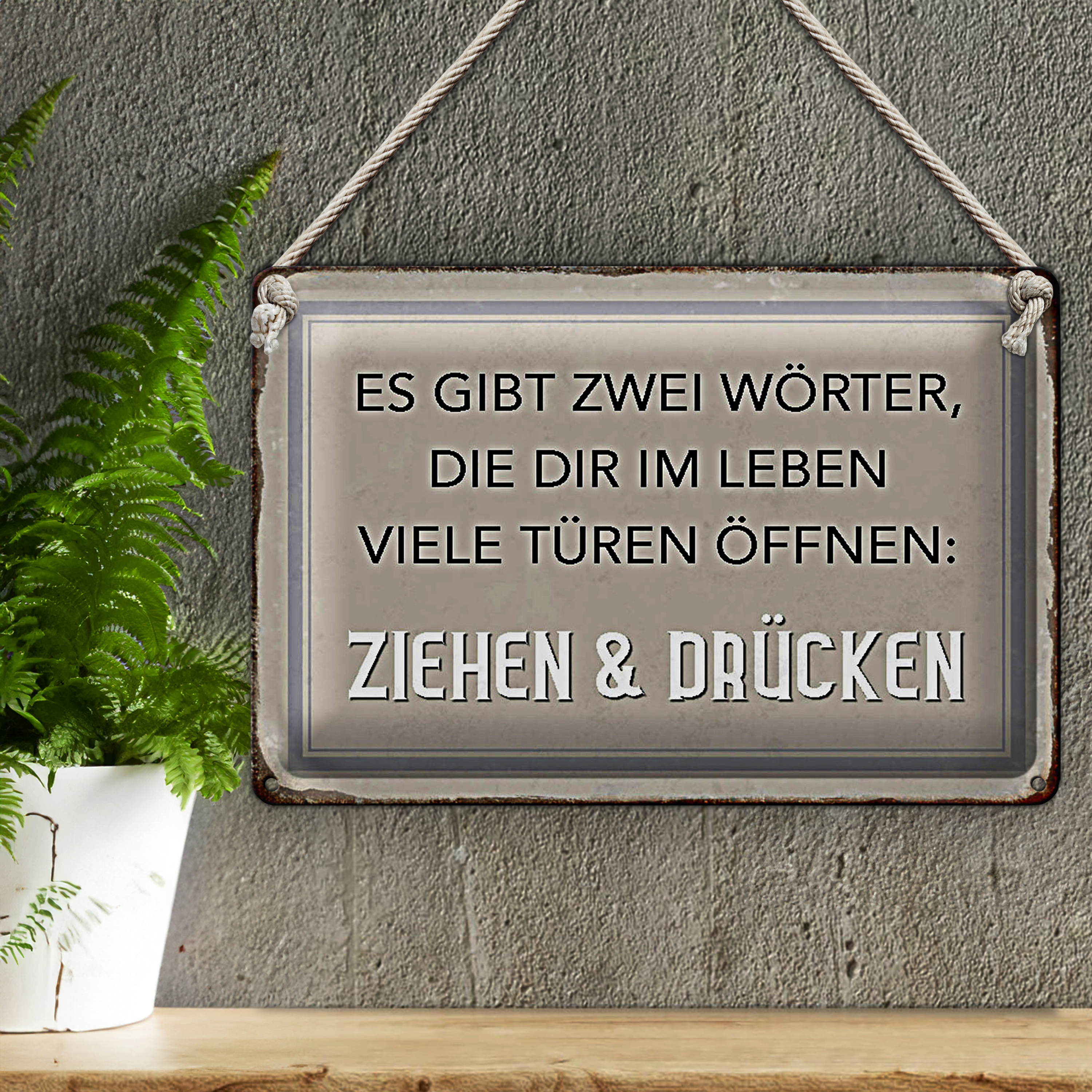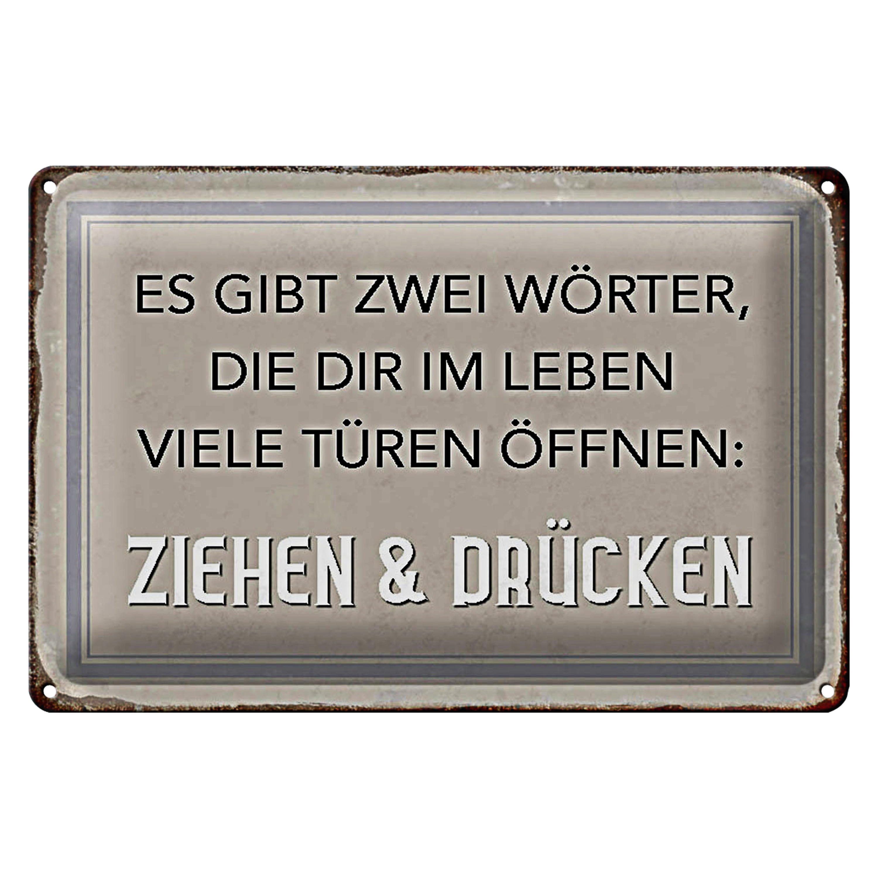Blechschild Spruch 30x20cm gibt zwei Wörter Ziehen Drücken