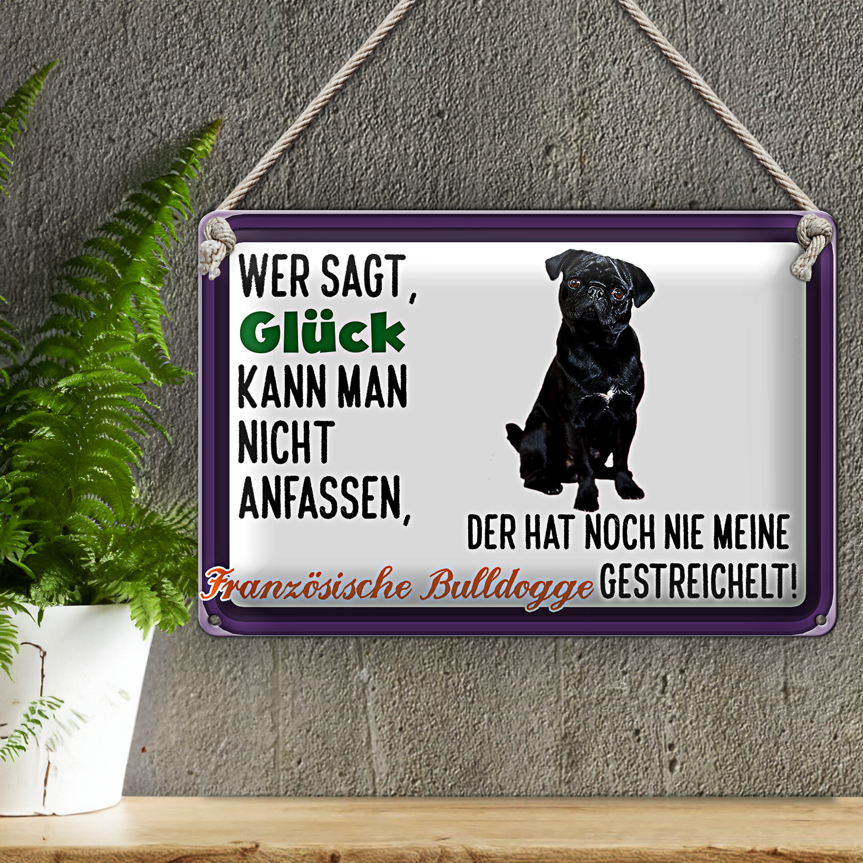 Blechschild Spruch 30x20cm Glück Französische Bulldogge