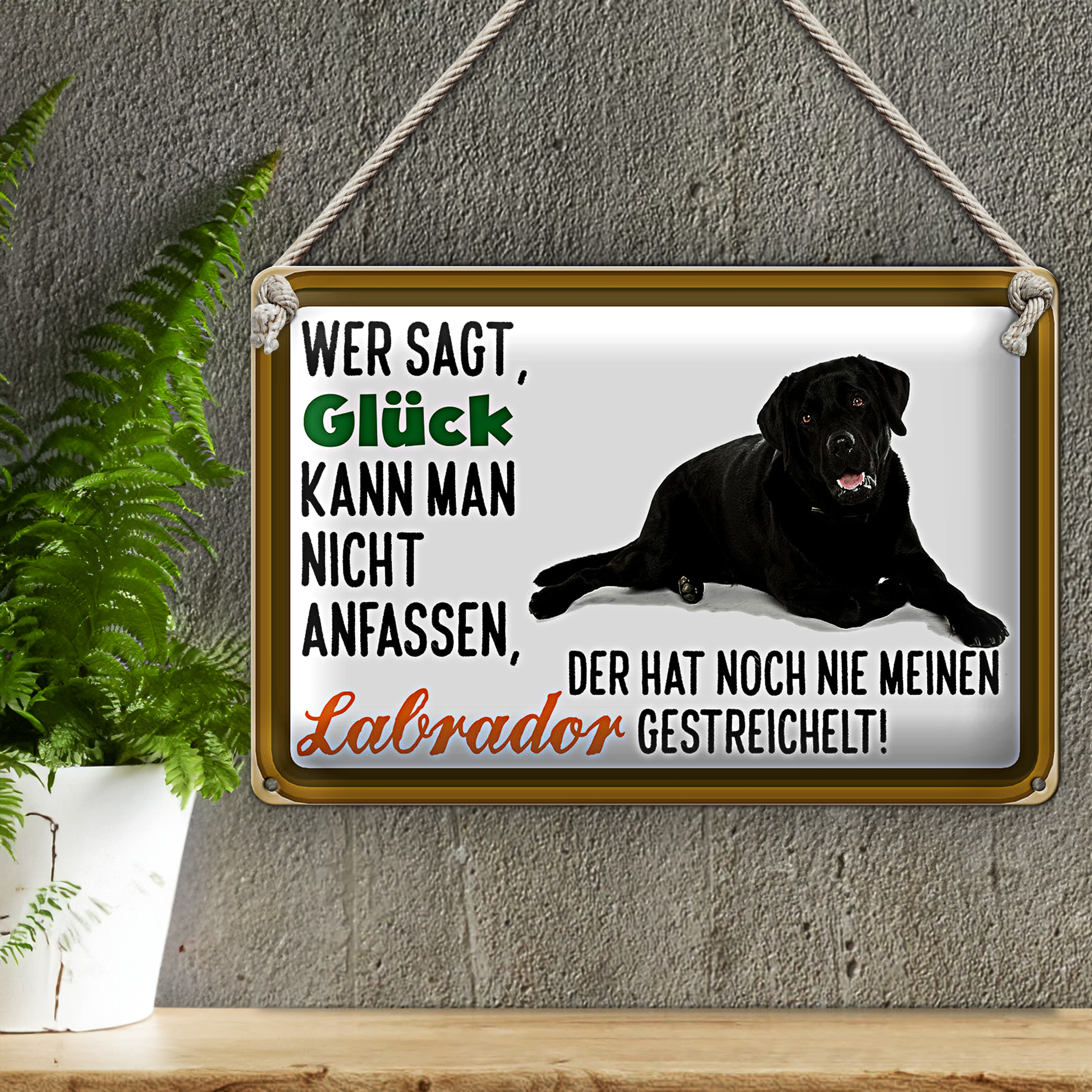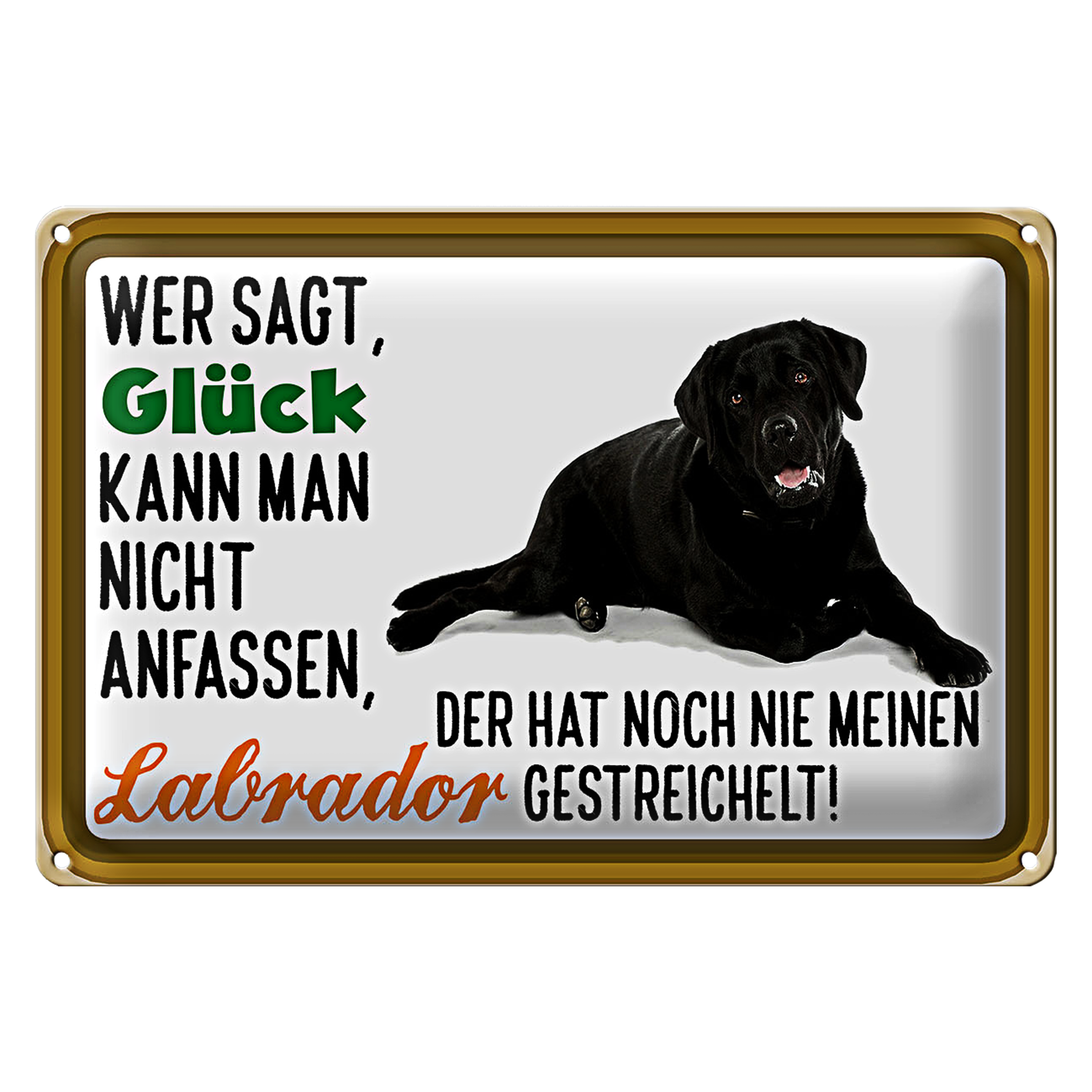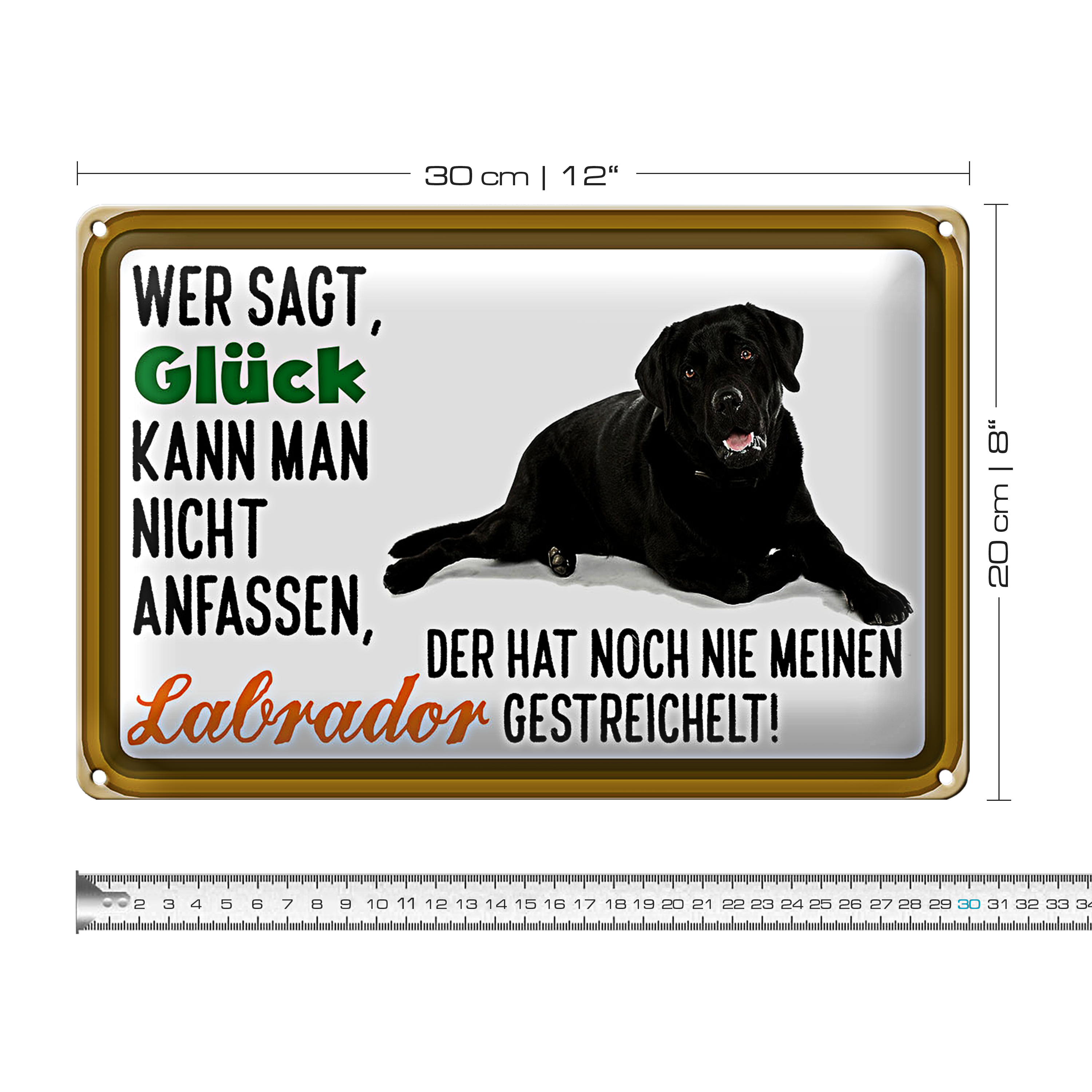 Blechschild Spruch 30x20cm Glück nicht anfassen Labrador