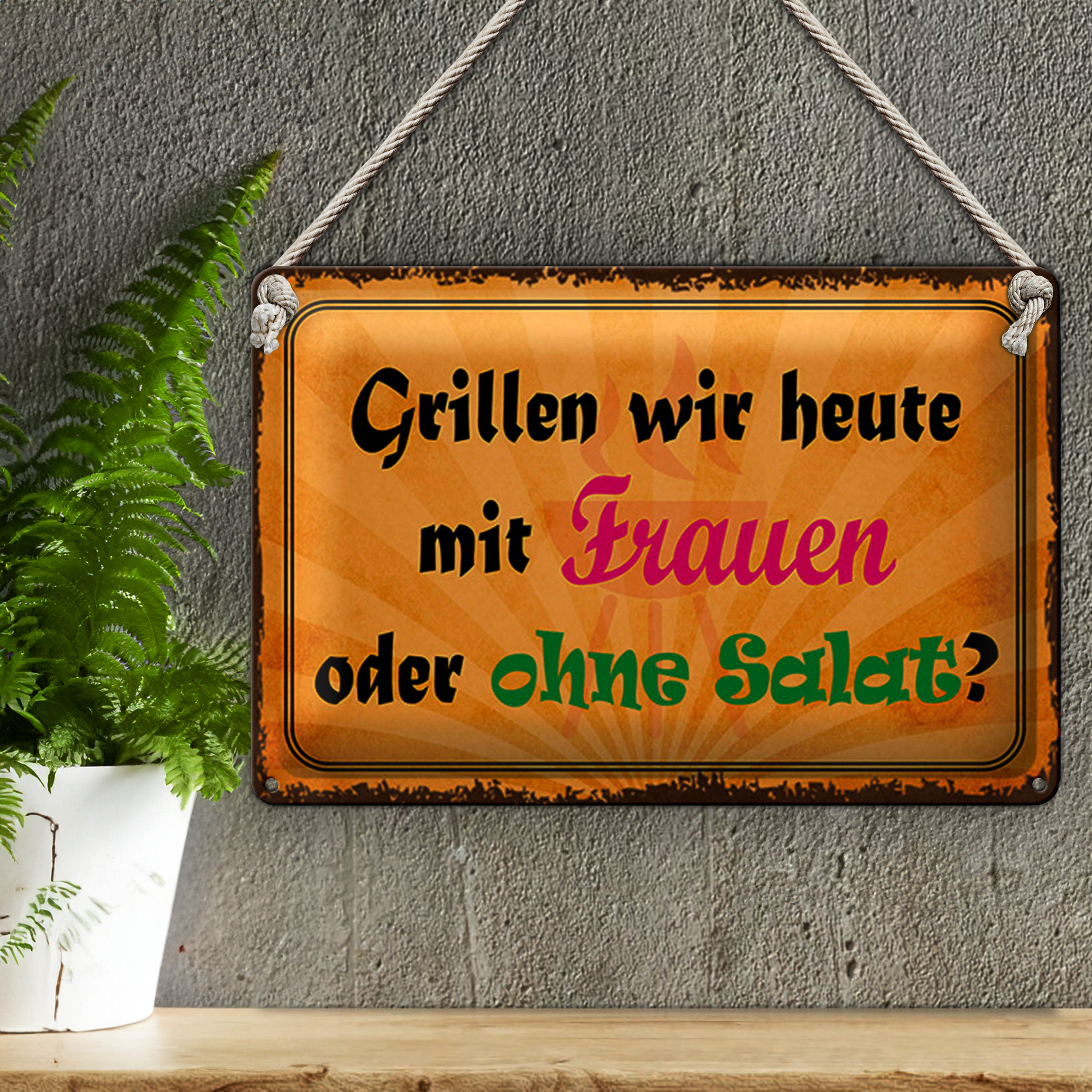 Blechschild Spruch 30x20cm Grillen heute mit Frauen oder