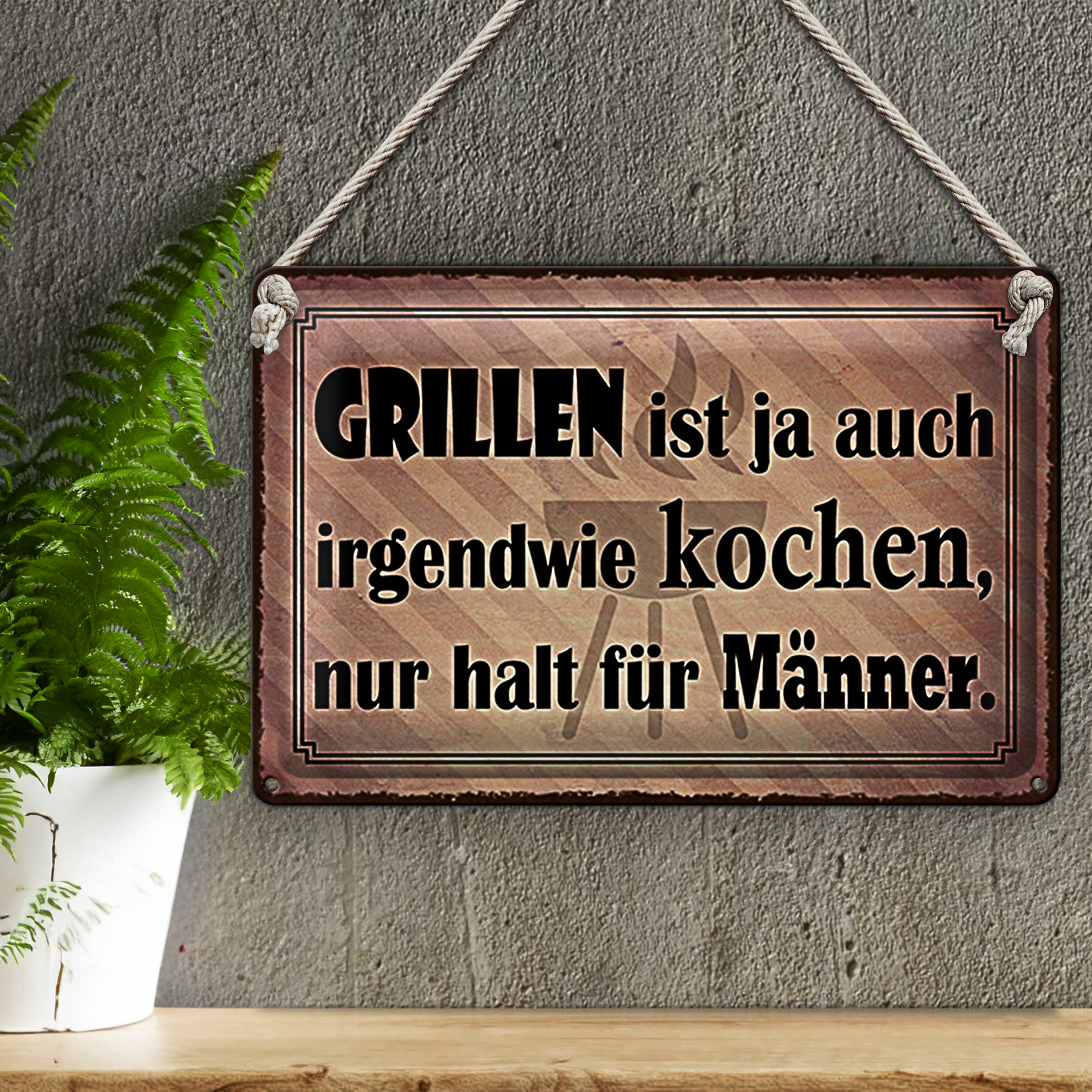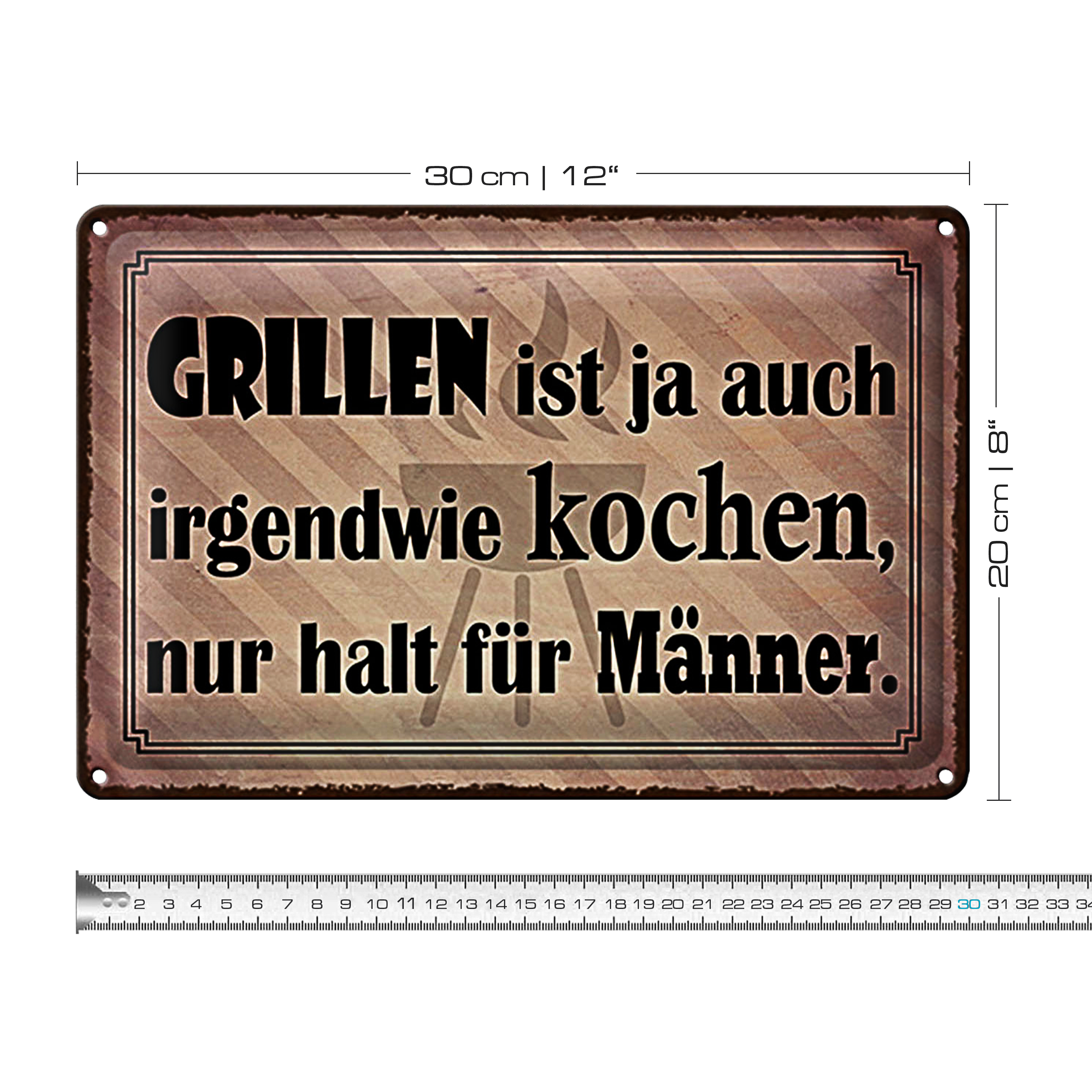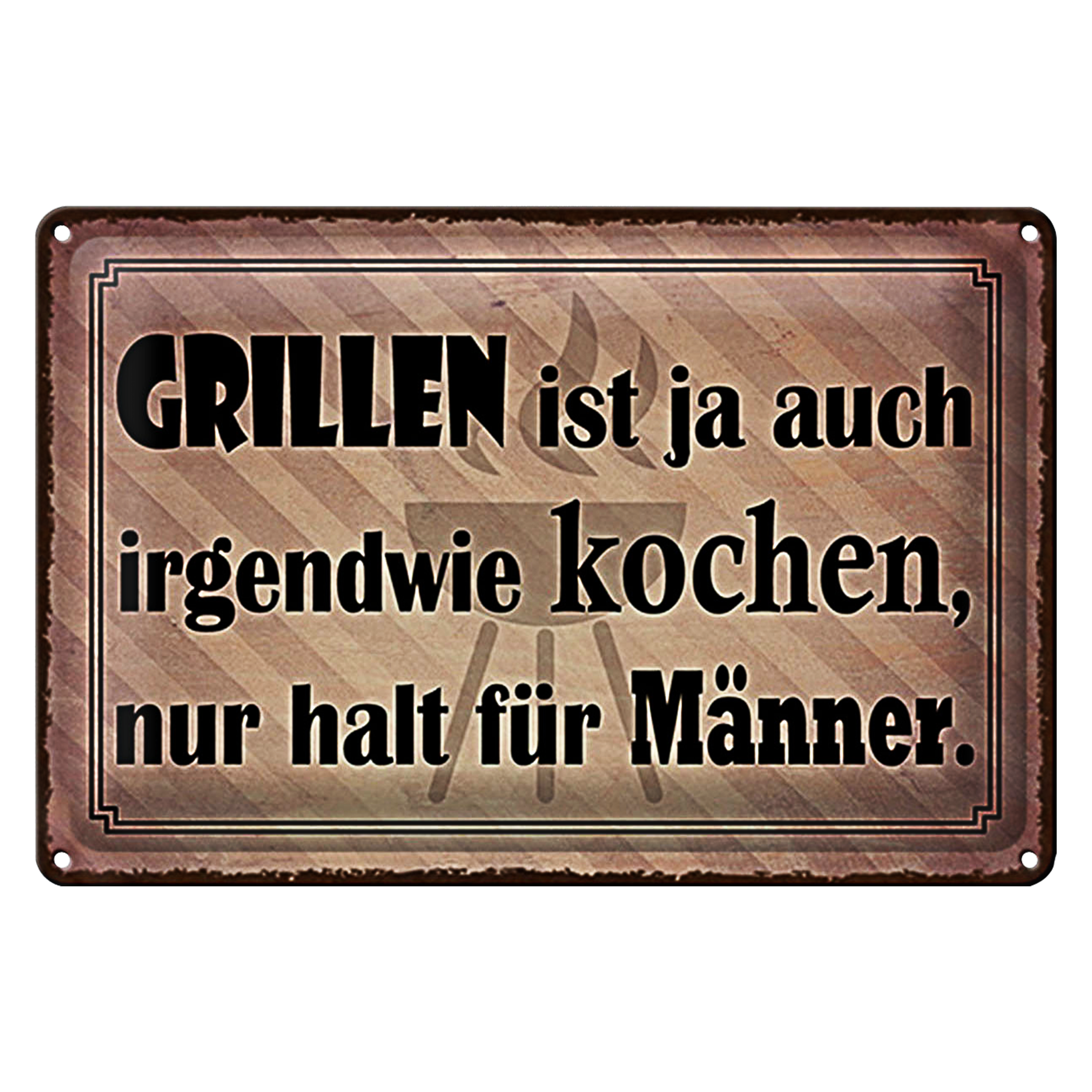 Blechschild Spruch 30x20cm Grillen ist kochen für Männer