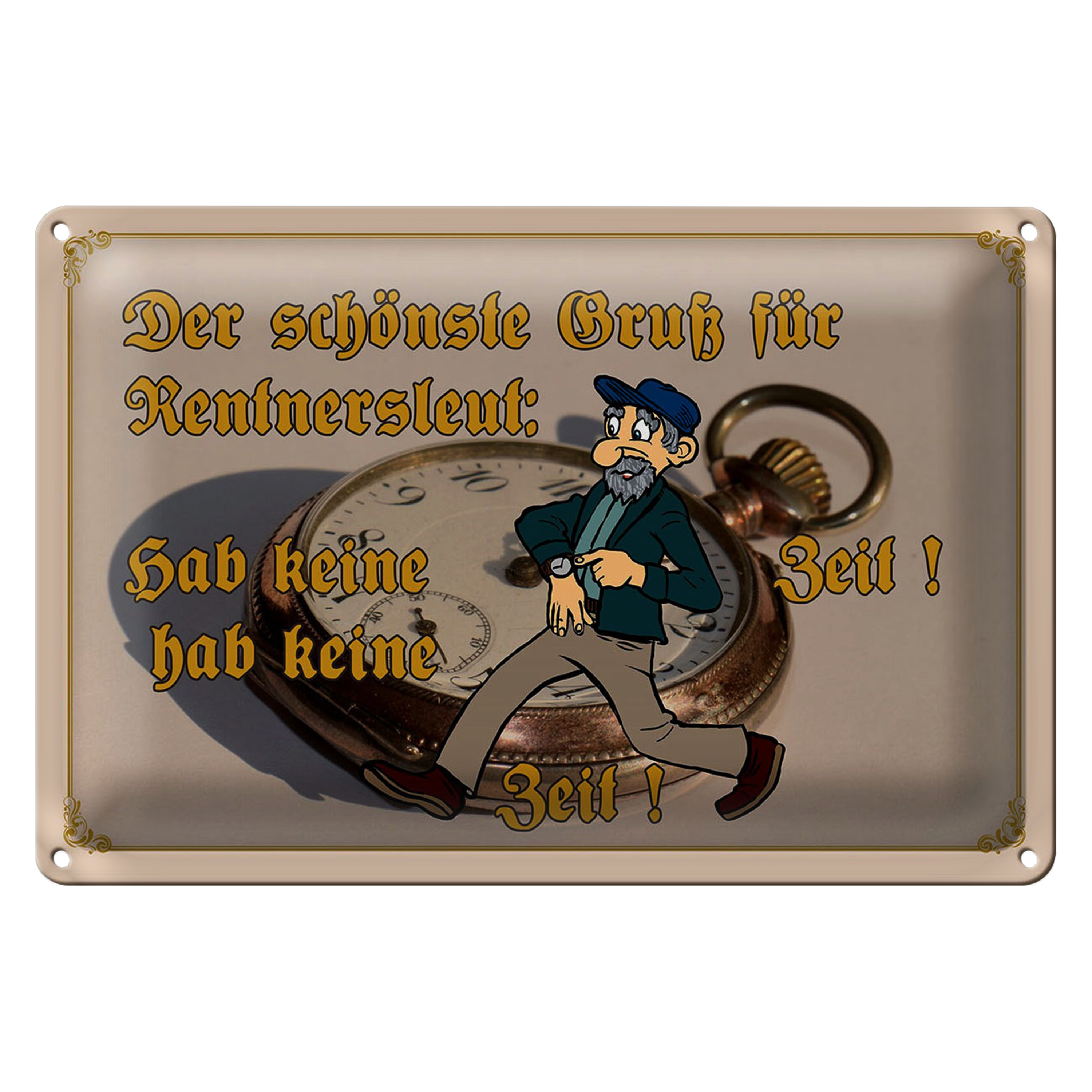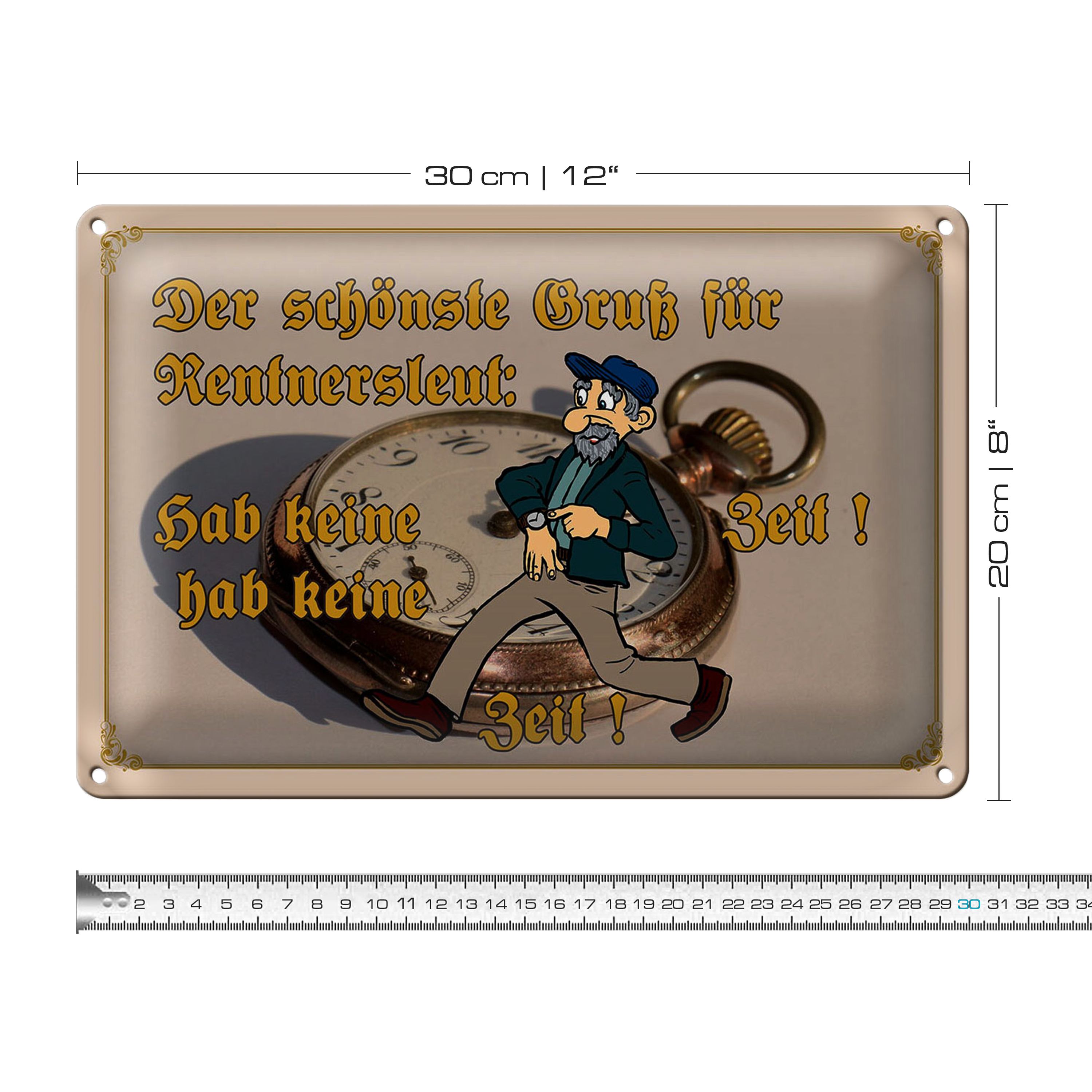 Blechschild Spruch 30x20cm Gruß für Rentner gab keine Zeit