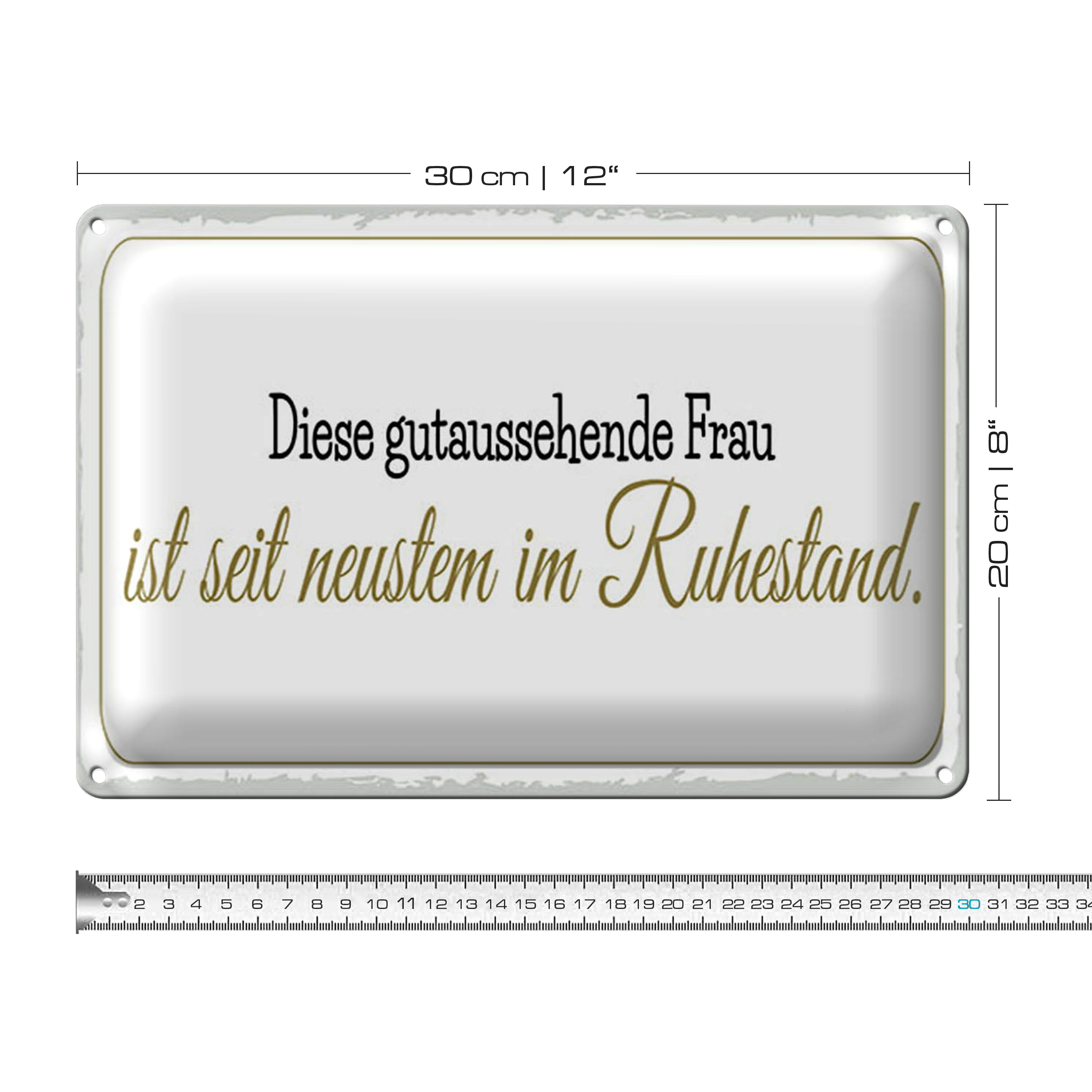 Blechschild Spruch 30x20cm gutaussehende Frau ist im Ruhestand