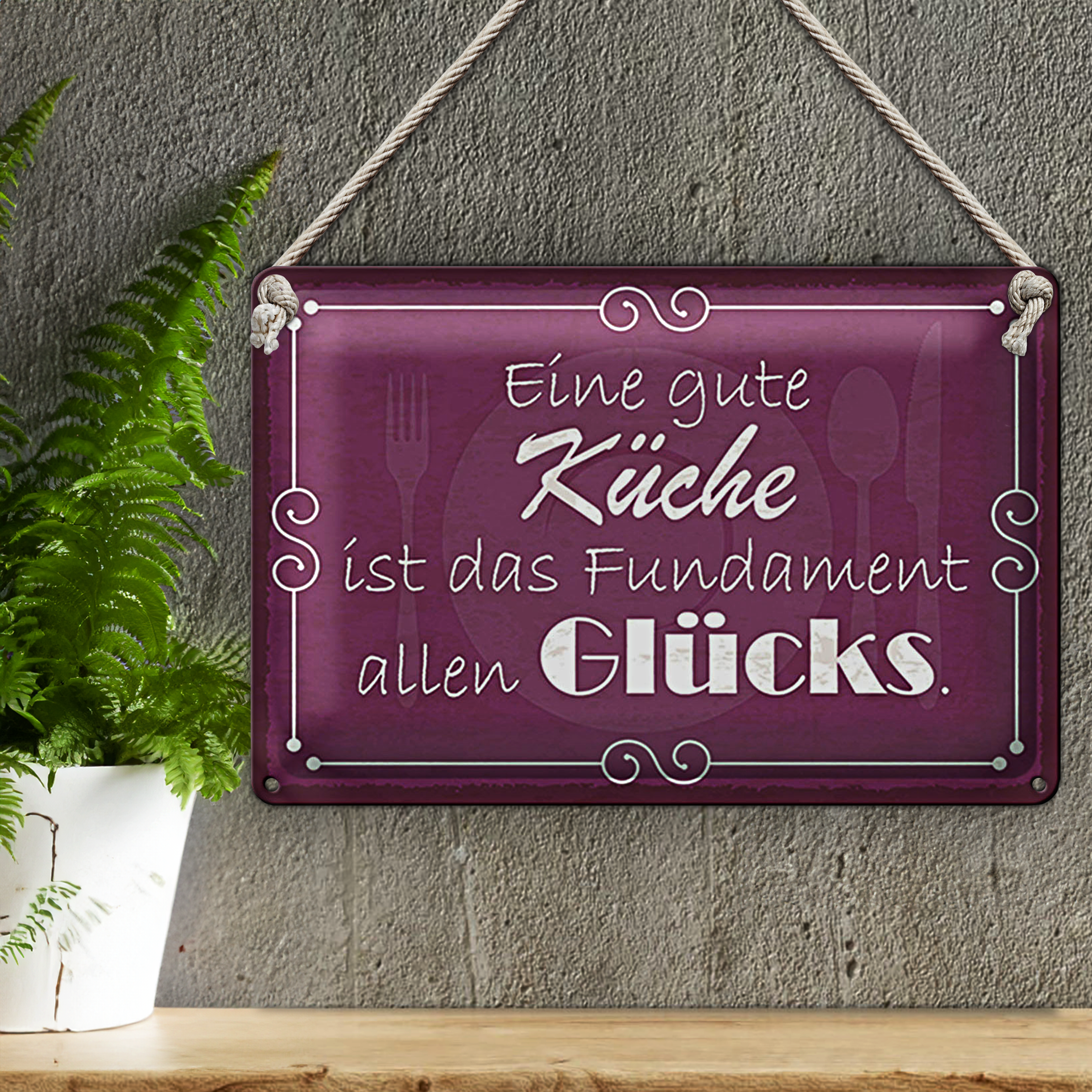 Blechschild Spruch 30x20cm gute Küche Fundament allen Glück