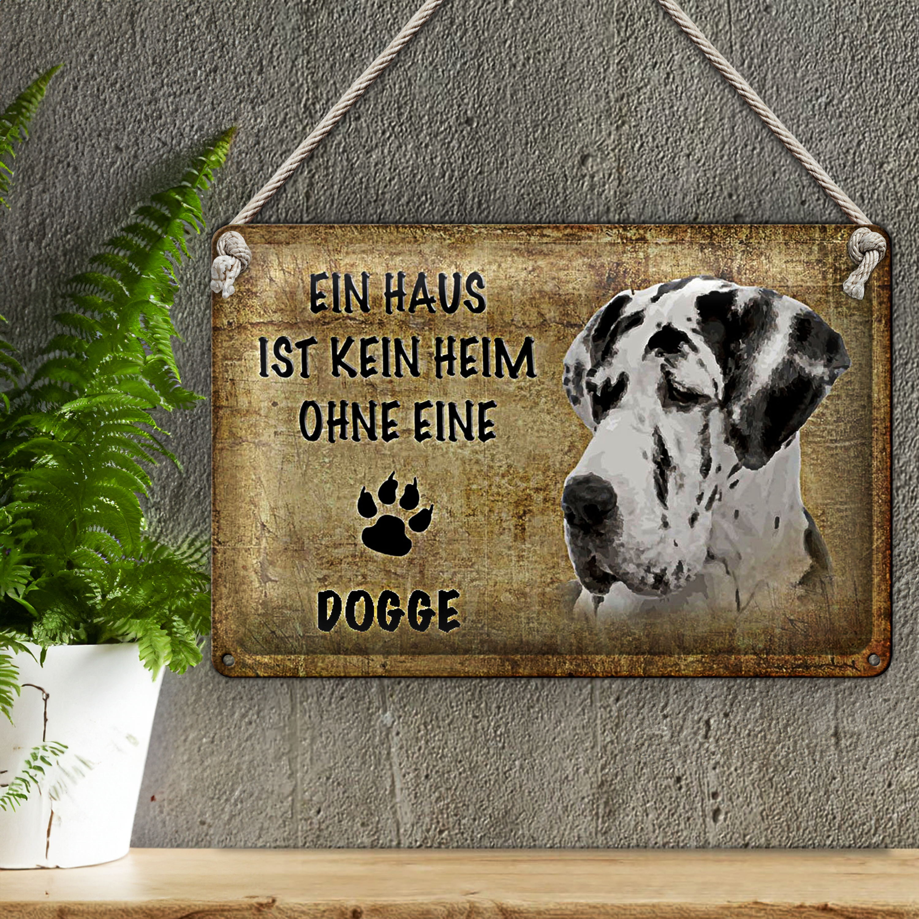 Blechschild Spruch 30x20cm Haus kein Heim ohne die Dogge
