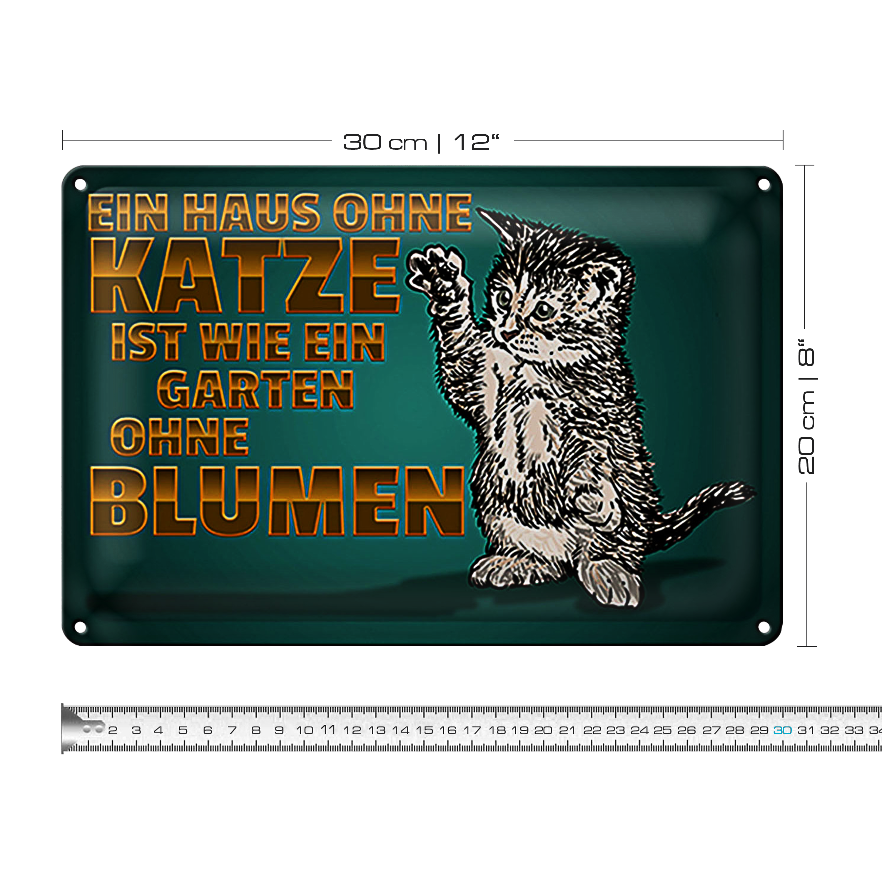 Blechschild Spruch 30x20cm Haus ohne Katze Garten ohne Blumen