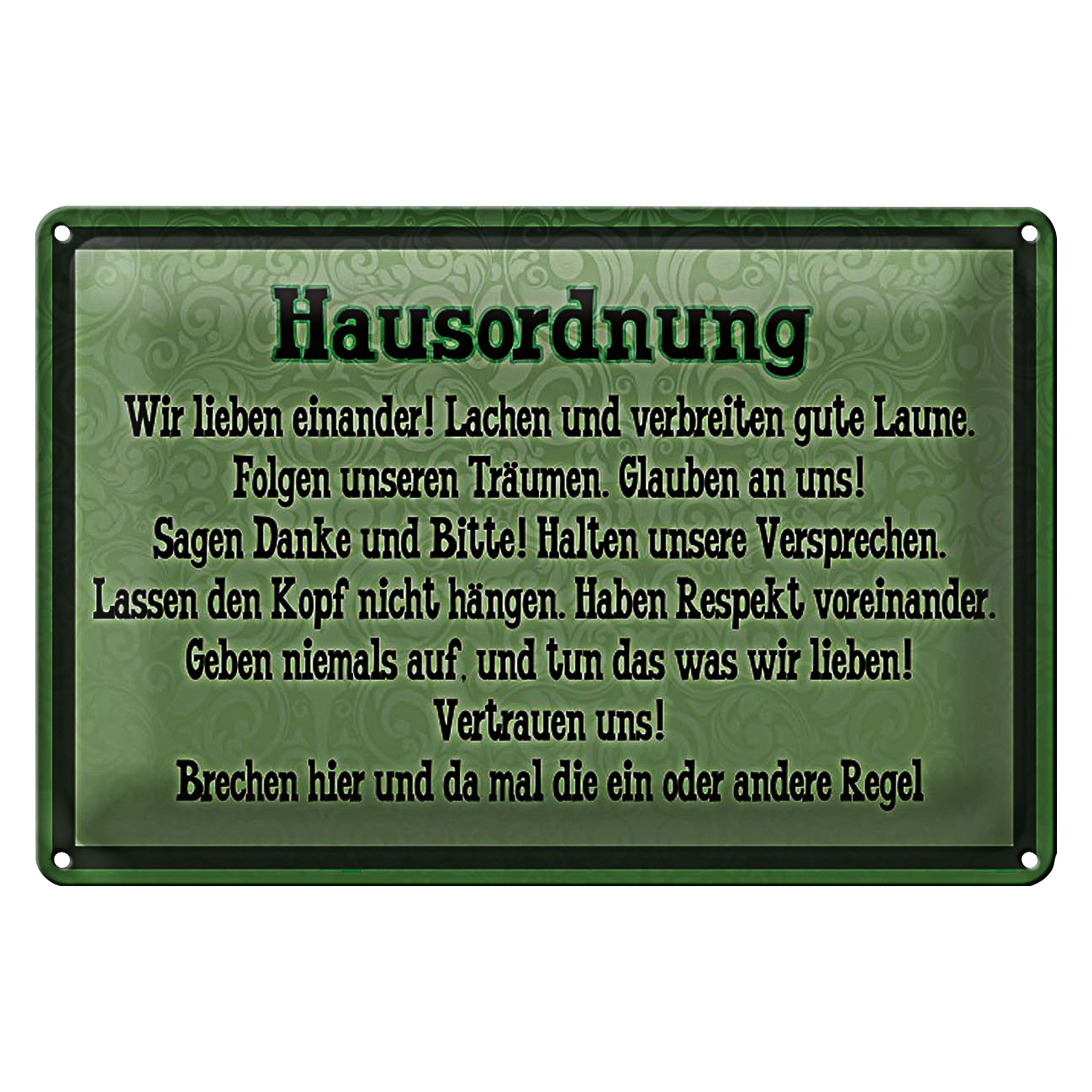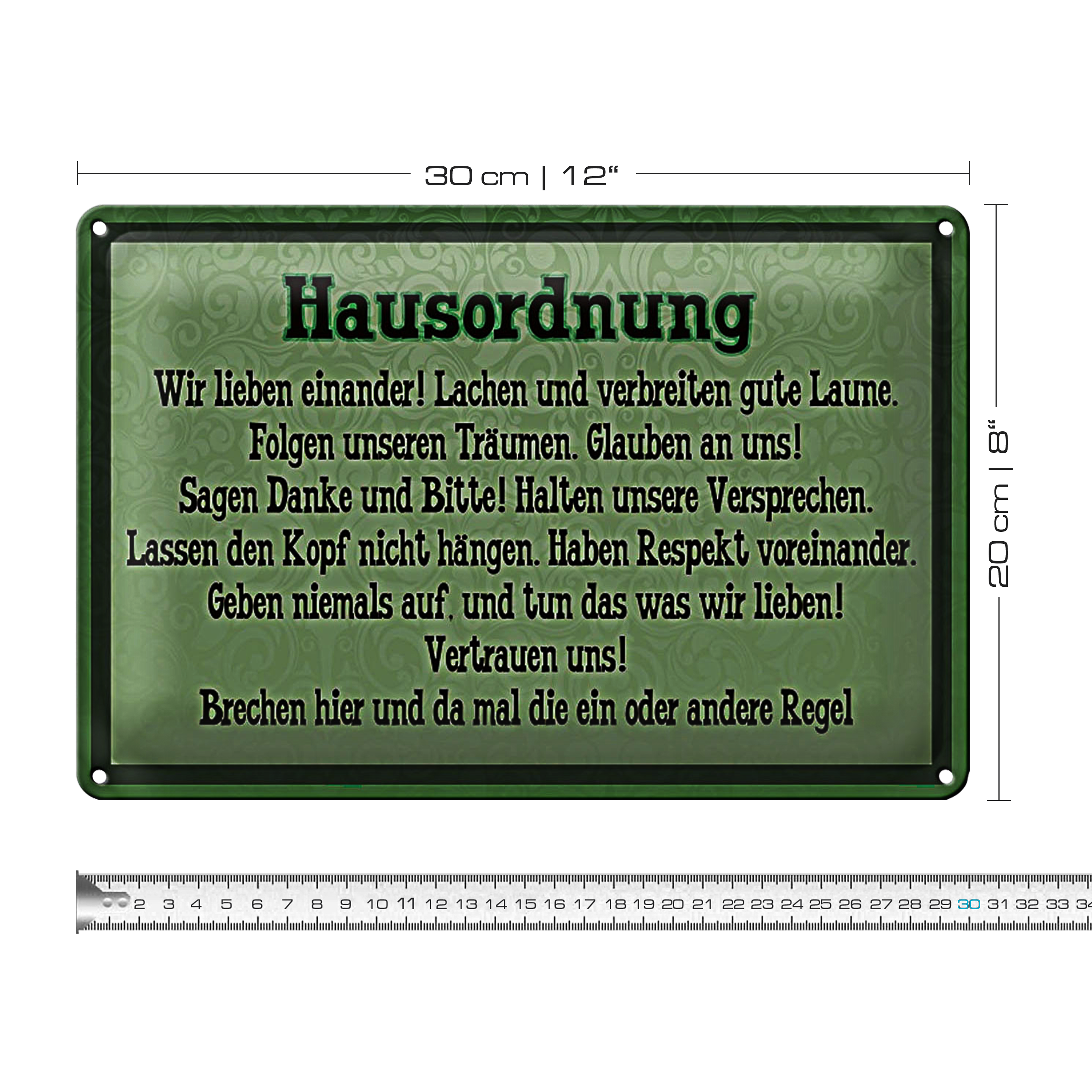 Blechschild Spruch 30x20cm Hausordnung wir lieben einander