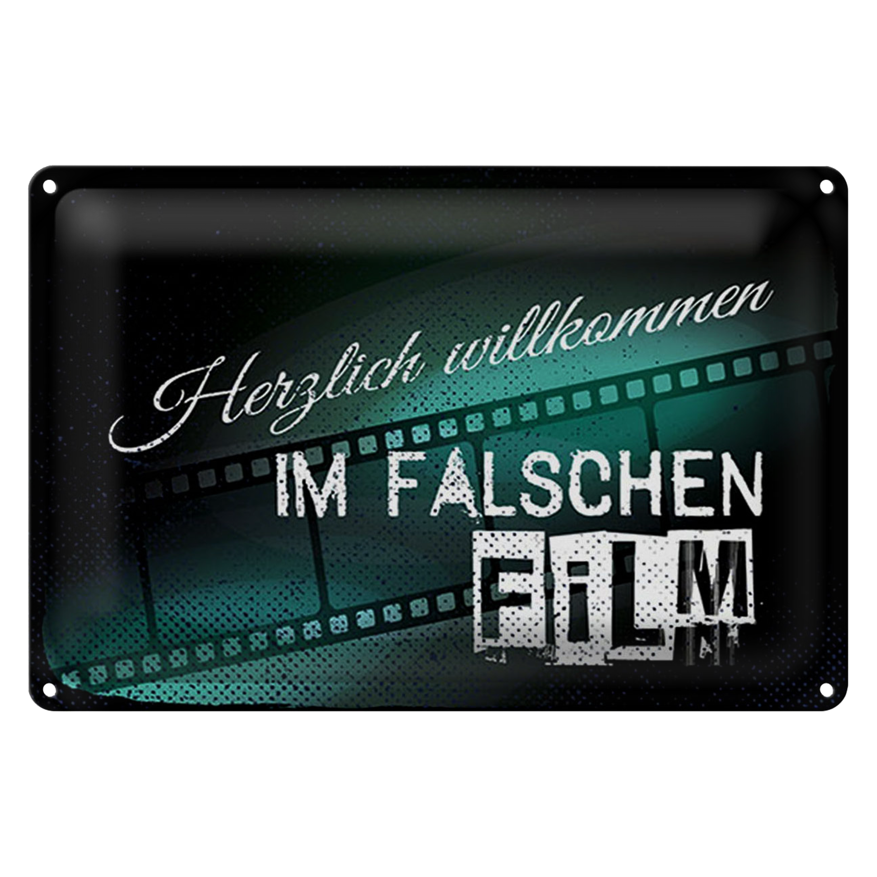 Blechschild Spruch 30x20cm Herzlich willkommen im falschen Film