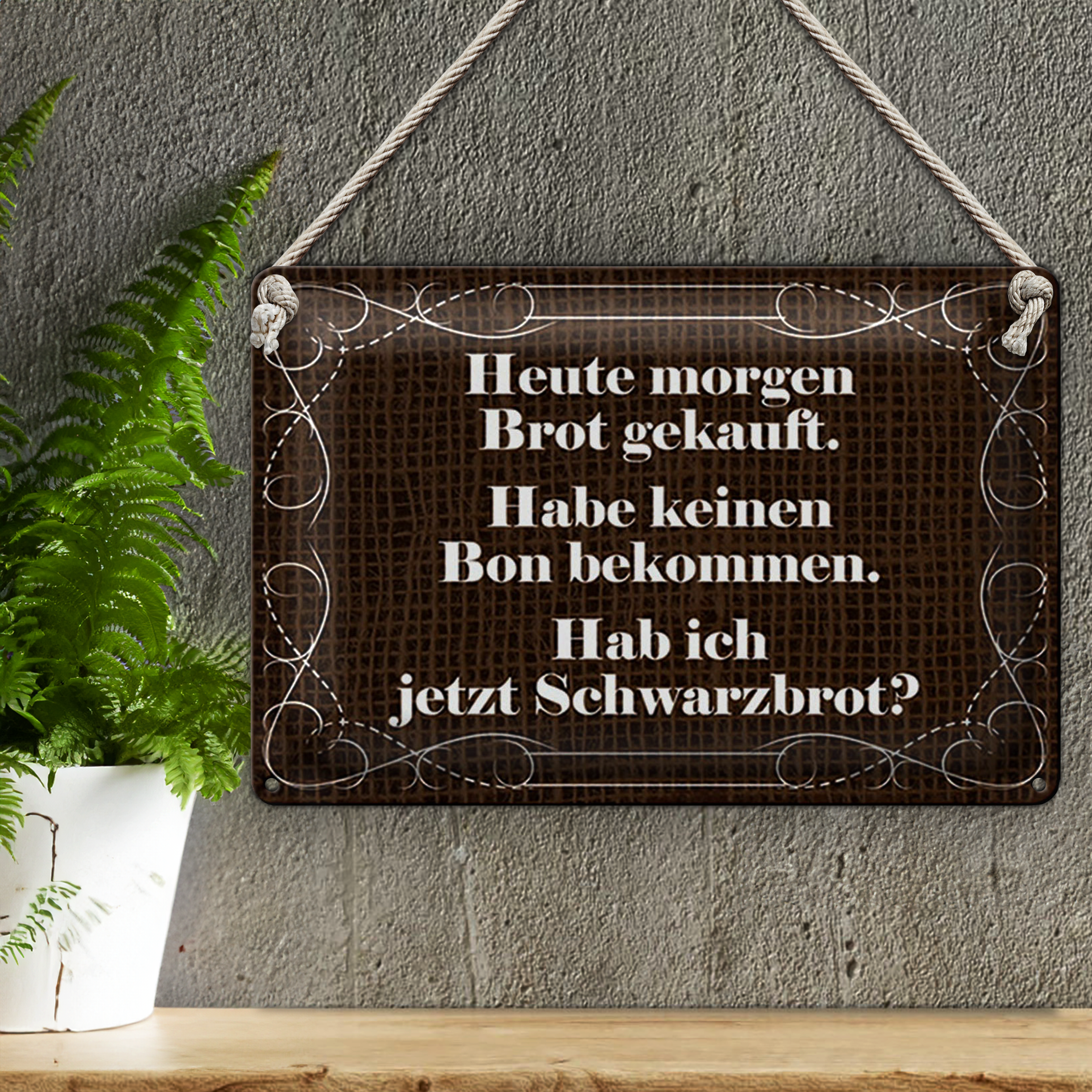 Blechschild Spruch 30x20cm heute morgen Brot gekauft
