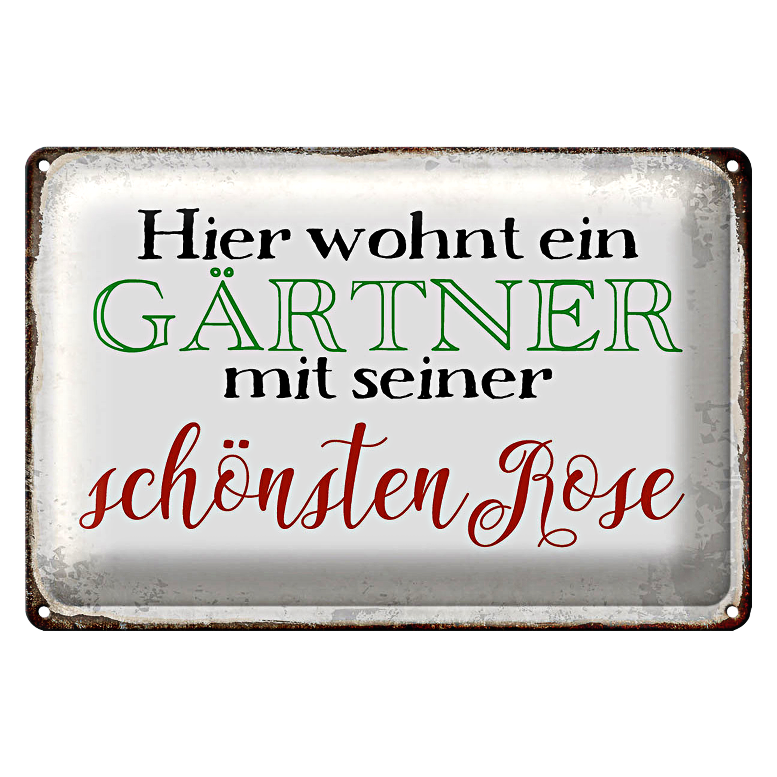 Blechschild Spruch 30x20cm hier Gärtner mit schönster Rose