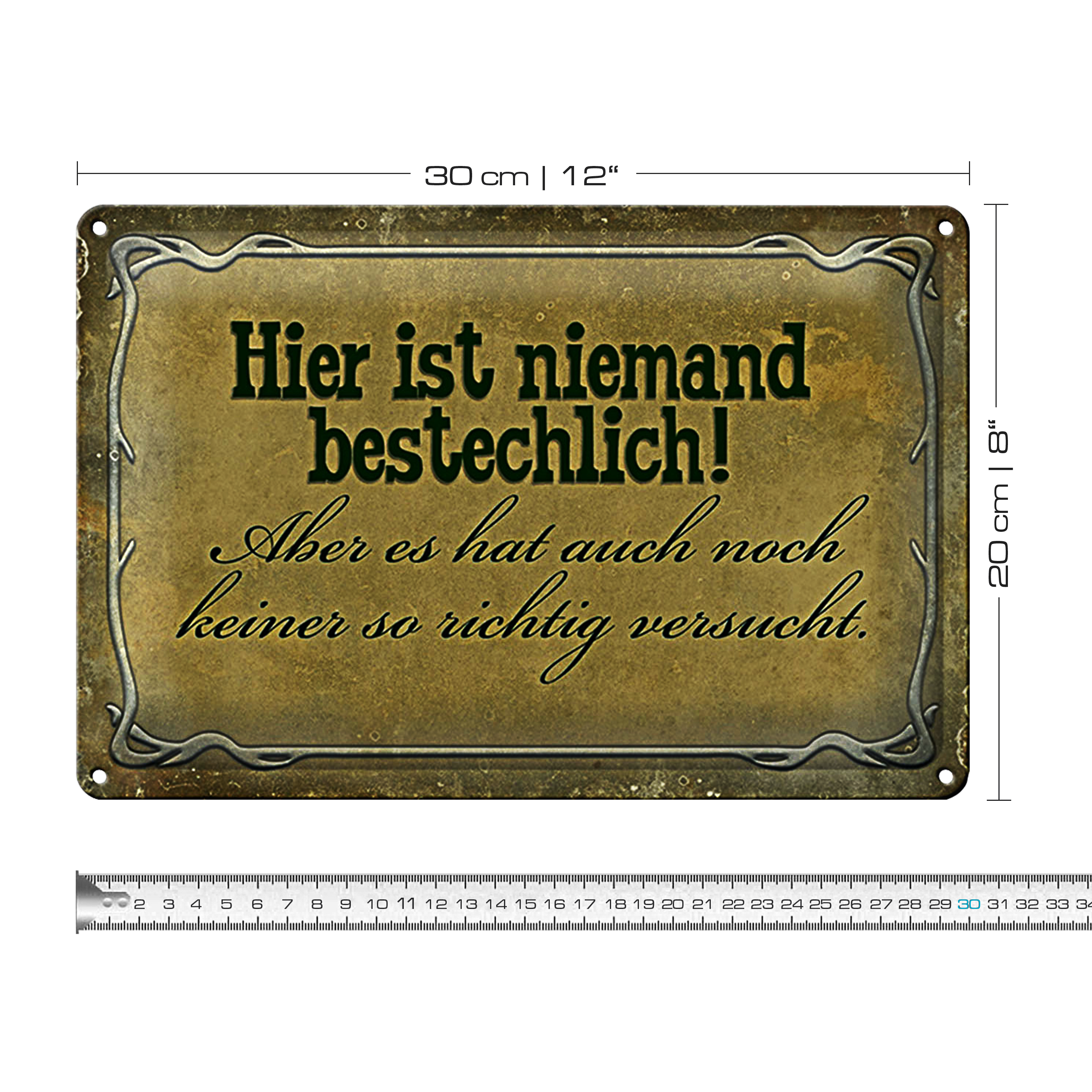 Blechschild Spruch 30x20cm hier ist niemand bestechlich