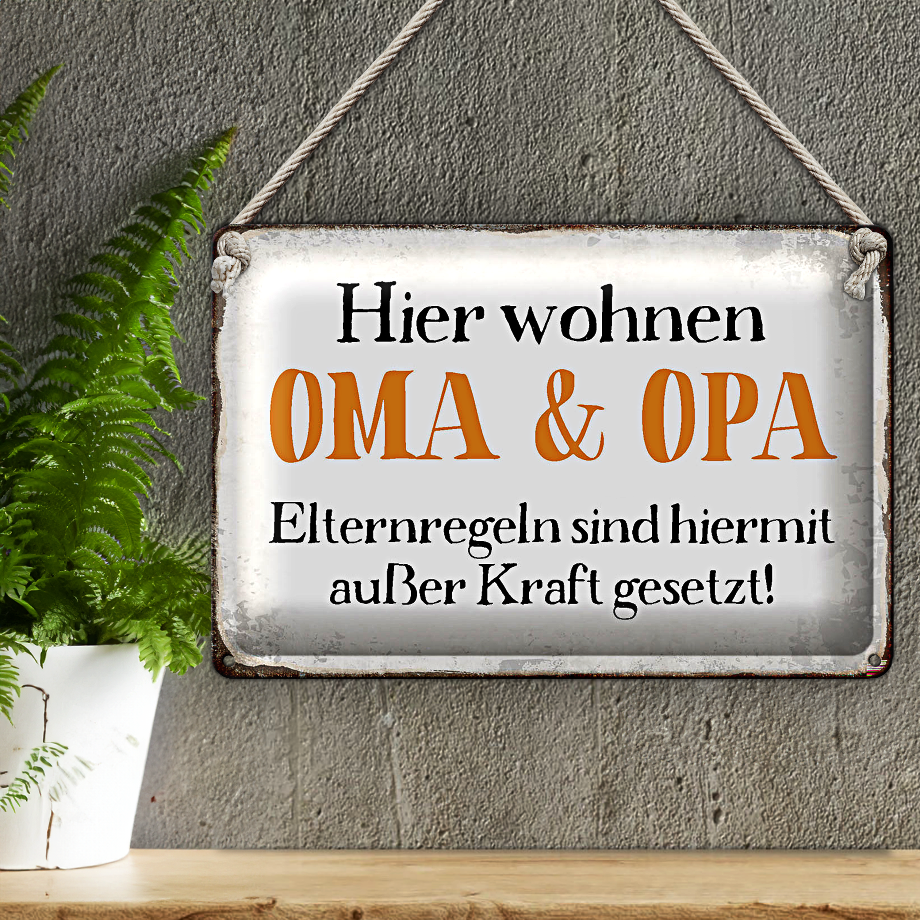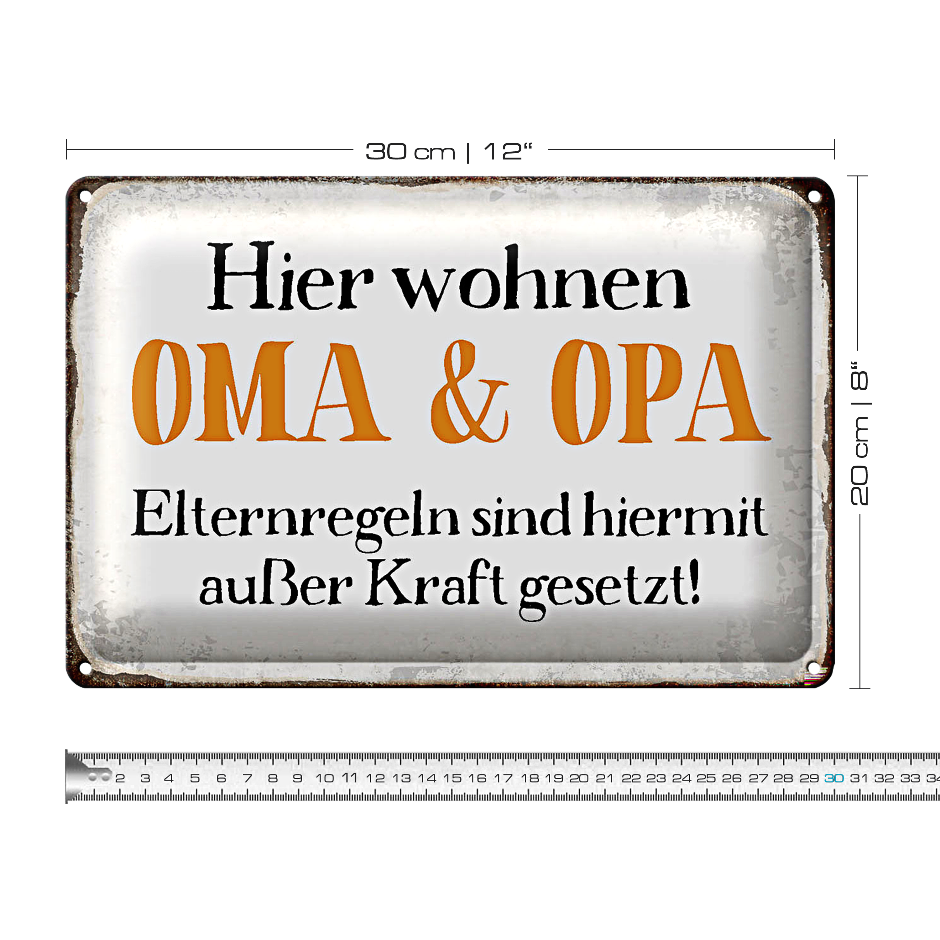 Blechschild Spruch 30x20cm hier wohnen Opa und Oma Retro