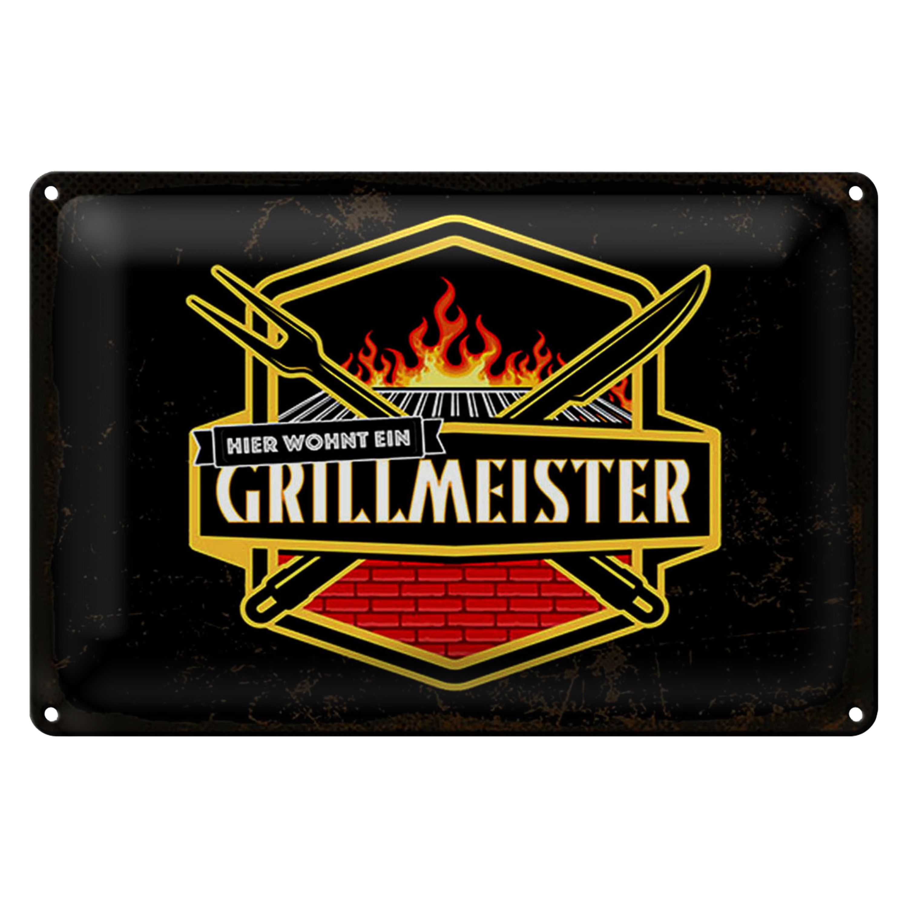 Blechschild Spruch 30x20cm Hier wohnt ein Grillmeister