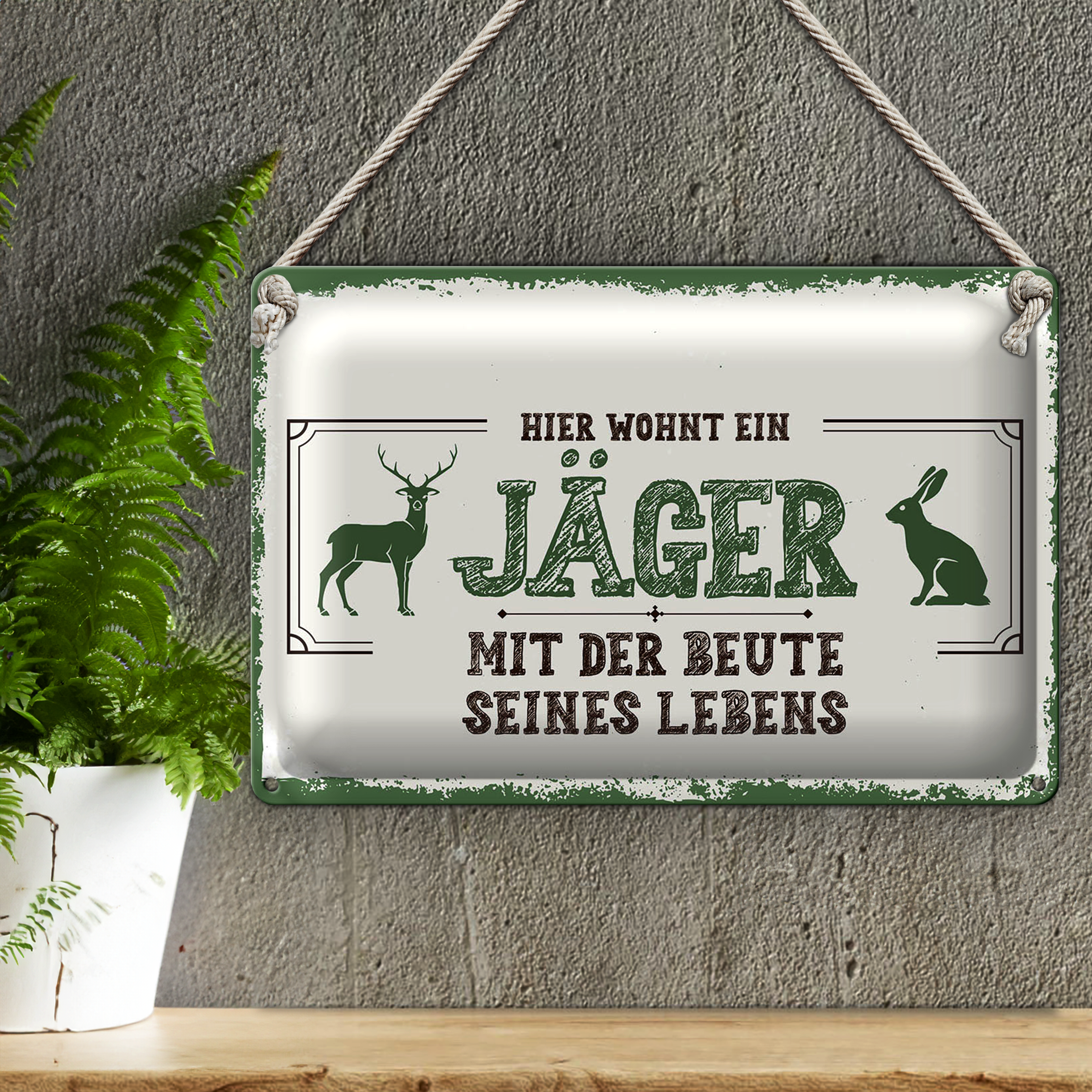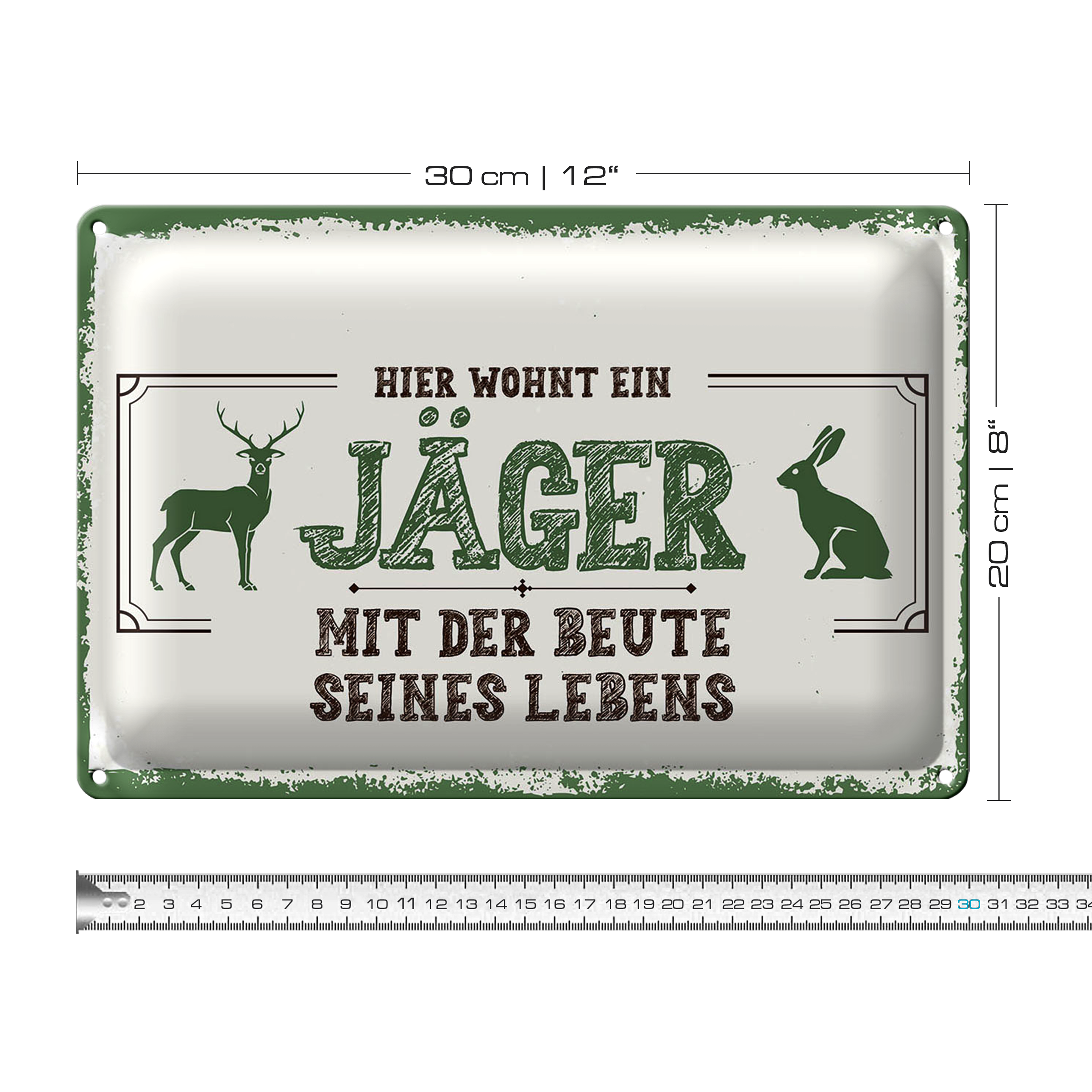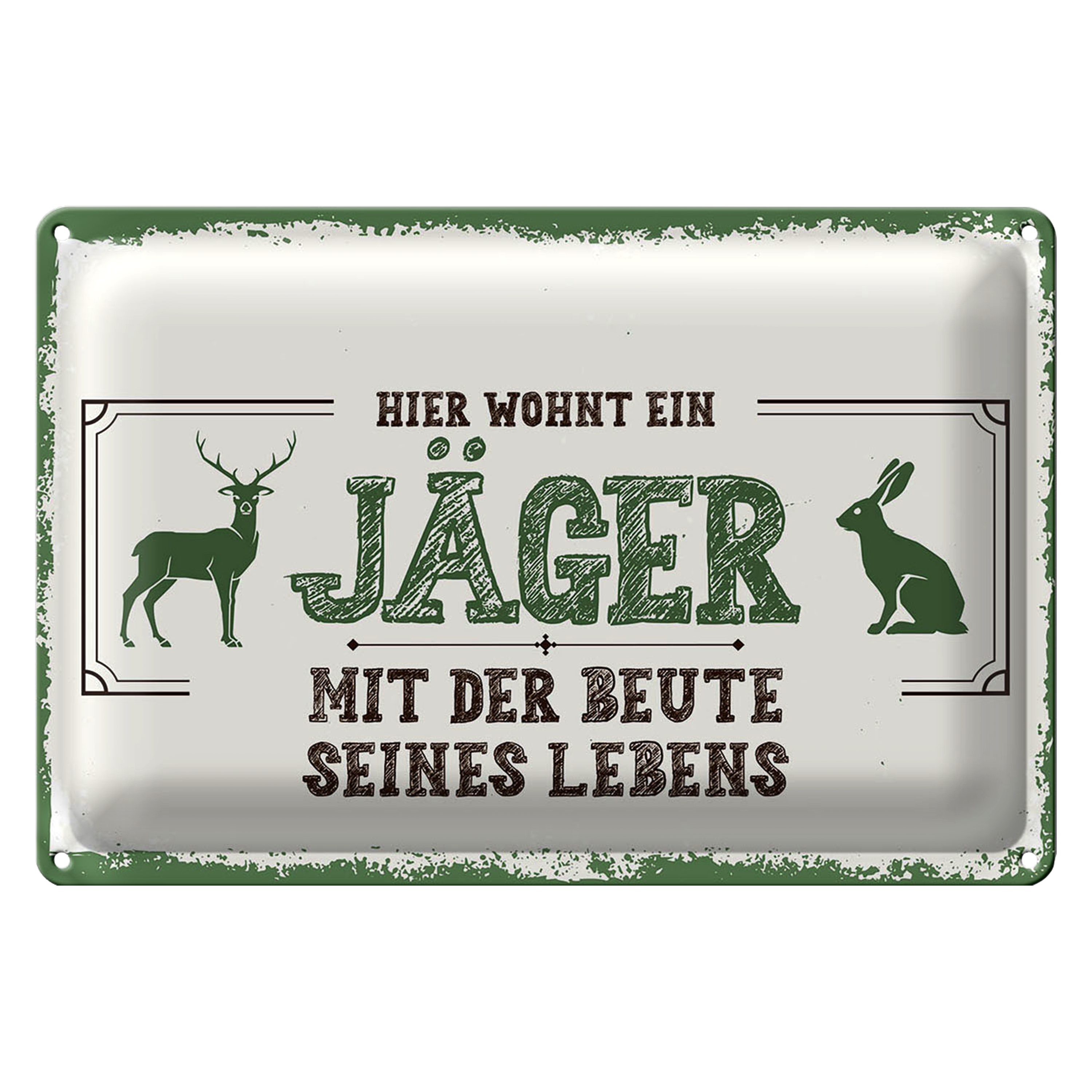 Blechschild Spruch 30x20cm Hier wohnt ein Jäger mit der Beute