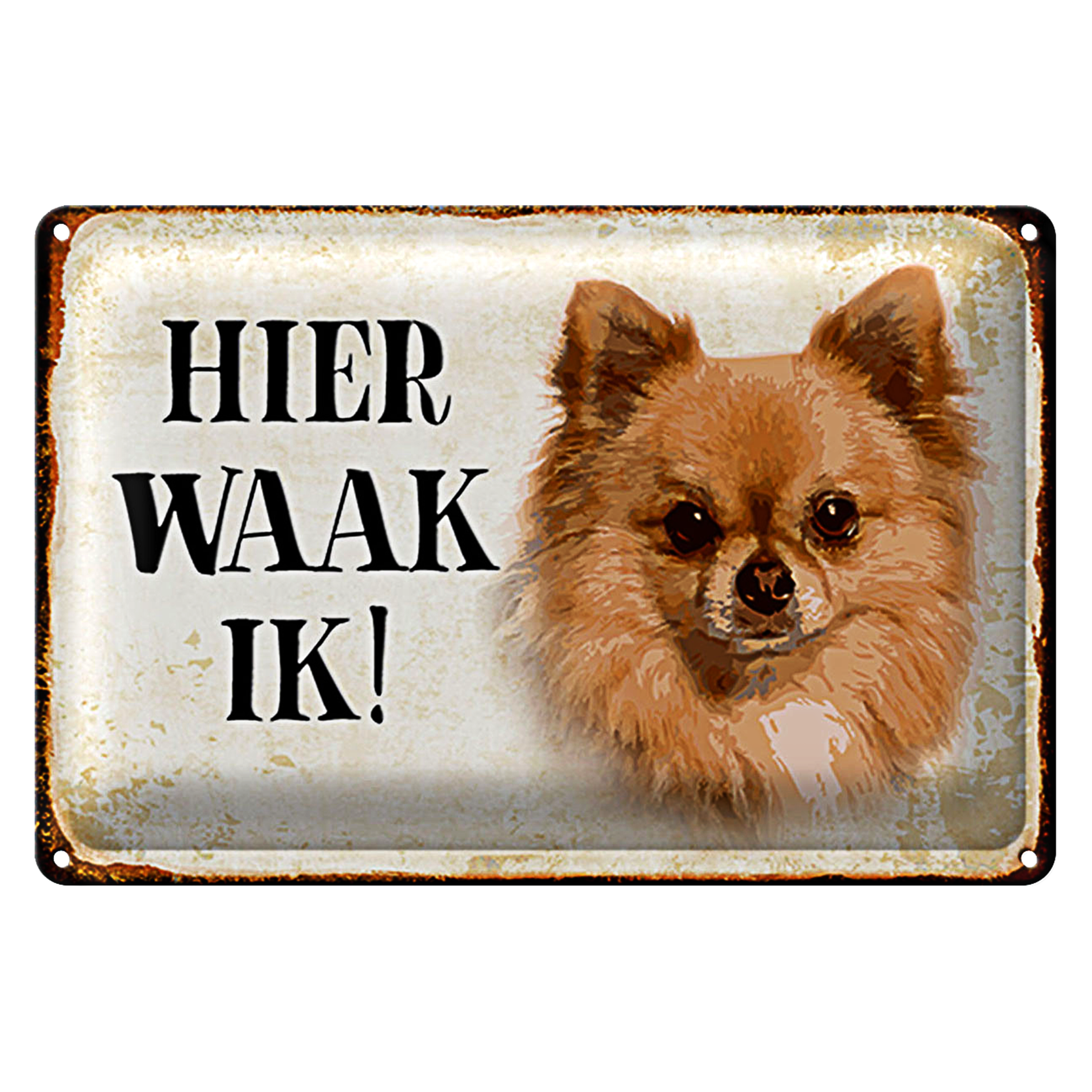 Blechschild Spruch 30x20cm holländisch Hier Waak ik Chihuahua