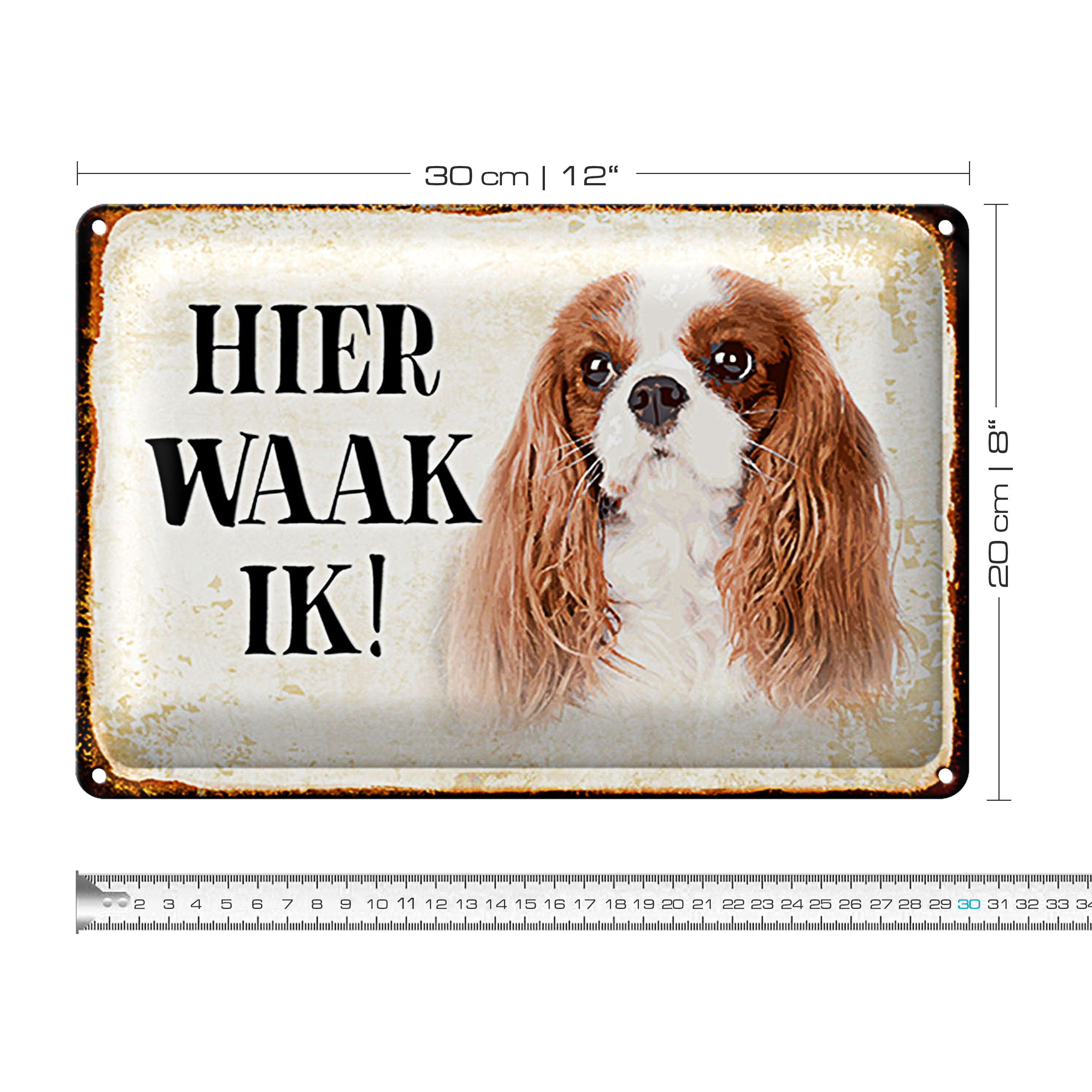 Blechschild Spruch 30x20cm holländisch Hier Waak ik King Charles Spaniel