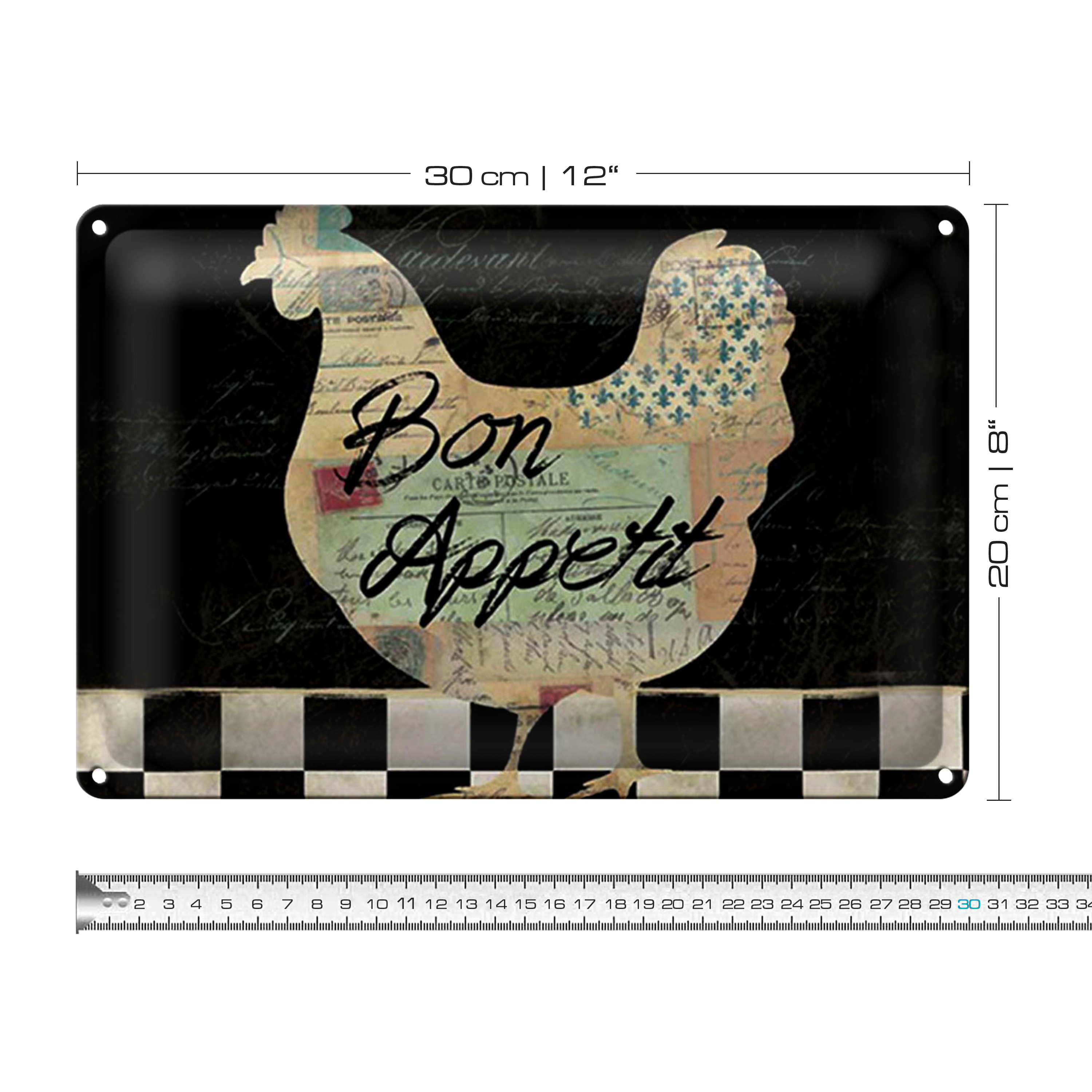 Blechschild Spruch 30x20cm Huhn Hühner Bon Appetit Eier