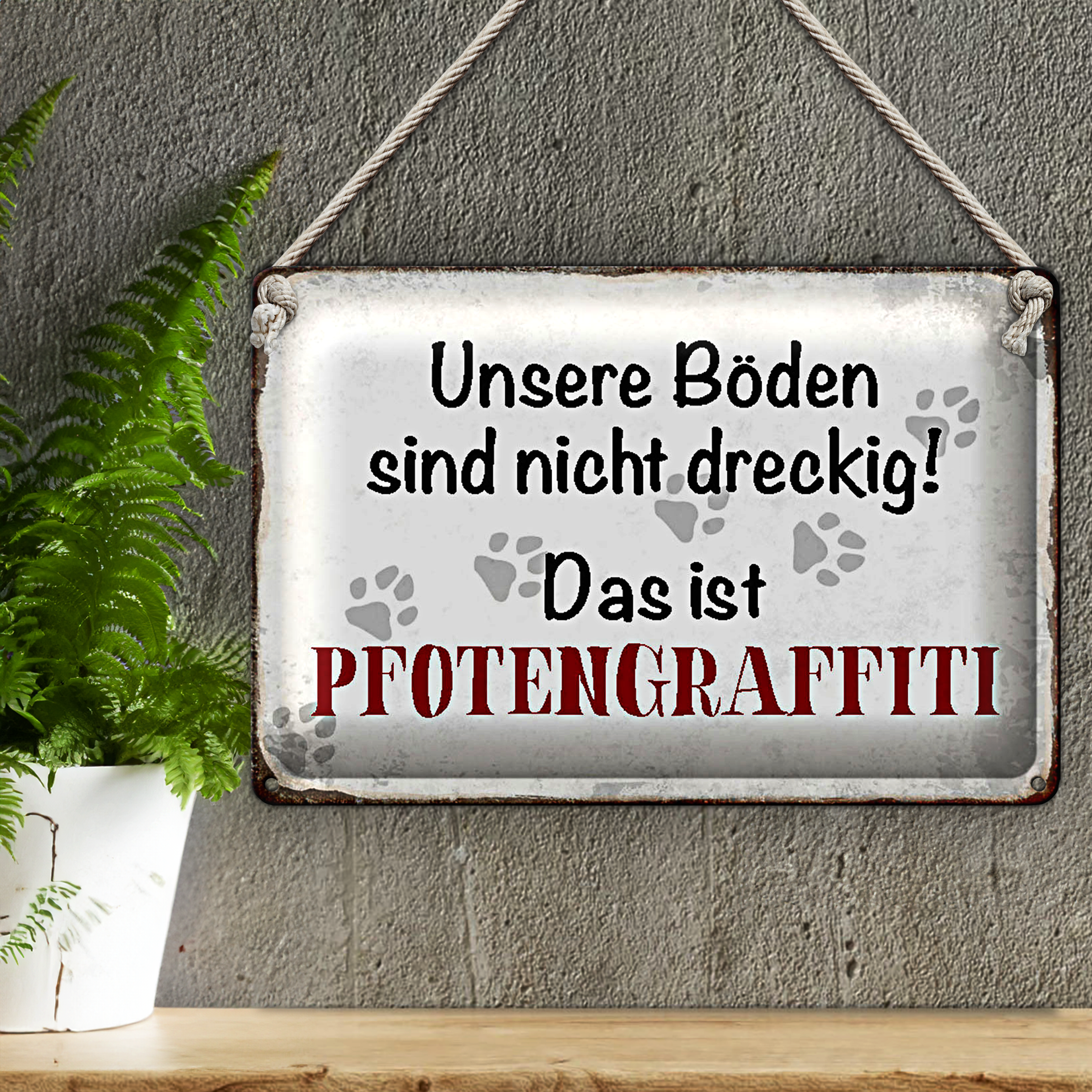 Blechschild Spruch 30x20cm Hund Boden Pfotengraffiti