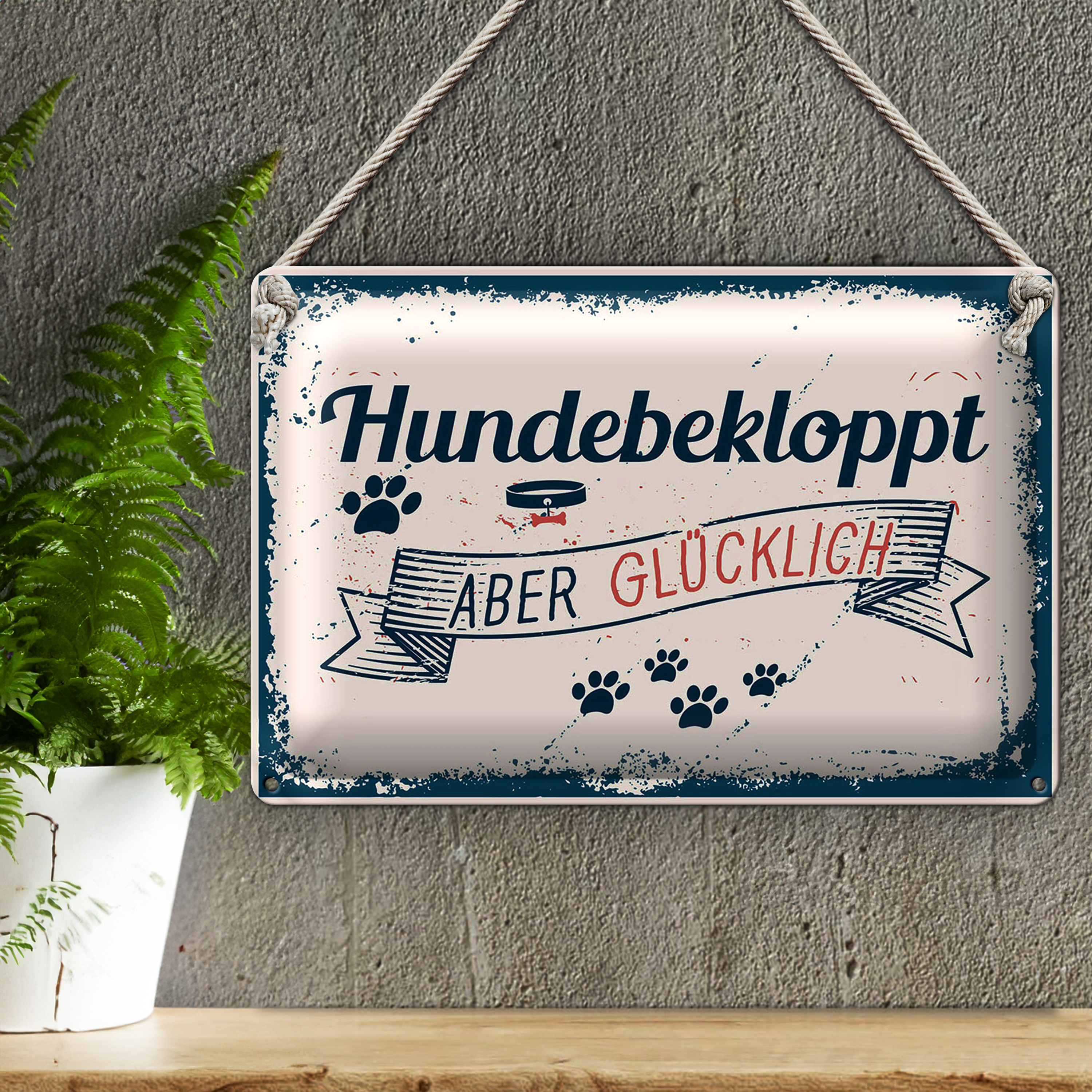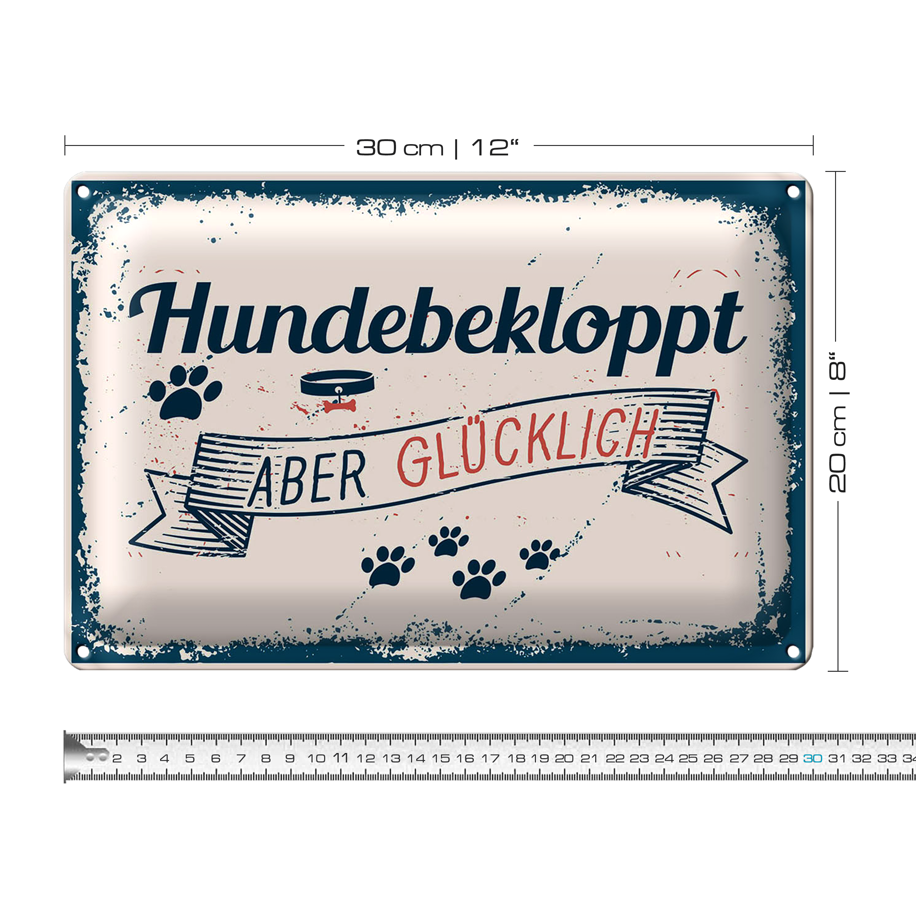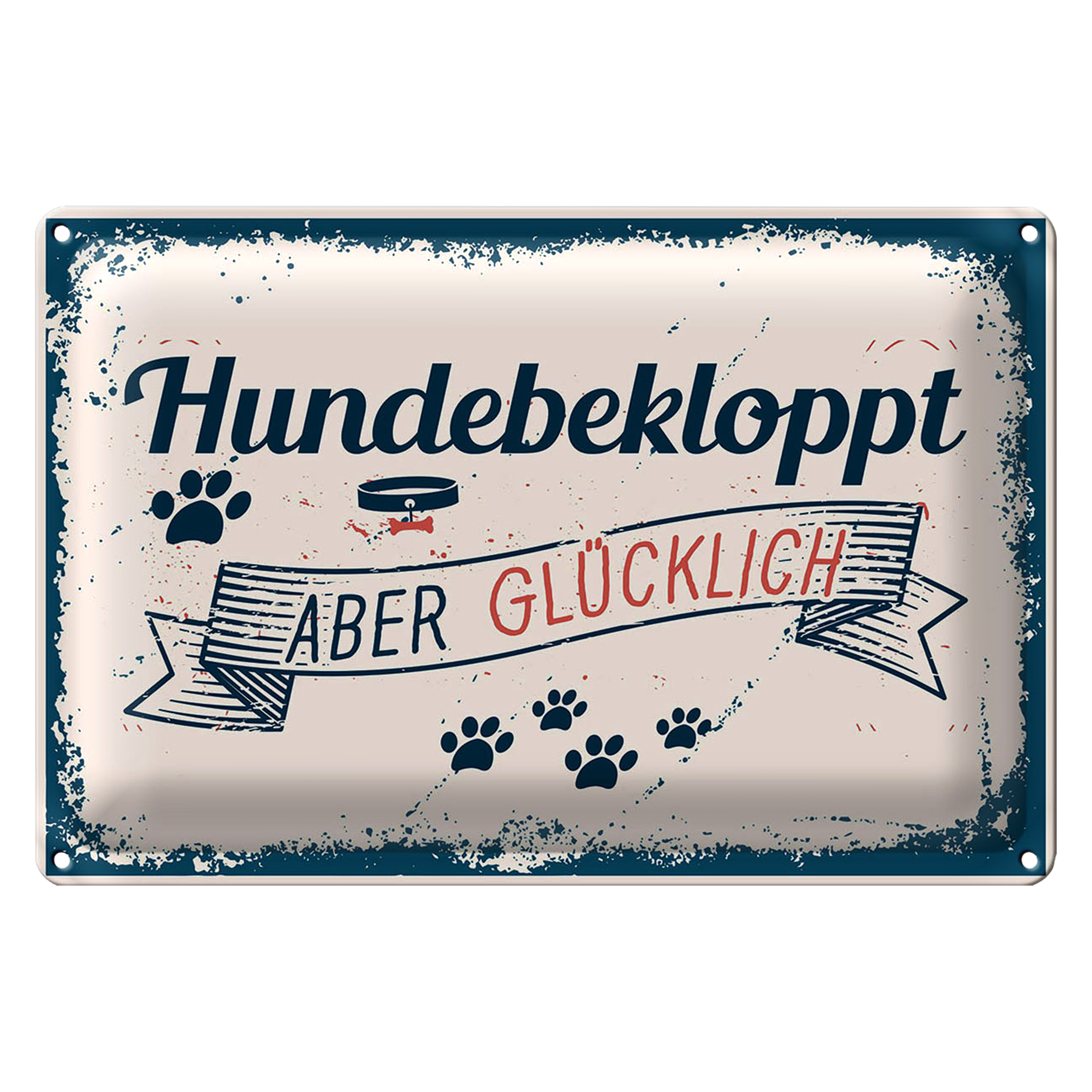 Blechschild Spruch 30x20cm Hundebekloppt aber Glücklich blau