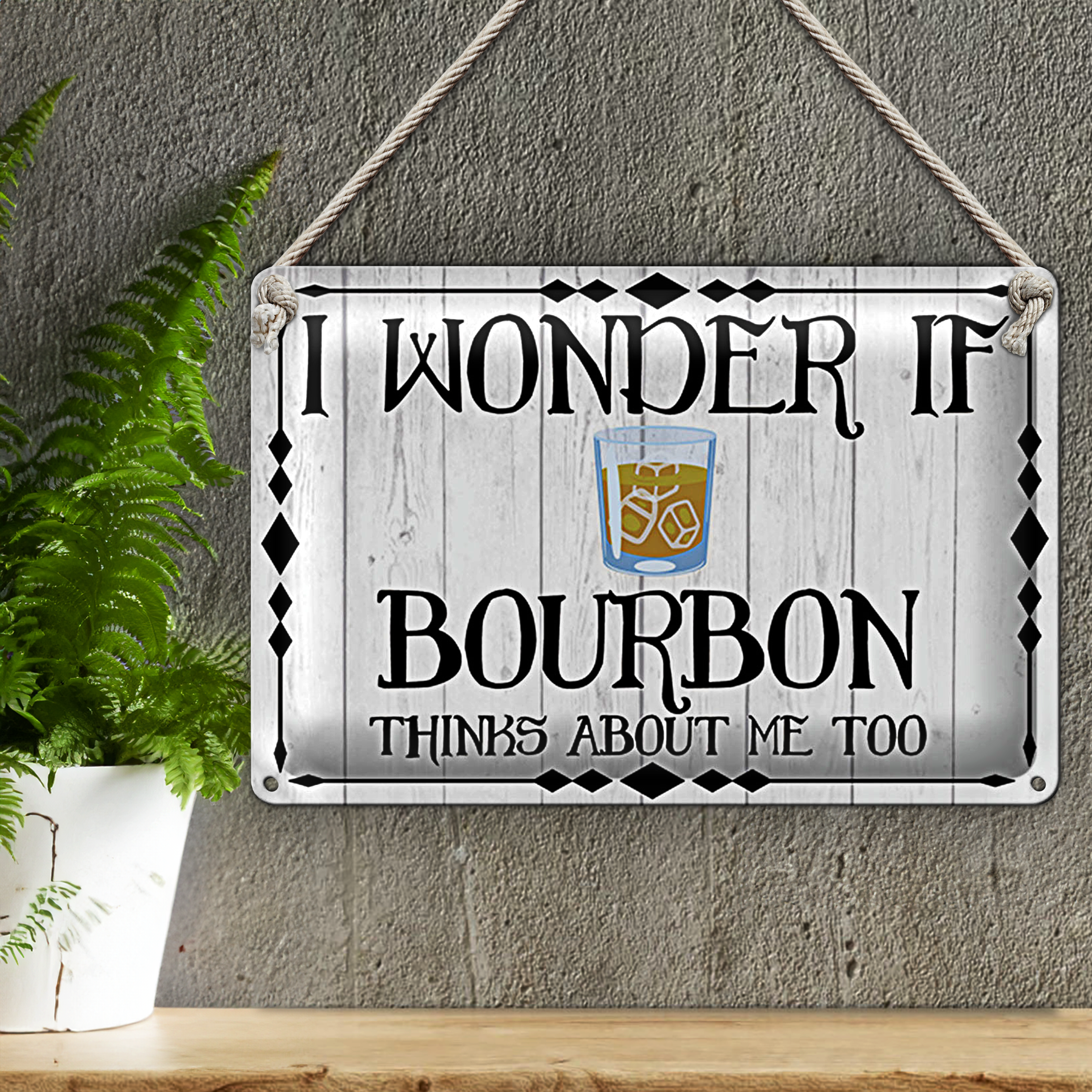 Blechschild Spruch 30x20cm i wonder if Bourbon thinks about