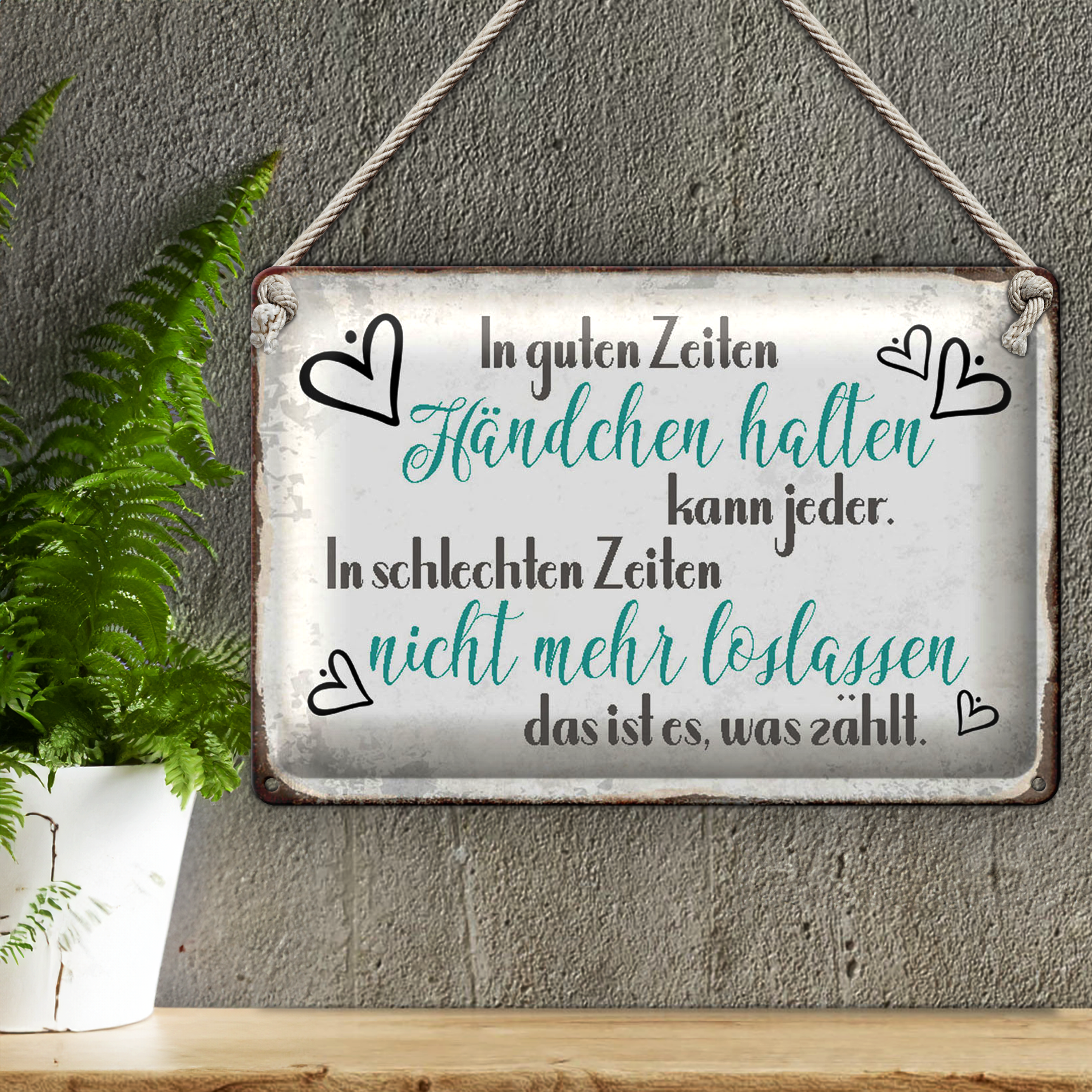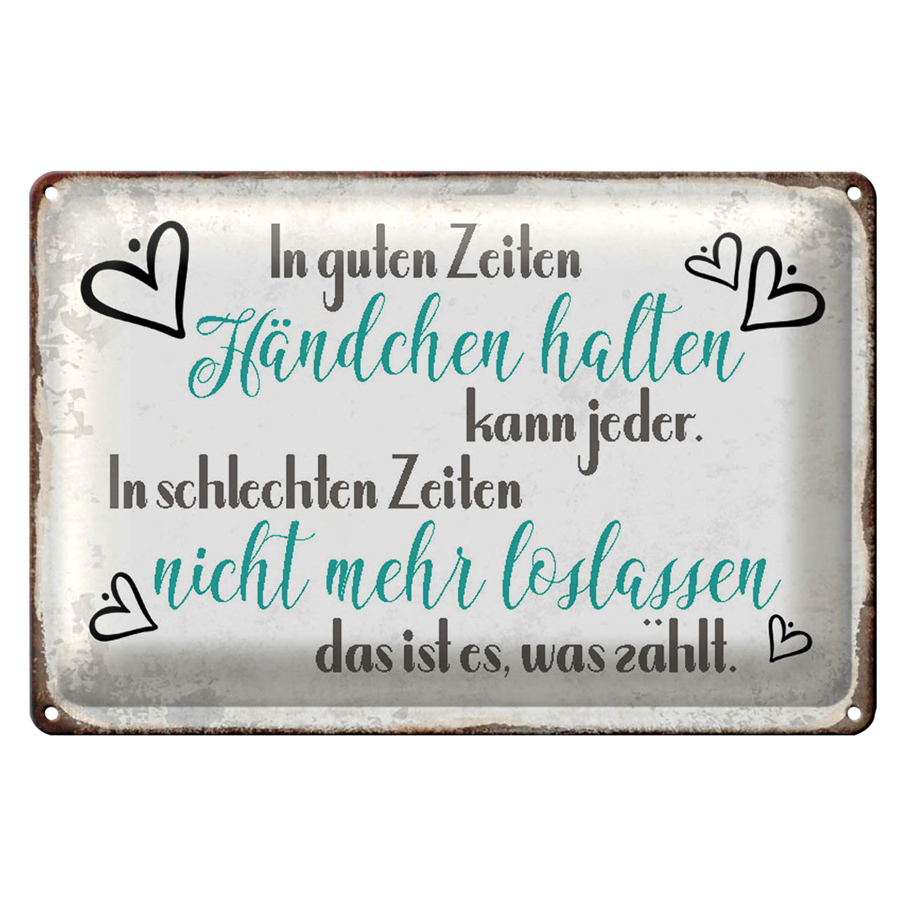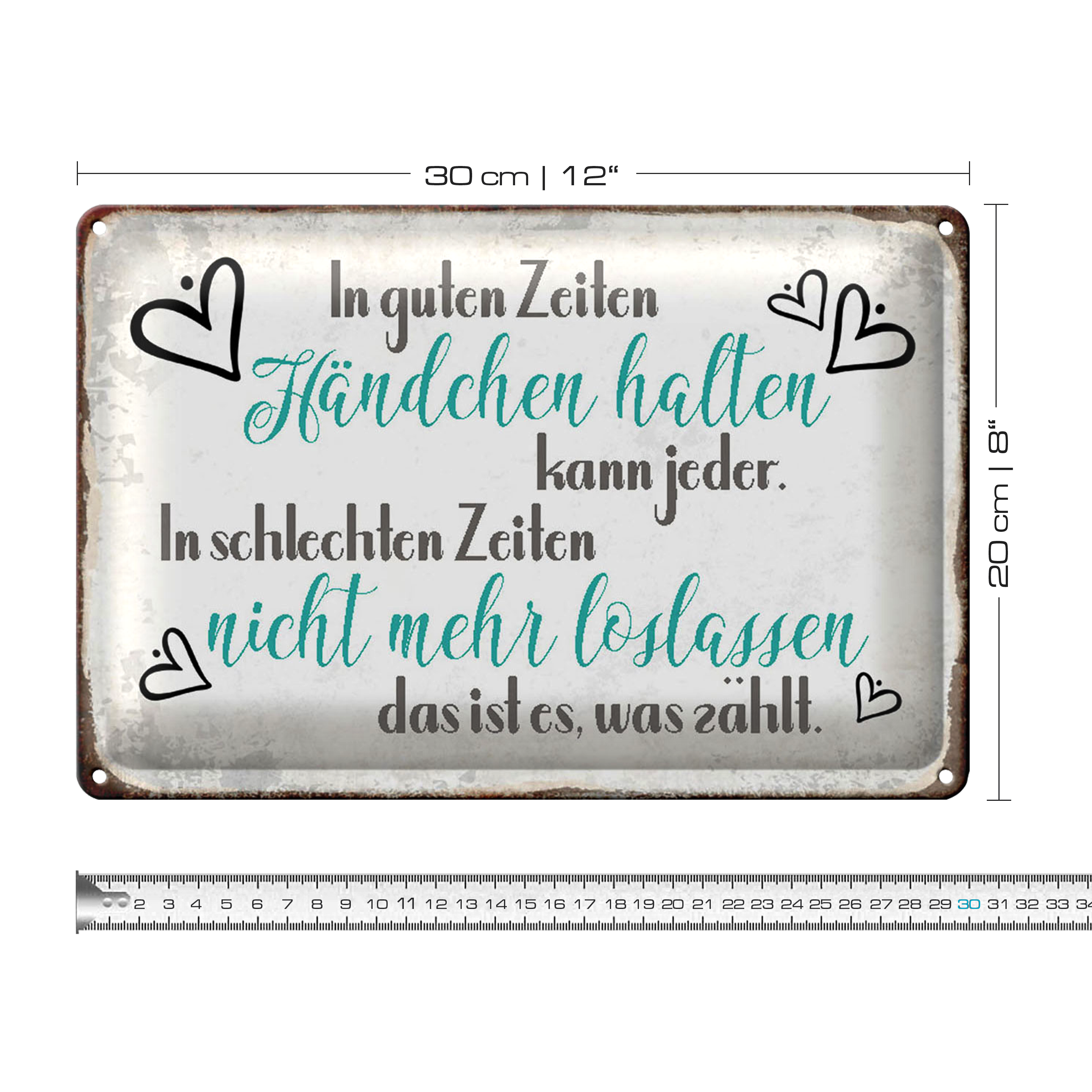 Blechschild Spruch 30x20cm in guten Zeiten Händchen halten