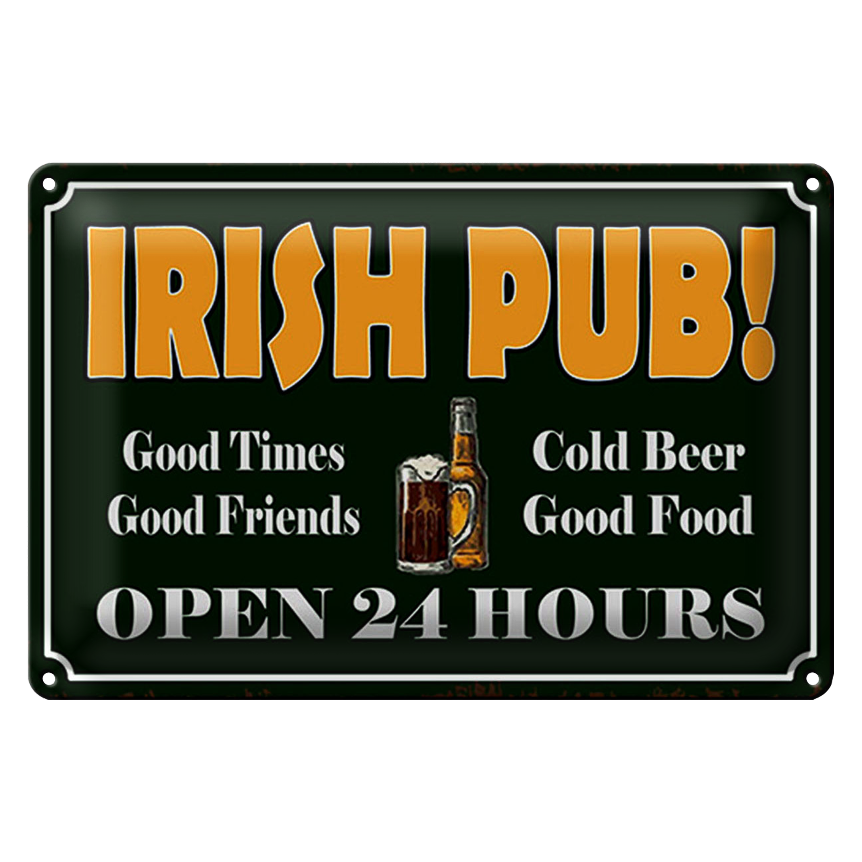 Blechschild Spruch 30x20cm Irish Pub gold Beer open 24