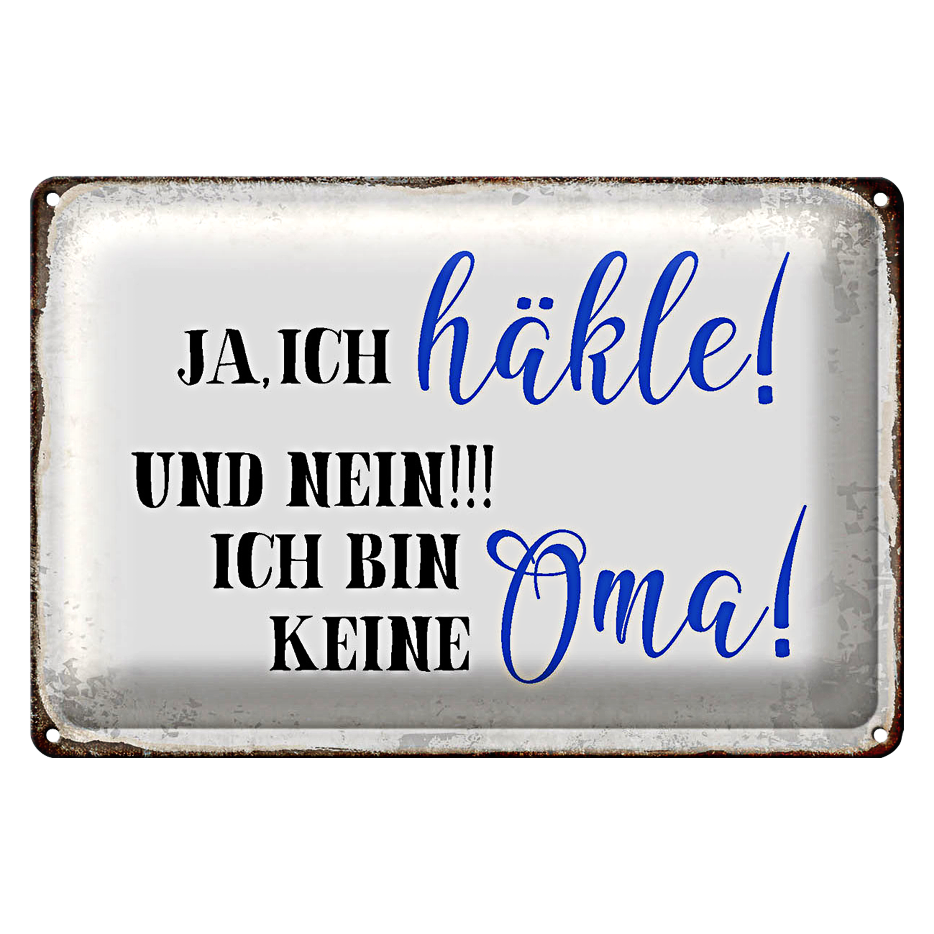 Blechschild Spruch 30x20cm ja ich häkle und bin keine Oma