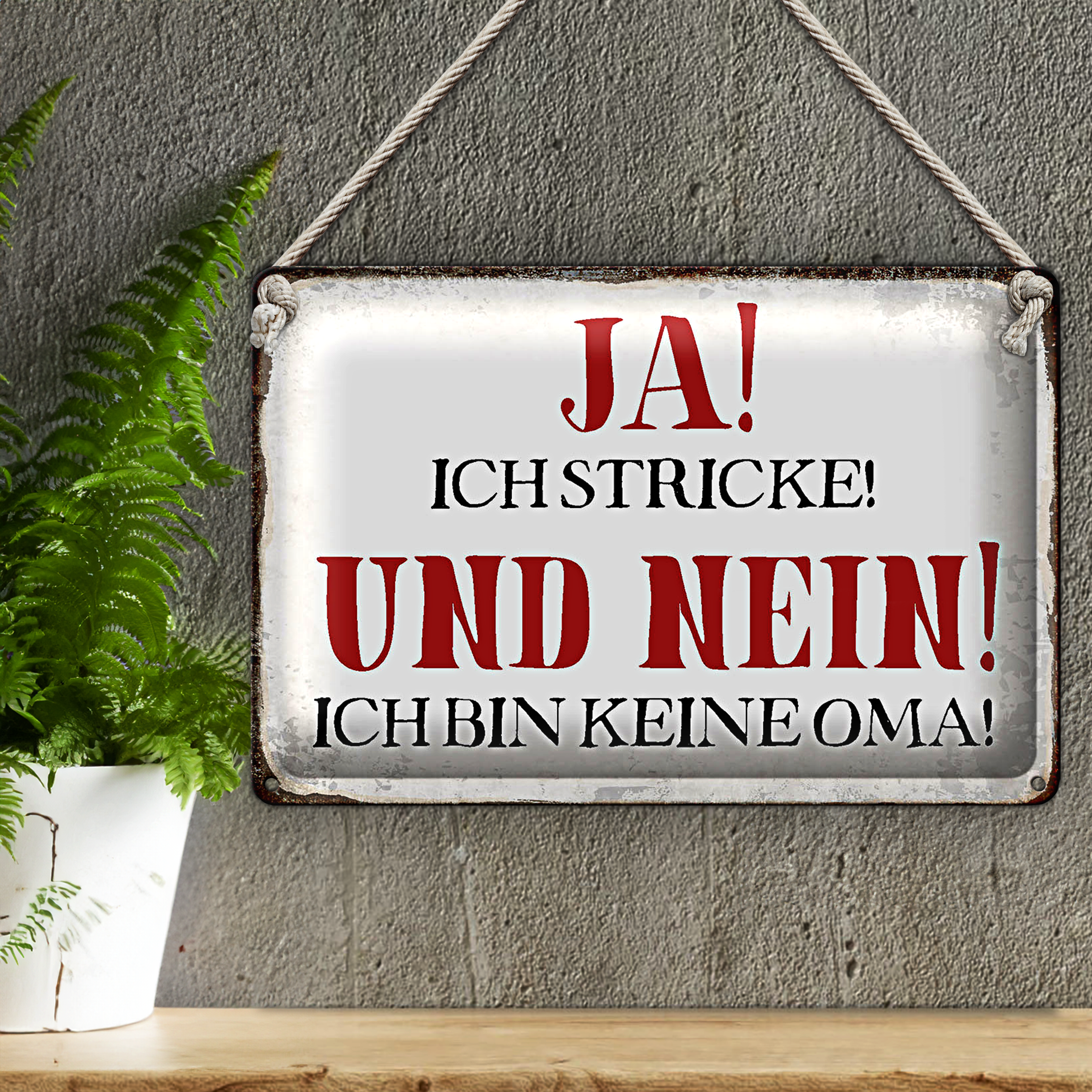 Blechschild Spruch 30x20cm ja ich stricke nein keine Oma