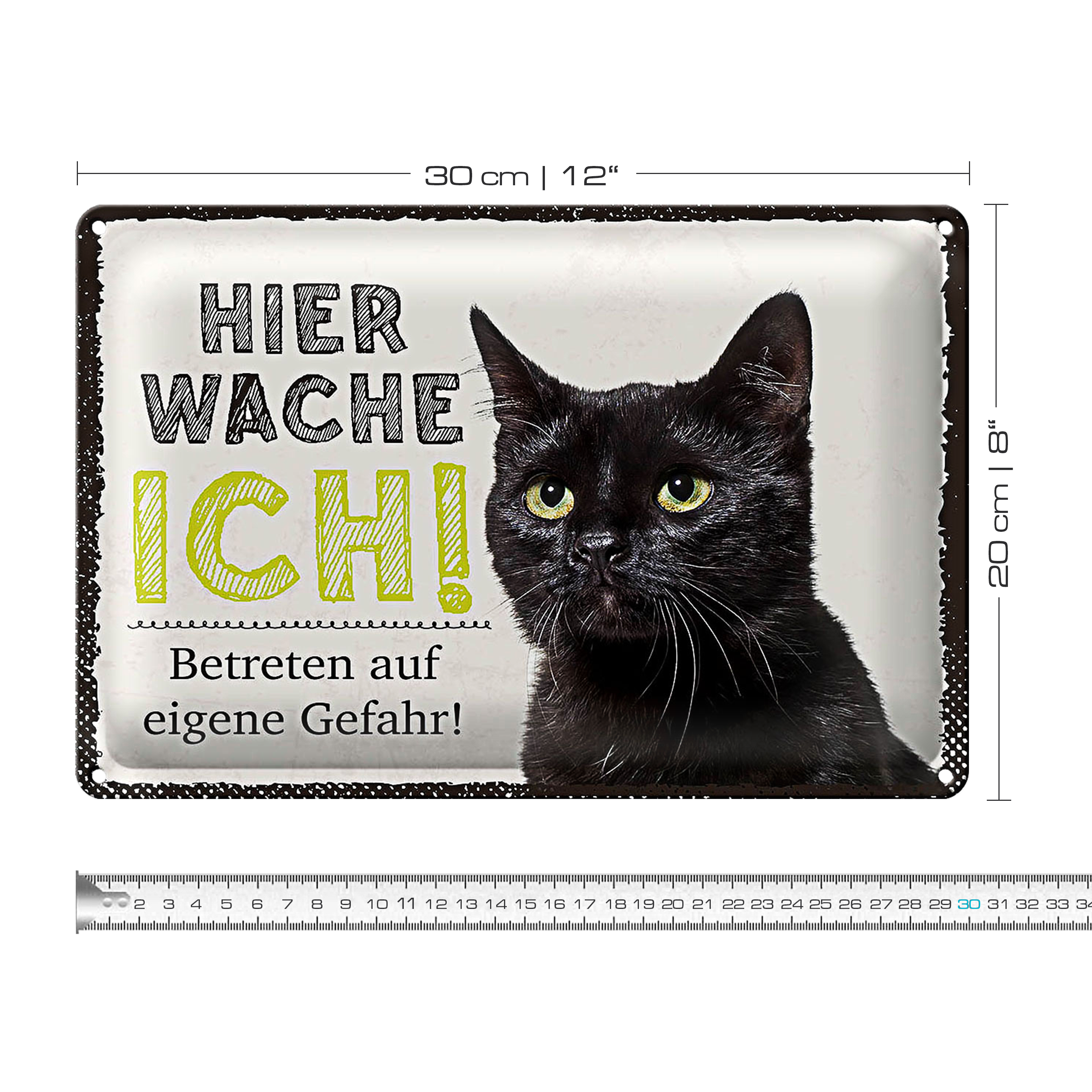 Blechschild Spruch 30x20cm Katze hier wache ich eigene Gefahr