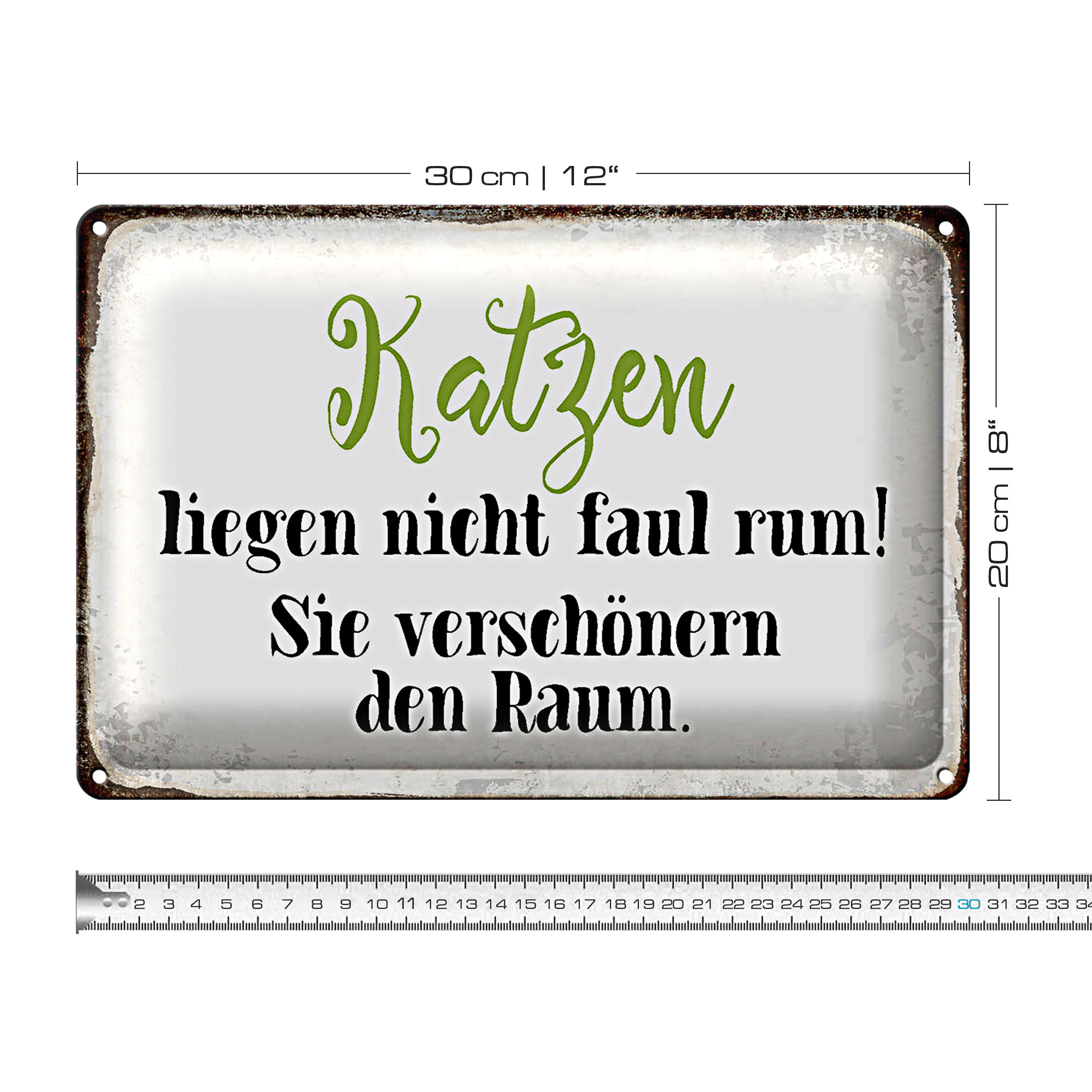 Blechschild Spruch 30x20cm Katzen liegen nicht faul rum