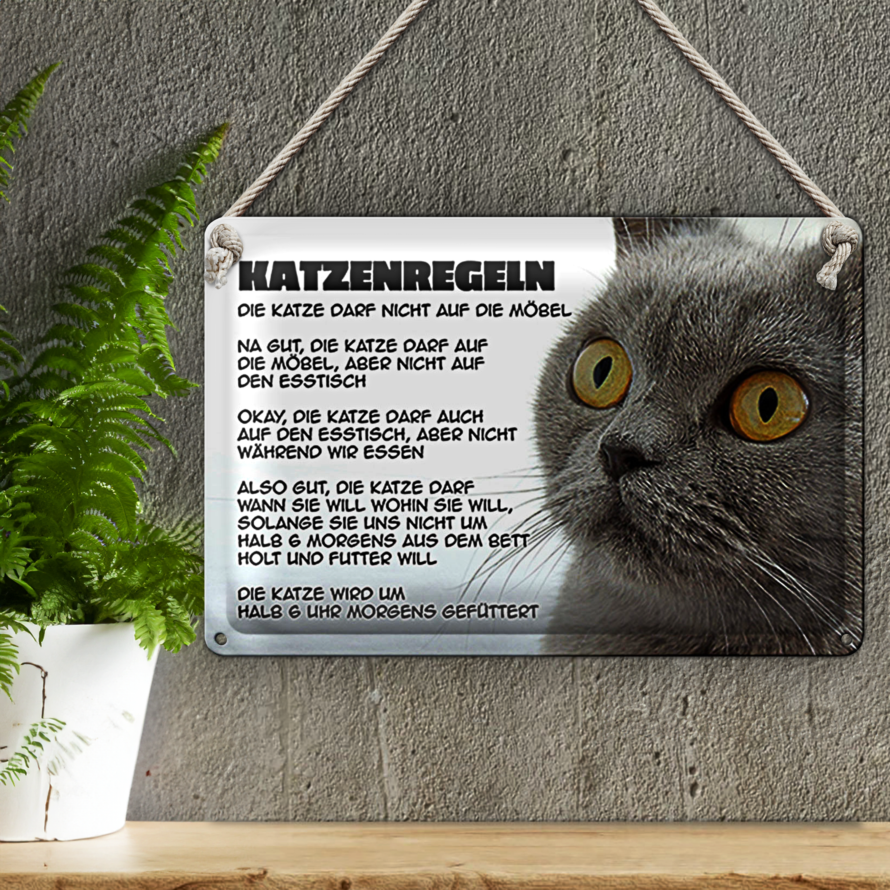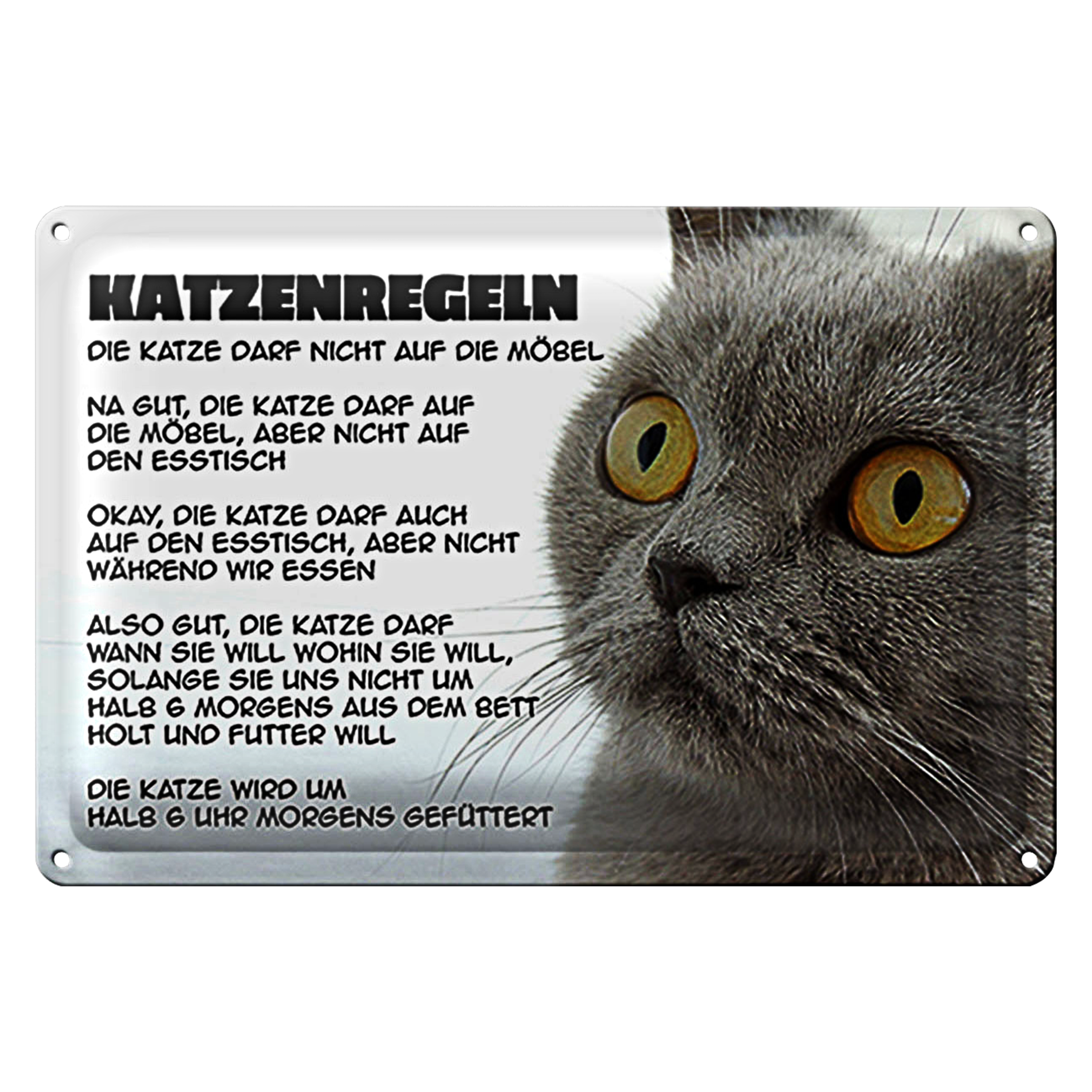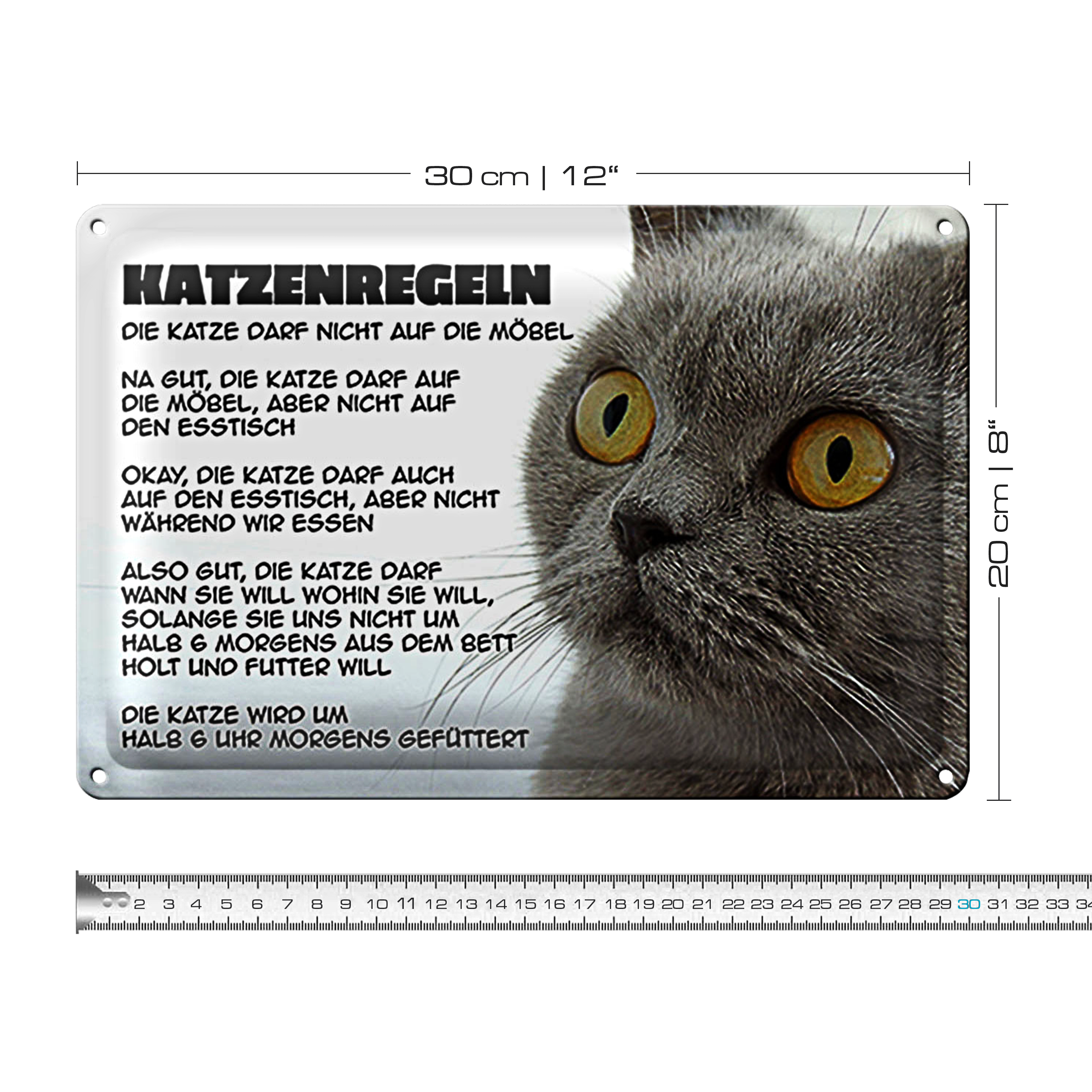 Blechschild Spruch 30x20cm Katzenregeln Katze darf nicht