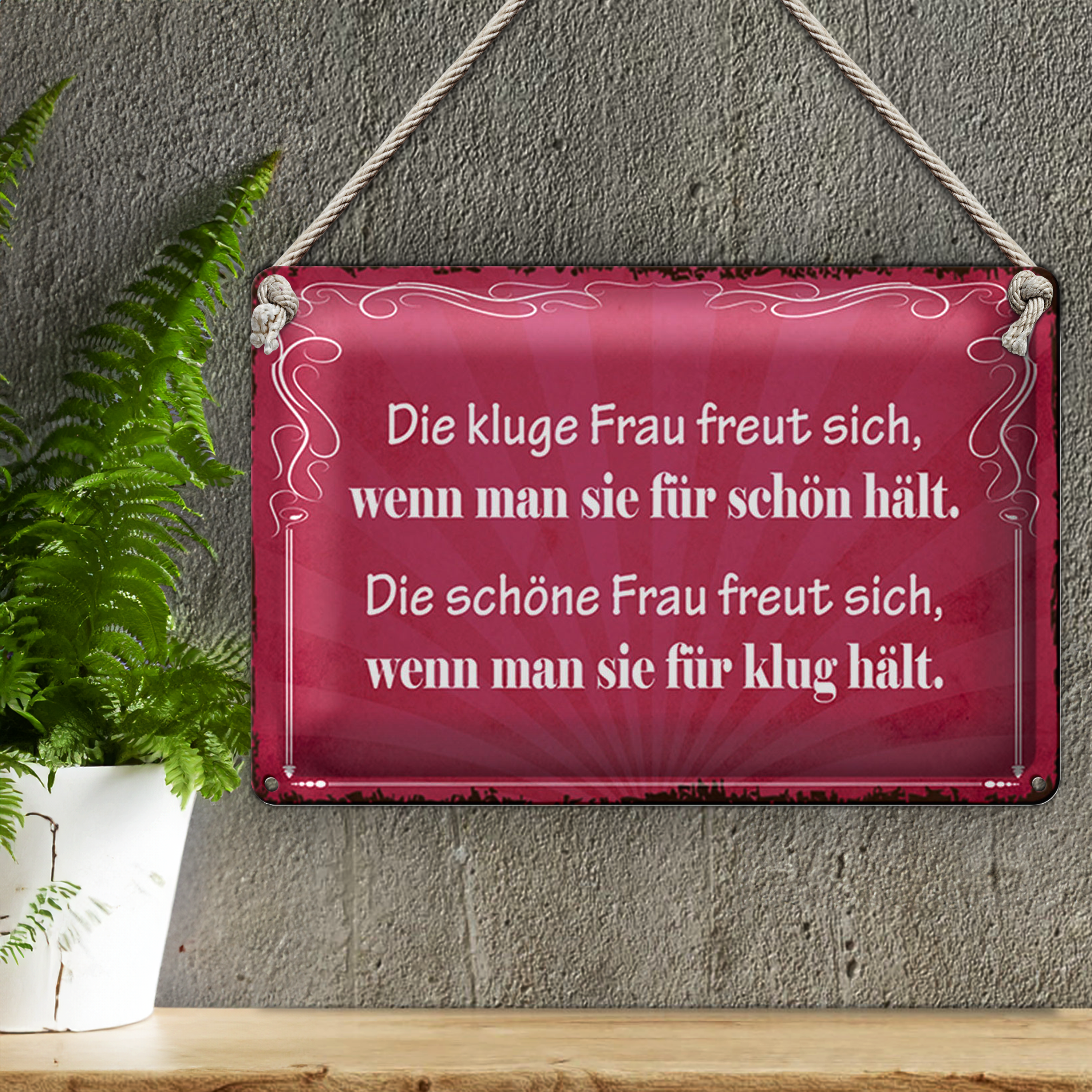 Blechschild Spruch 30x20cm kluge Frau schöne Frau