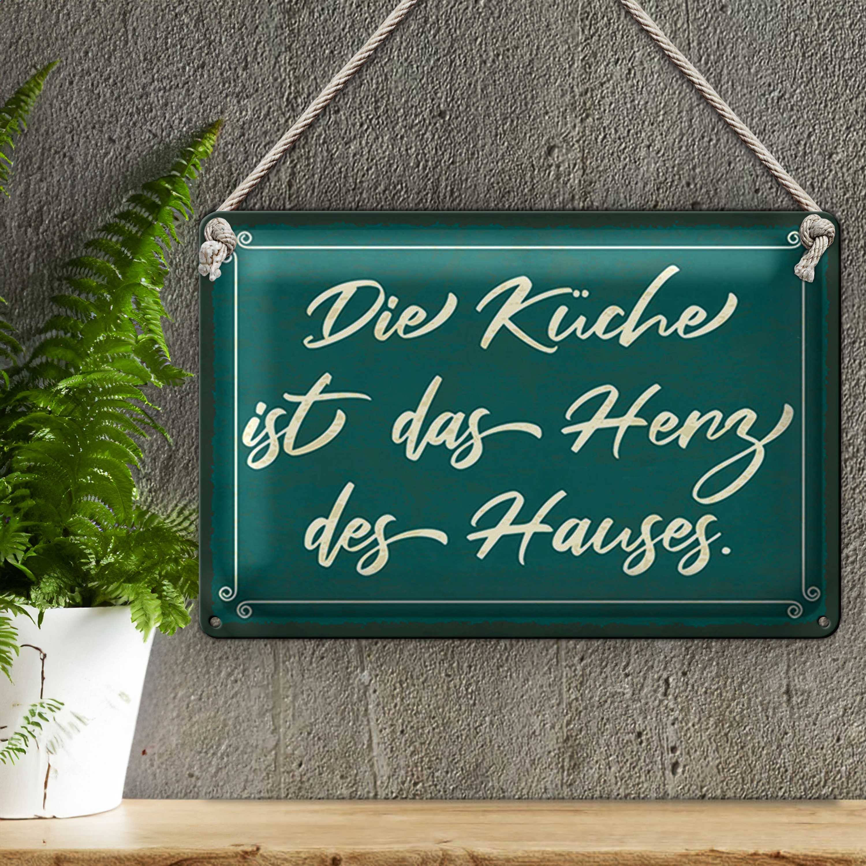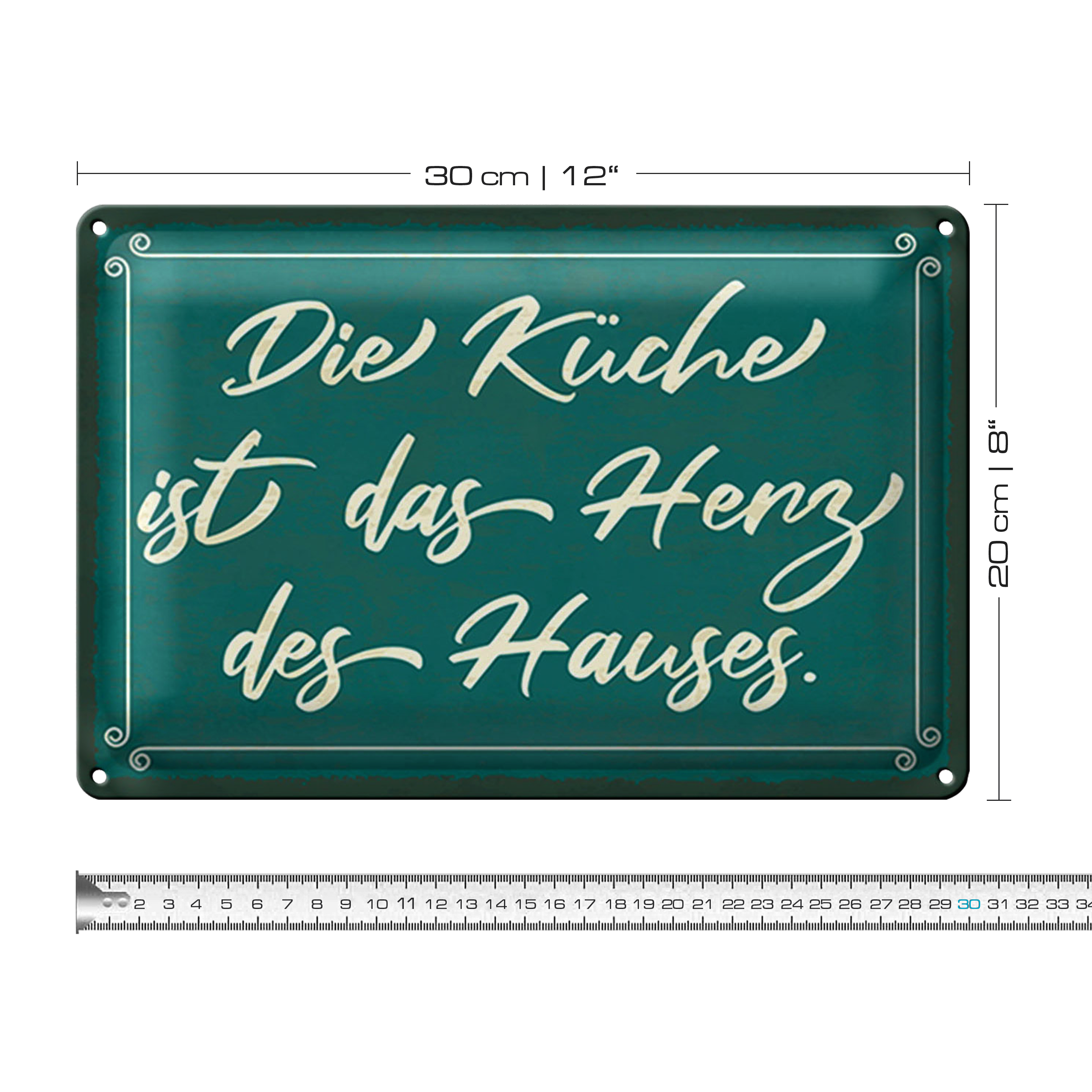 Blechschild Spruch 30x20cm Küche ist das Herz des Hauses