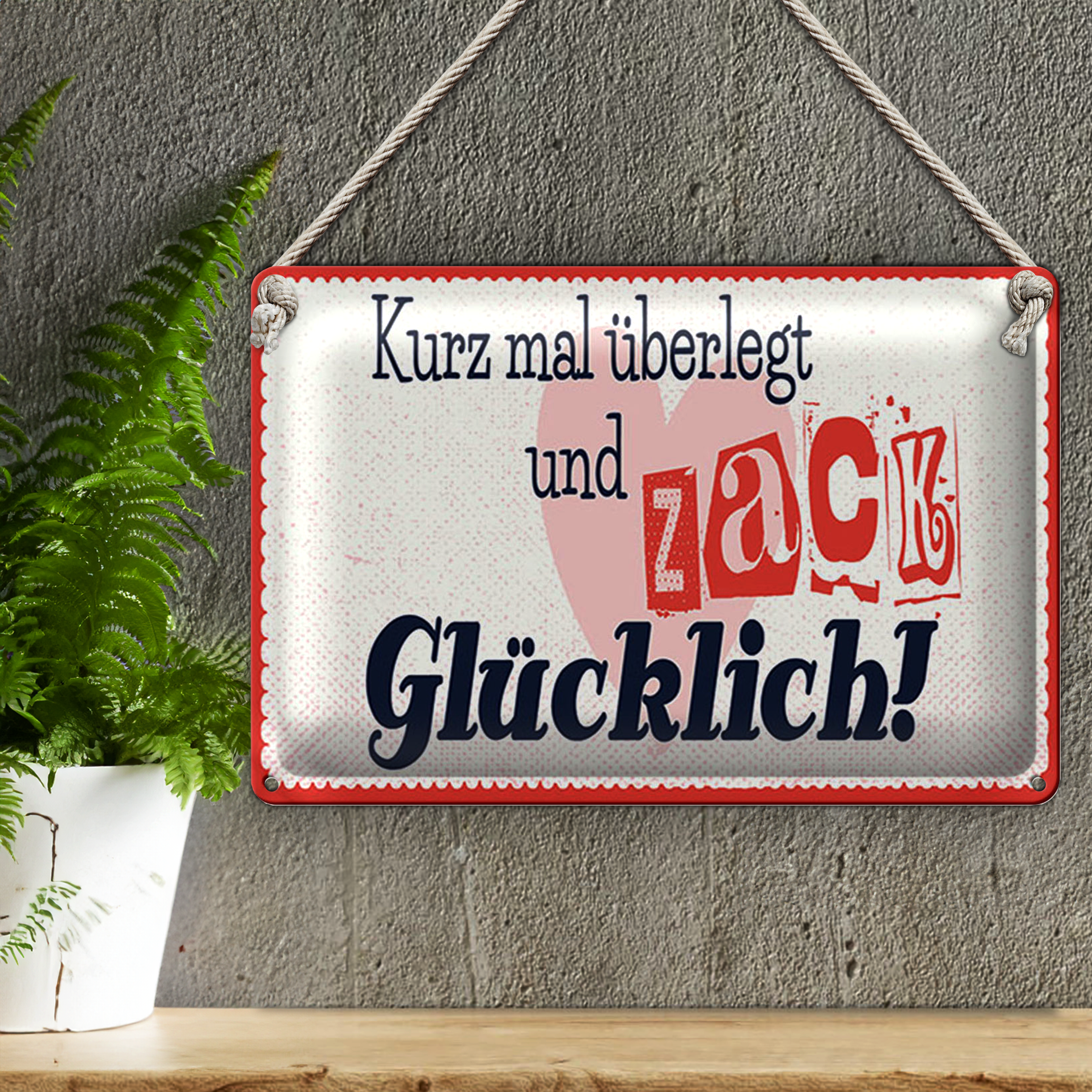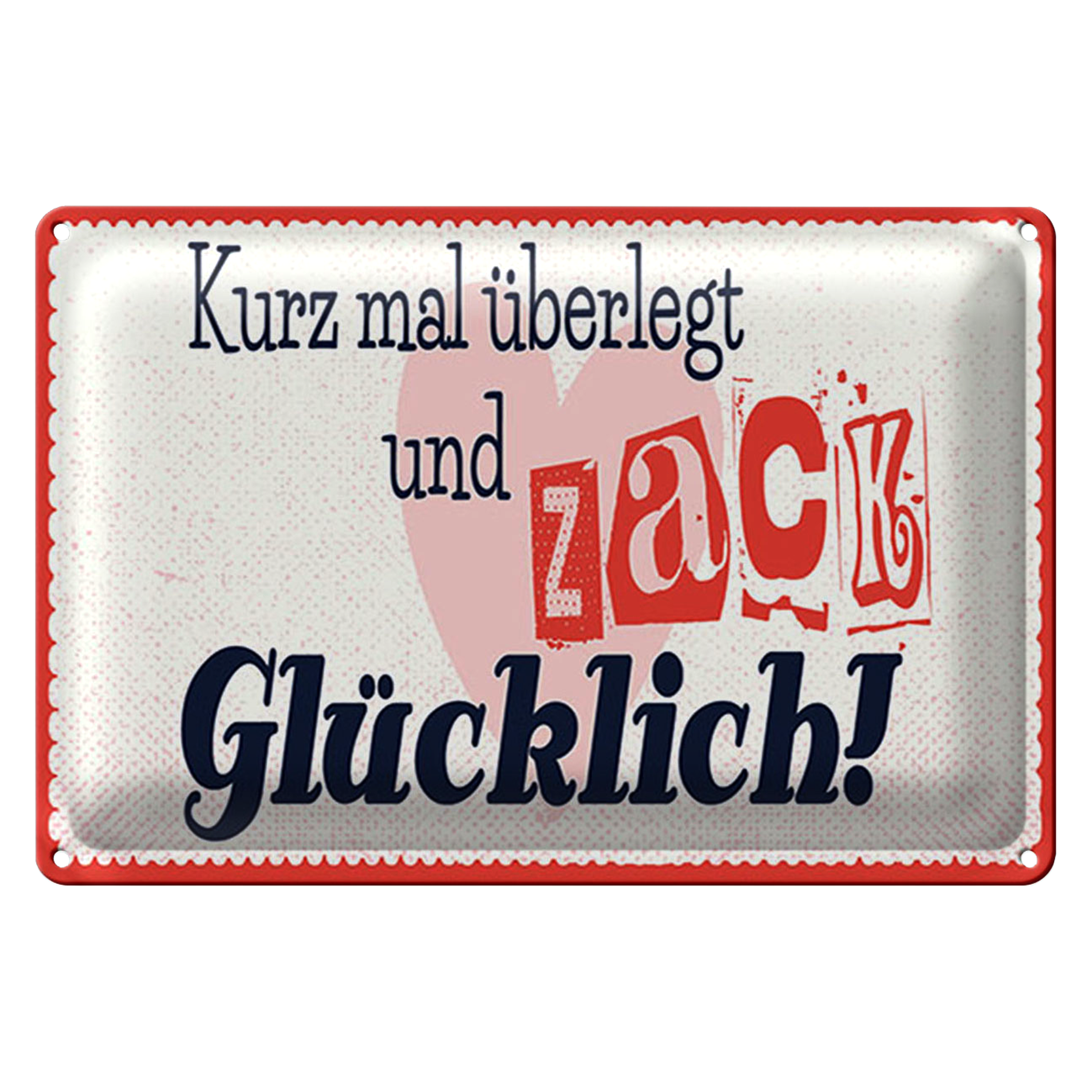 Blechschild Spruch 30x20cm kurz mal überlegt zack glücklich