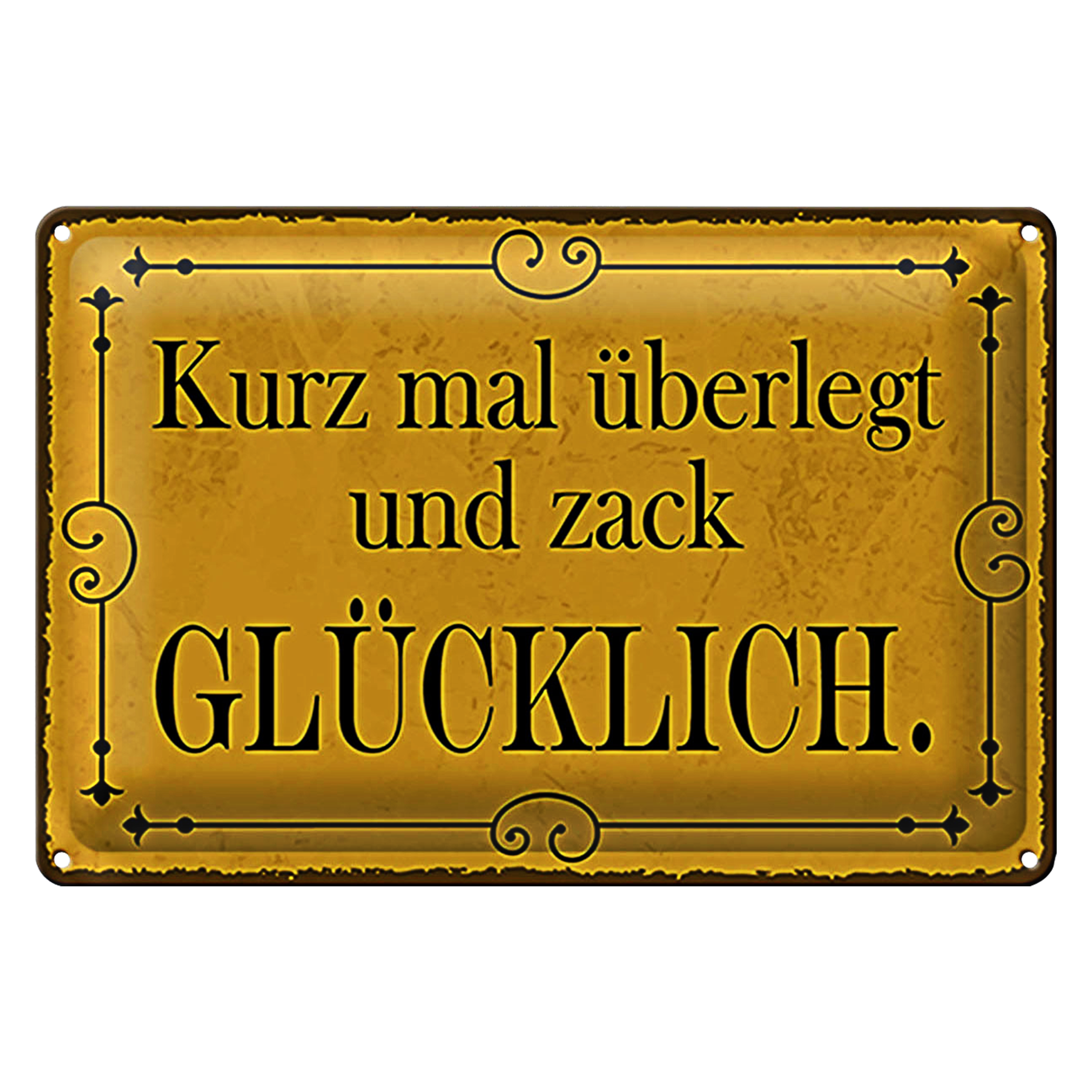Blechschild Spruch 30x20cm kurz überlegt und zack glücklich