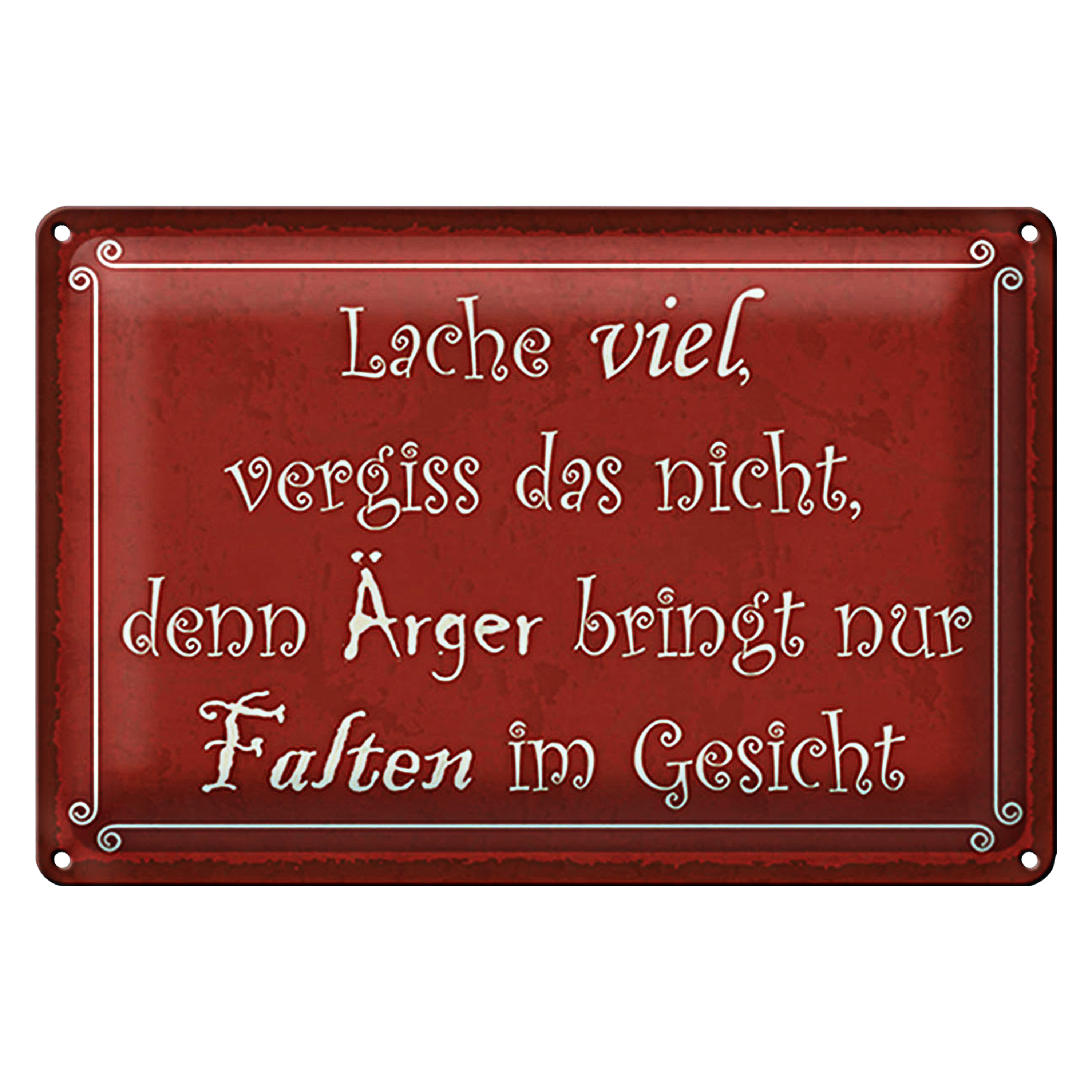 Blechschild Spruch 30x20cm lache viel Ärger bringt Falten