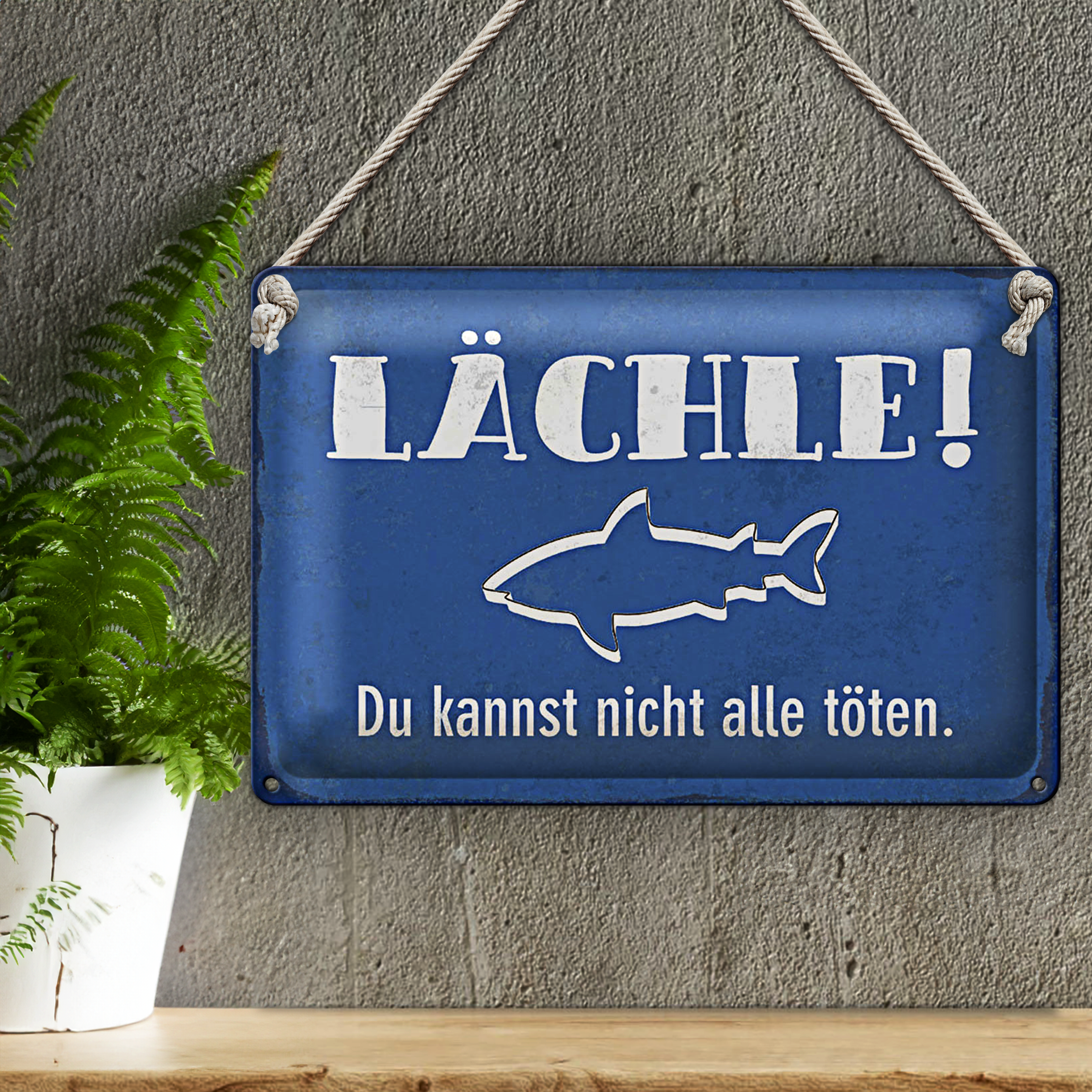 Blechschild Spruch 30x20cm lächle Du kannst nicht alle
