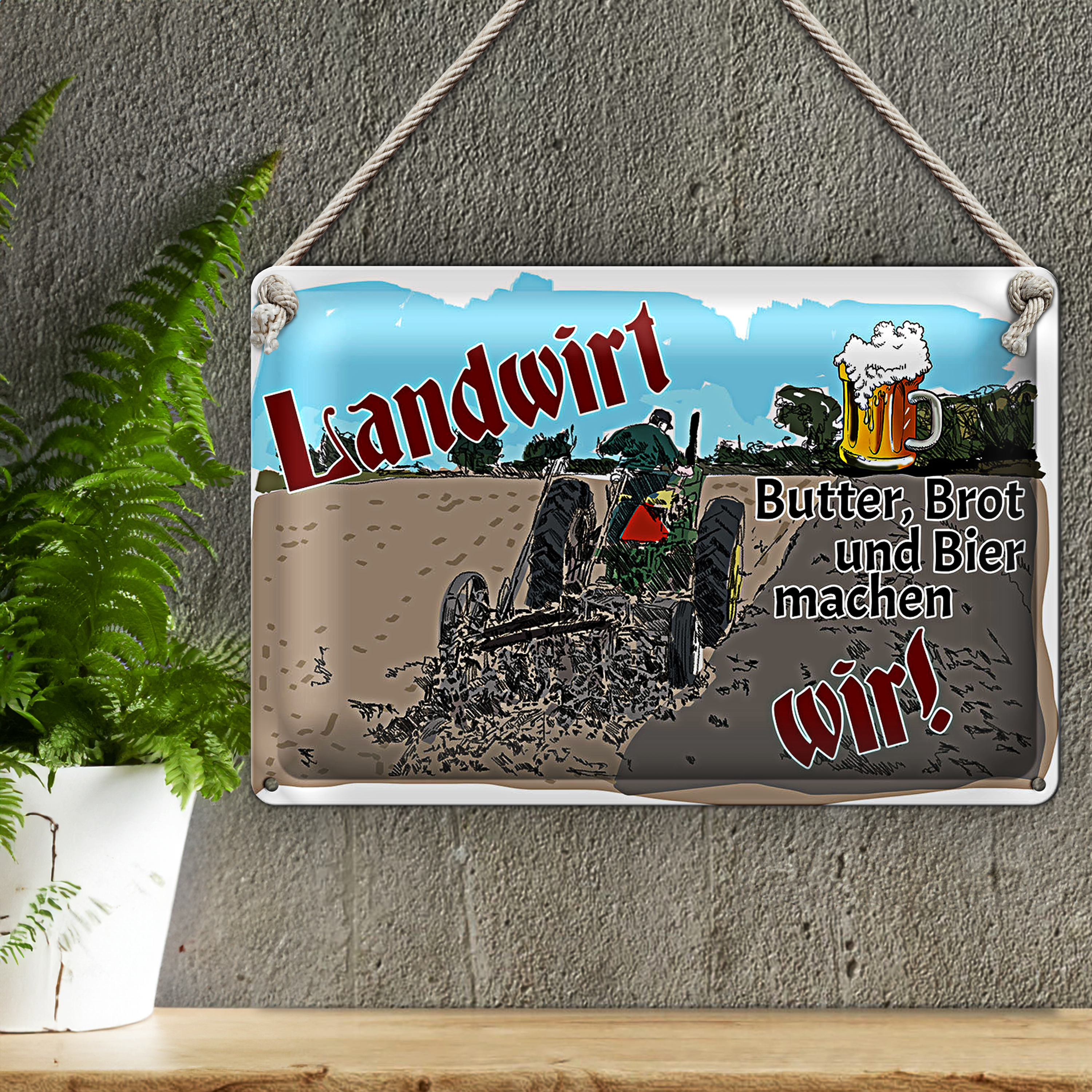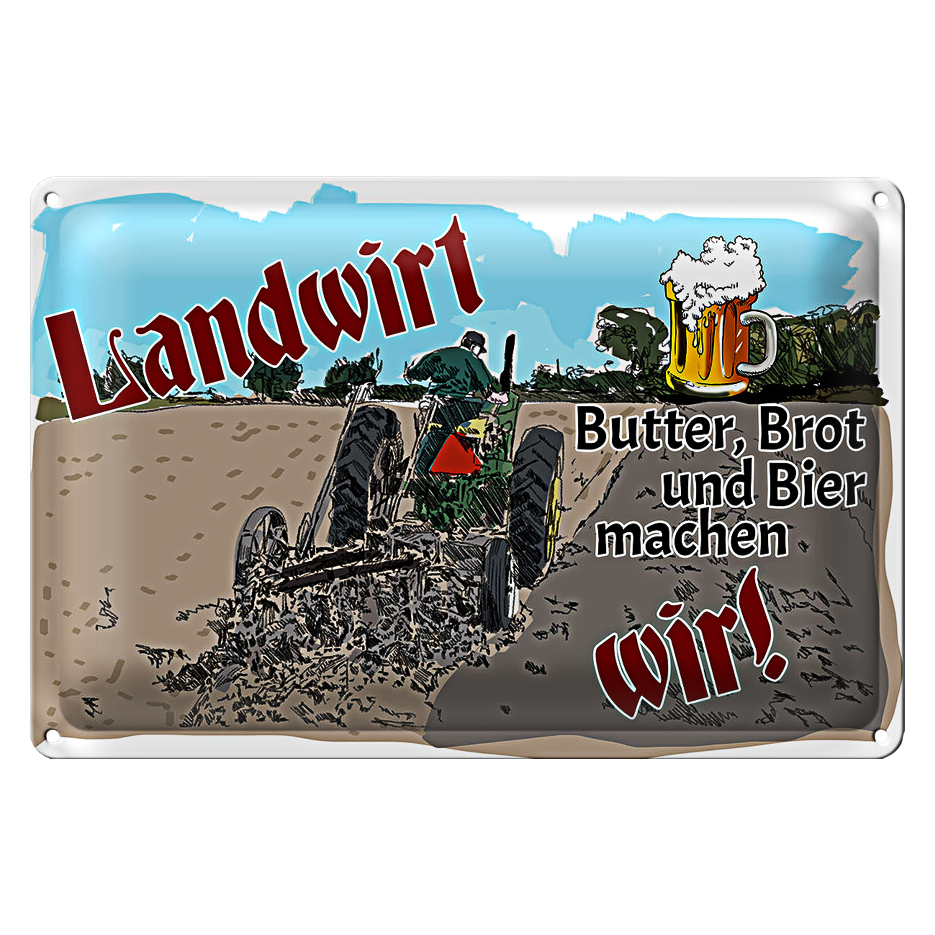 Blechschild Spruch 30x20cm Landwirt Butter Brot Bier wir