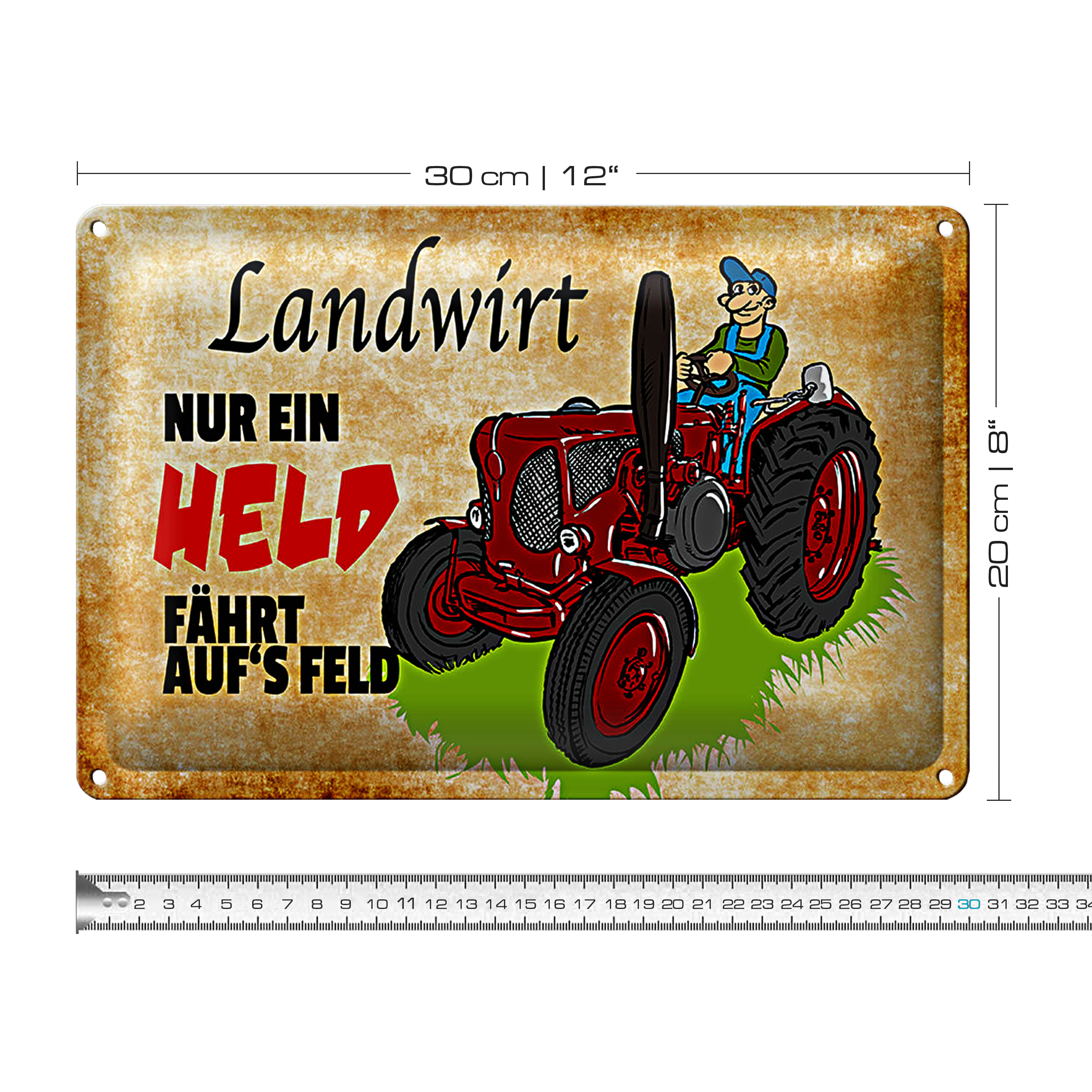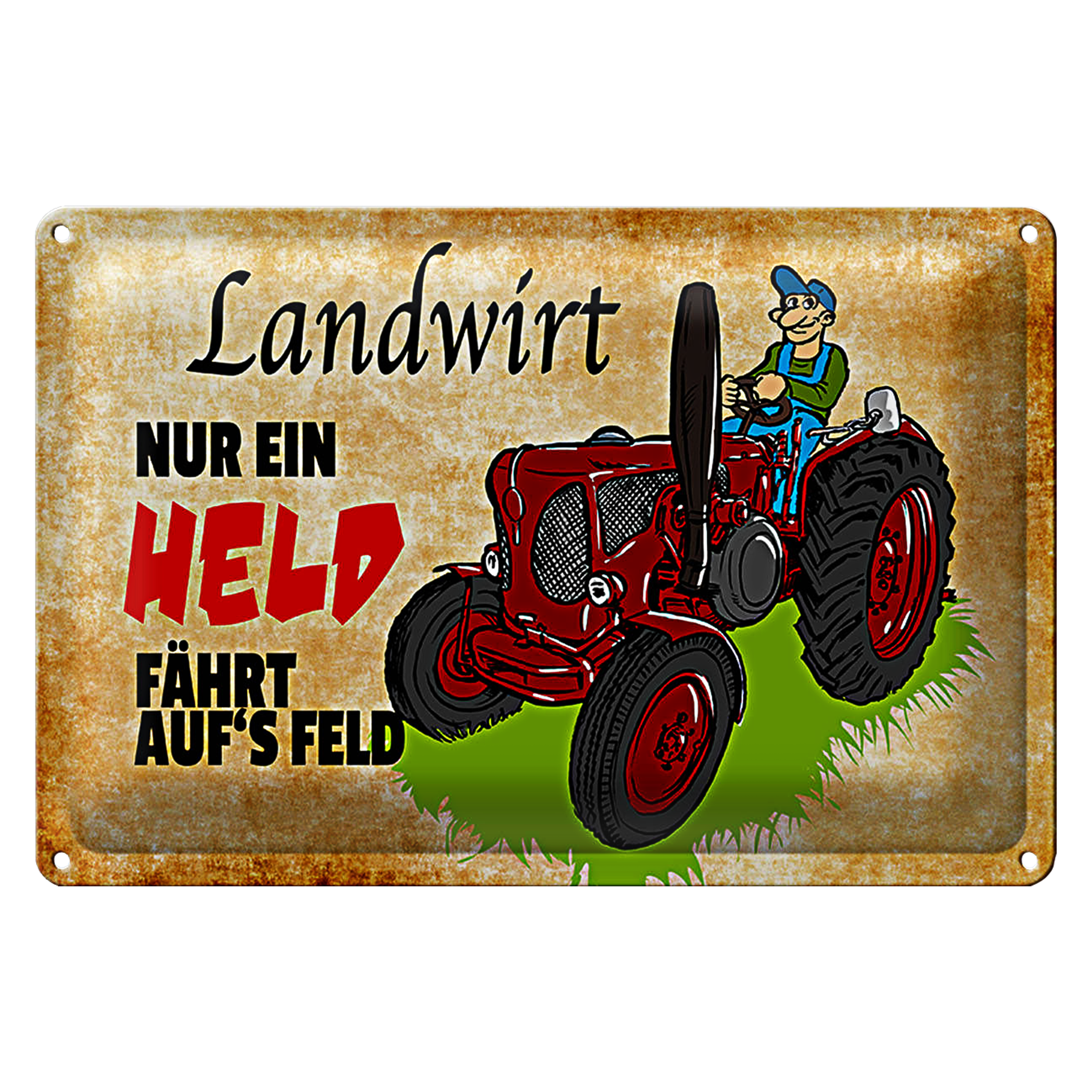 Blechschild Spruch 30x20cm Landwirt nur ein Held fährt