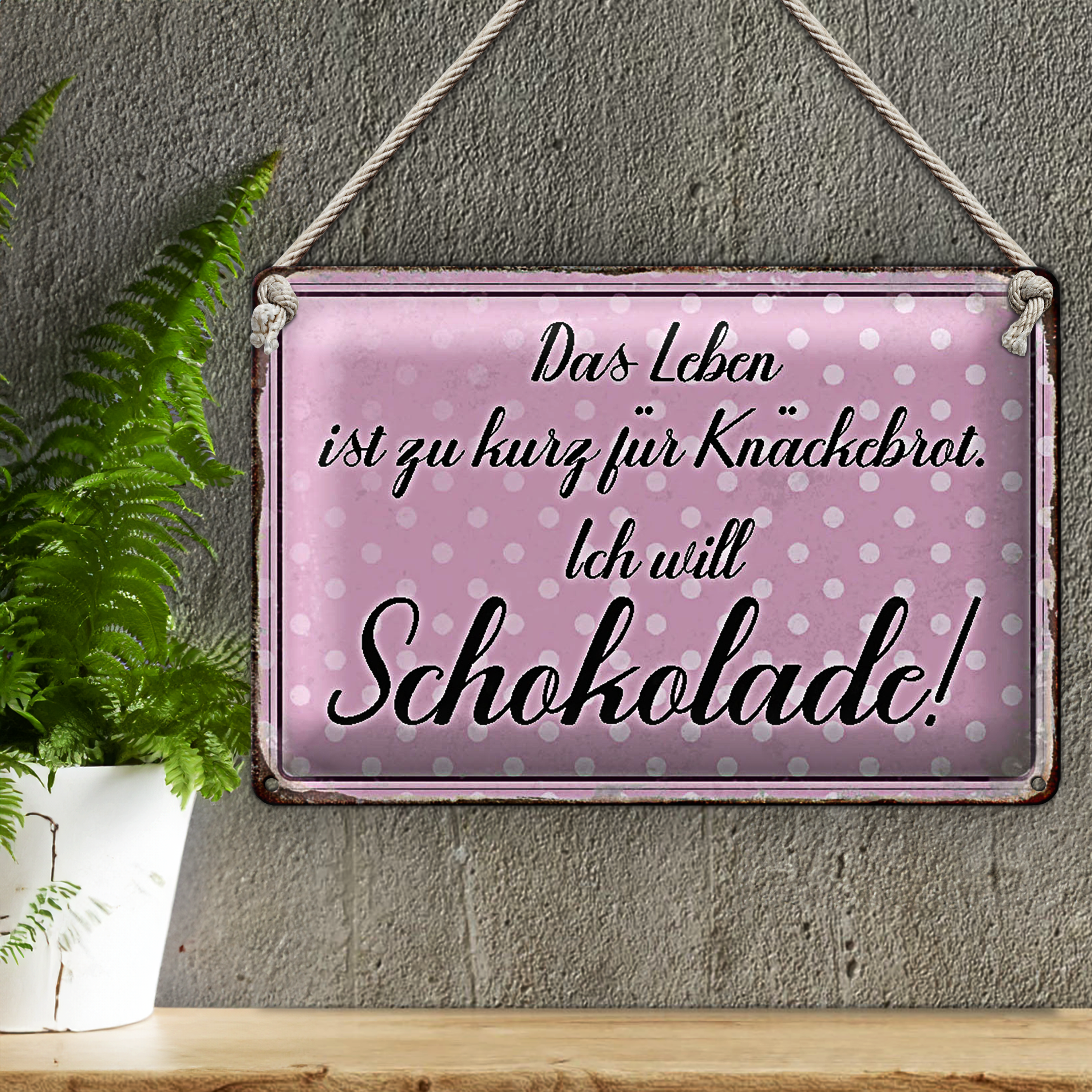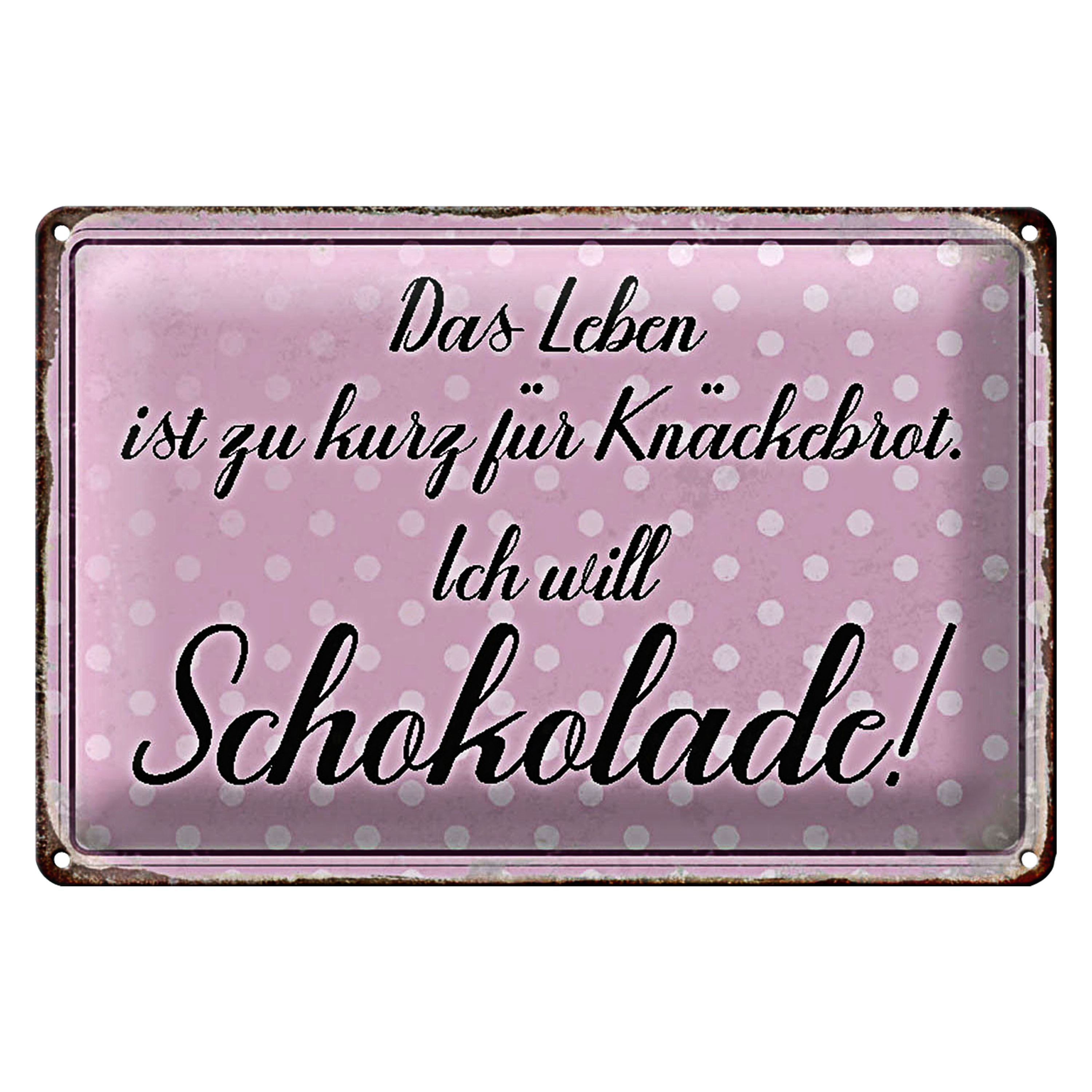 Blechschild Spruch 30x20cm Leben ist kurz will Schokolade