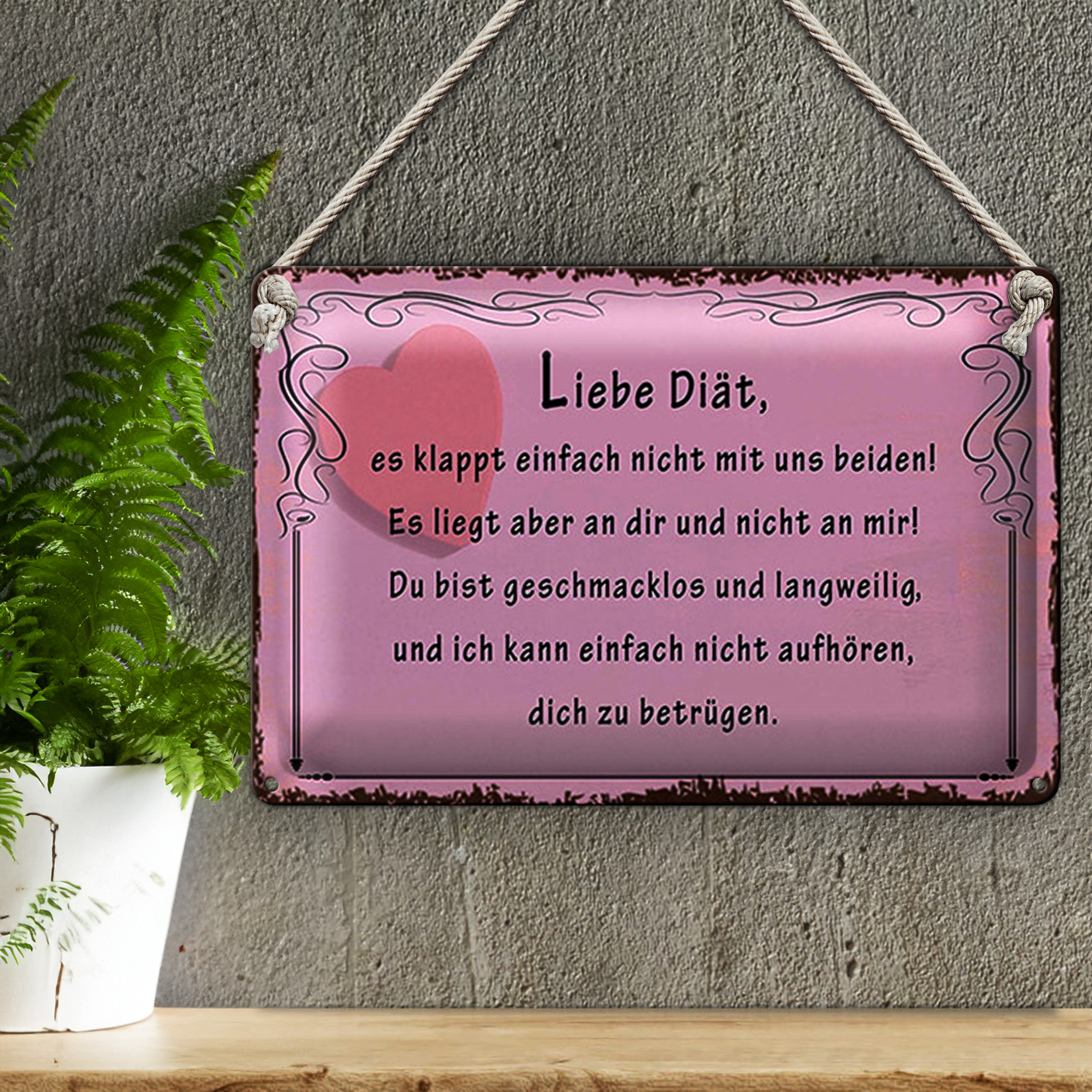 Blechschild Spruch 30x20cm liebe Diät klappt nicht mit uns