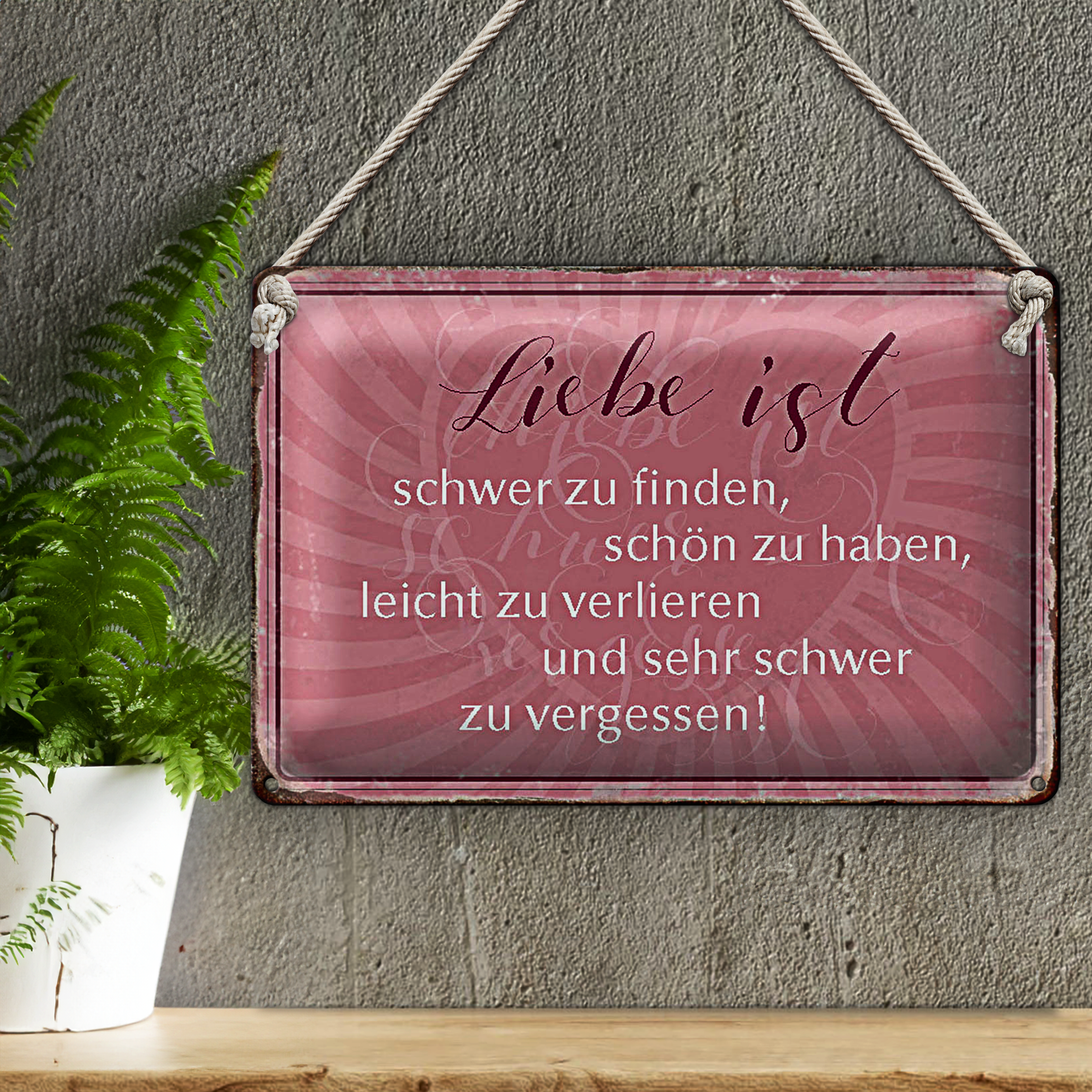 Blechschild Spruch 30x20cm liebe ist schwer zu finden